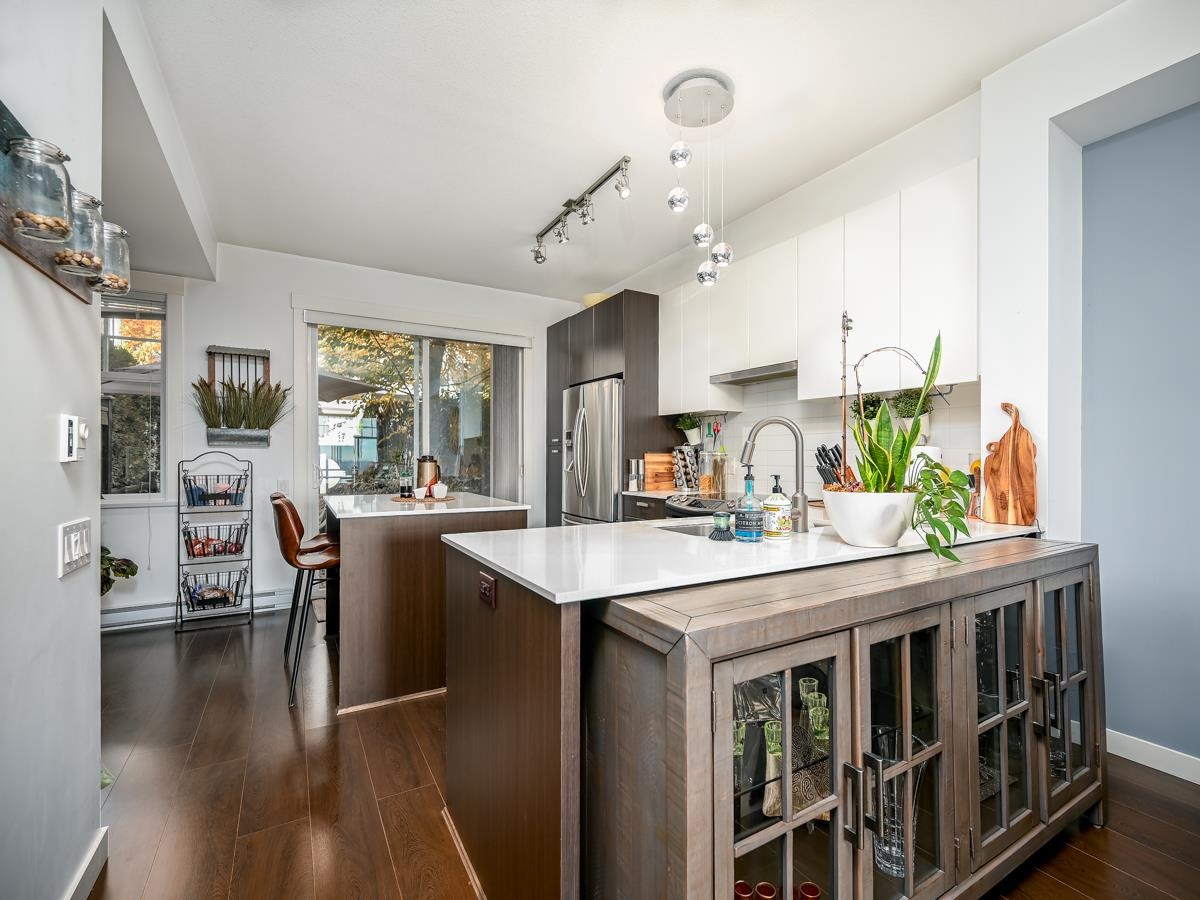 Have the best of both worlds, enjoy convenience of a townhome, and yet the view of a high-rise. Presenting unit 78, one of the few units in the Riley development with panoramic unobstructed view to Fraser Valley and Mount Baker on all levels. Open concept living/dining/ kitchen, enjoy cozy patio/yard off the kitchen with access to back lane for easy grocery unloading. Upstairs features two good sized bedrooms, two bathrooms and washer/ dryer. The primary bedroom accommodates king bed and 3-P ensuite. This unit is located on the quiet side facing Riley park, ample visitors parking available at your doorstep. Bonus is a large den at the garage level (not included in measurements) is perfect for gym/office. One garage parking, one designated open spot. OPEN 2-4 SAT OCT 19