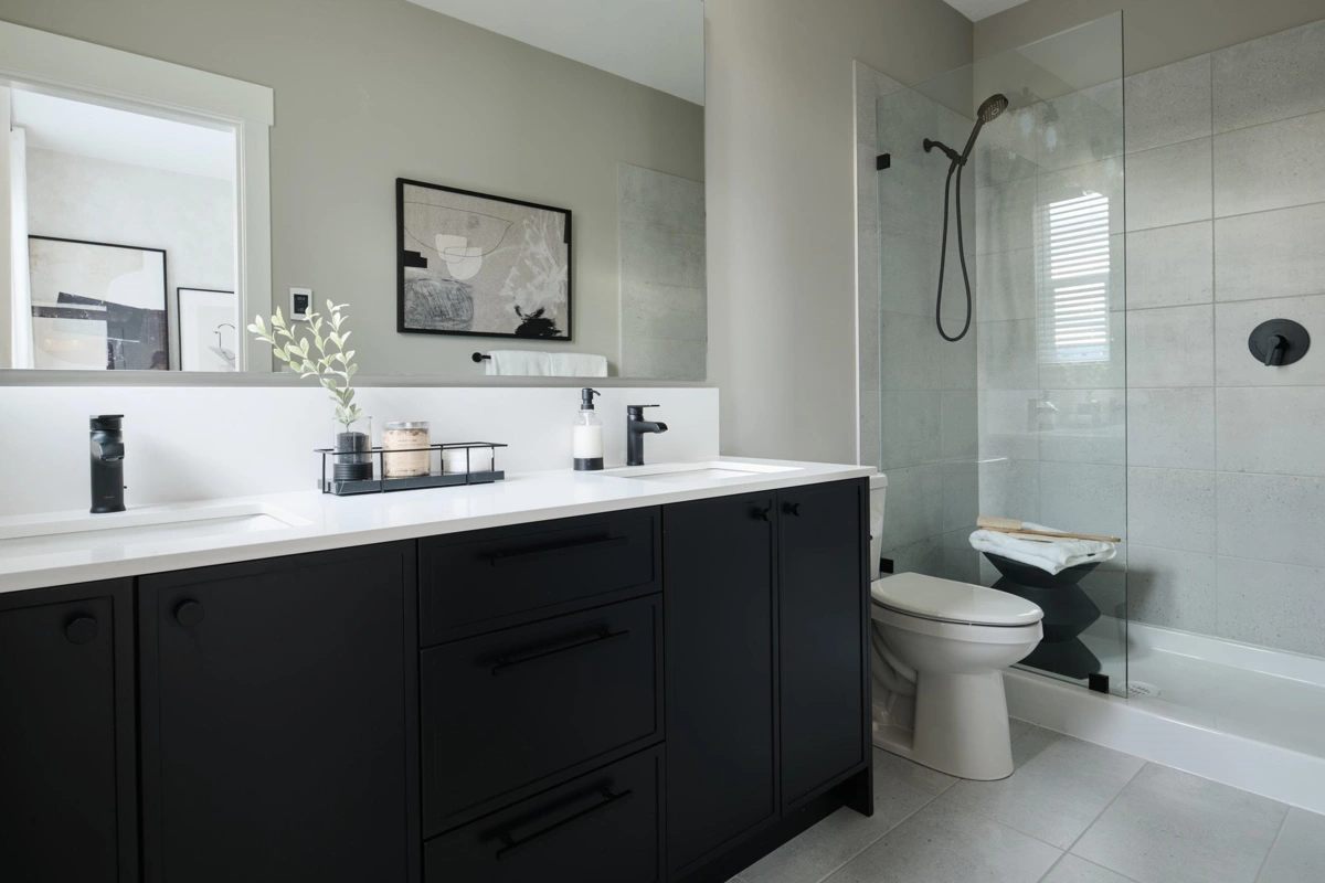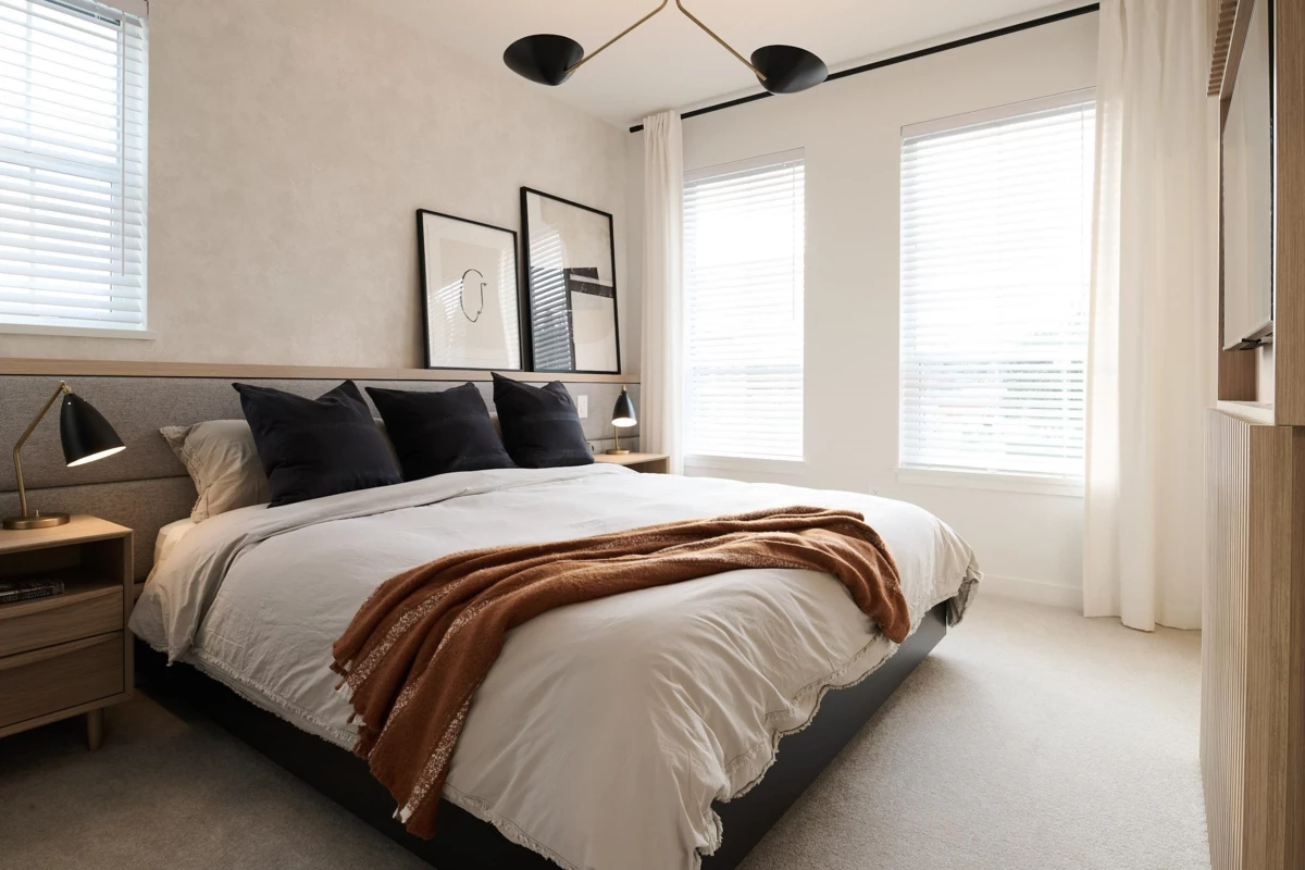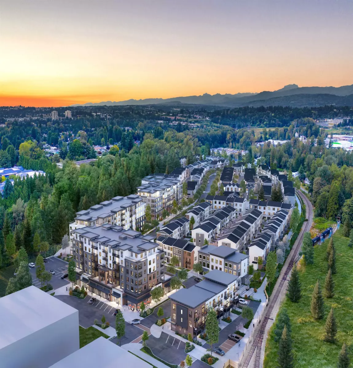 Welcome to RAIL DISTRICT, a master-planned community by Infinity Properties in the heart of Historic Downtown Abbotsford, where urban energy meets relaxed Valley living. This thoughtfully designed 3-bedroom + flex home features a walk in pantry, side by side laundry, versatile flex area ideal for a home office, gym, or studio. Enjoy natural gas forced-air heating, durable wide-plank laminate flooring, and a modern kitchen with custom shaker cabinetry and polished quartz countertops. PARKING FOR 4 CARS – double side-by-side garage plus full driveway. Air conditioning included for a limited time. Newly completed amenity building with gym, pool, entertainment lounge, workstations & more. Move in ready. Visit our Presentation Centre and Showhome Saturday – Wednesday, 12–5 pm.