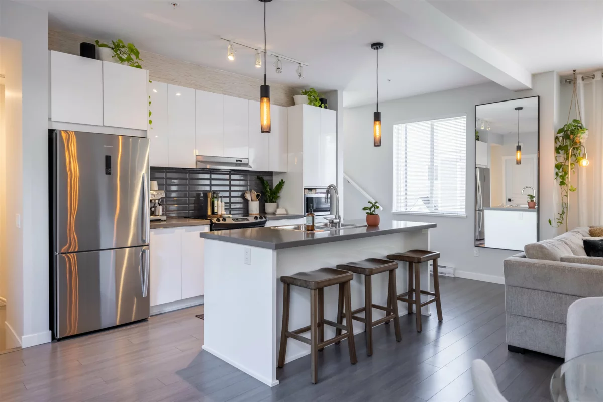 Discover the highly sought-after Ashbury & Oak Townhouse by Polygon in Willoughby Heights. This meticulously planned unit features 2 beds, 2.5 baths, and a kitchen designed for interaction with stainless steel appliances. Enjoy the airy ambiance of the 9' ceilings on the main floor, complemented by a welcoming great room concept. Step outside to an elevated garden space, a unique feature offering a perfect spot for morning coffee. Upstairs, find two well-appointed bedrooms, two baths, and a bright laundry area. Below, a double side-by-side garage awaits. Exceptional clubhouse with amenities including free access to an outdoor pool, Fitness area, indoor playroom, indoor hockey, music room, pet wash station, outdoor playground, party area and outdoor BBQ area. Sat March 2nd 2-4pm OPEN HOUSE