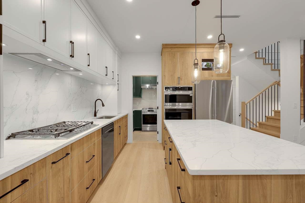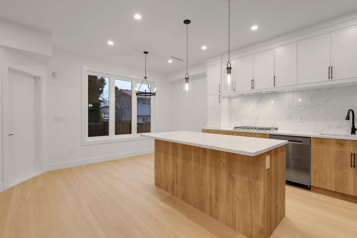 Brand New Duplex (BOTH SIDES FOR SALE) in one of North Delta's most central locations, close to Schools shops major routes and transit! w/ Legal suite and no strata fee! This stunning home w/full AC features 3 (or 4?) spacious bedrooms up, including a master bedroom with a private balcony and gorgeous en-suite. There is an office/formal lvgrm and generous famroom on the main, and a media room in the basement-ideal for a home theatre: extra living space. The chefs kitchen boasts large island, a separate spice kitchen! Finished w/name brand light plumbing fixtures, designer colors plenty of wall paneling this is the perfect home!