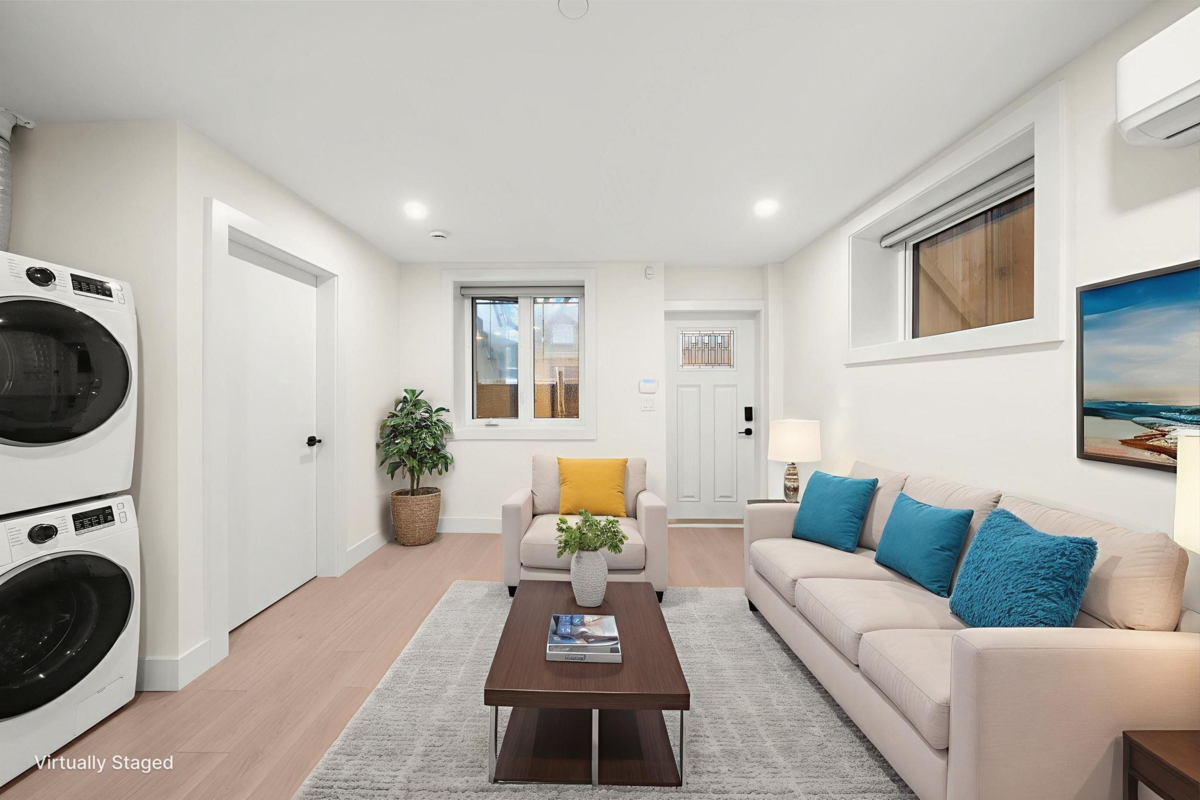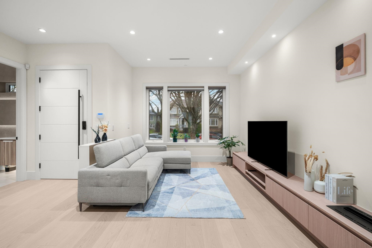Luxury custom-built home by Enrich Developer located in the heart of Marpole. This 2-yr-old,3-level residence offers over 3,500 sq ft of thoughtfully designed living space with 7 bedrm and 8 bathrms. The main home features 3 spacious ensuite bedrms upstairs, including 2 bedrms w/ beautiful views, providing both comfort and privacy. Enjoy excellent income potential with a 1-bed legal suite and a 2-bed laneway house, ideal for extended family or mortgage helper. High-quality finishes throughout include premium appliances, quartz countertops, custom millwork, AC, and home automation for year-round comfort. Conveniently located within the David Lloyd George Elementary and Sir Winston Churchill Secondary school catchments, just 3 minutes away.