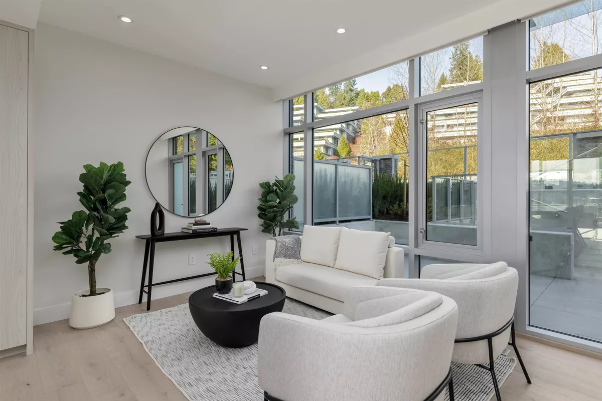 Introducing Evelyn Walk, the latest Townhouse Collection of luxurious West Vancouver living at Evelyn by Onni. Spacious, brand new 1855sqft three bedroom, three bathroom townhouses with gated entries and a huge front patio. We only have two townhouses left. The homes are 3 levels of living, including a private garage. With a bright, open floorplan, these designer homes are elegantly appointed with the finest finishes. The primary bedroom is spacious, with a great walk-in closet and luxurious ensuite. Additional features include automated lighting & blinds, built-in speakers, full-size washer & dryer, home automation ready, and more! Perfectly located, steps to Park Royal, Ambleside, just minutes to the seawall, restaurants, shops, and transport links! This is a must see!