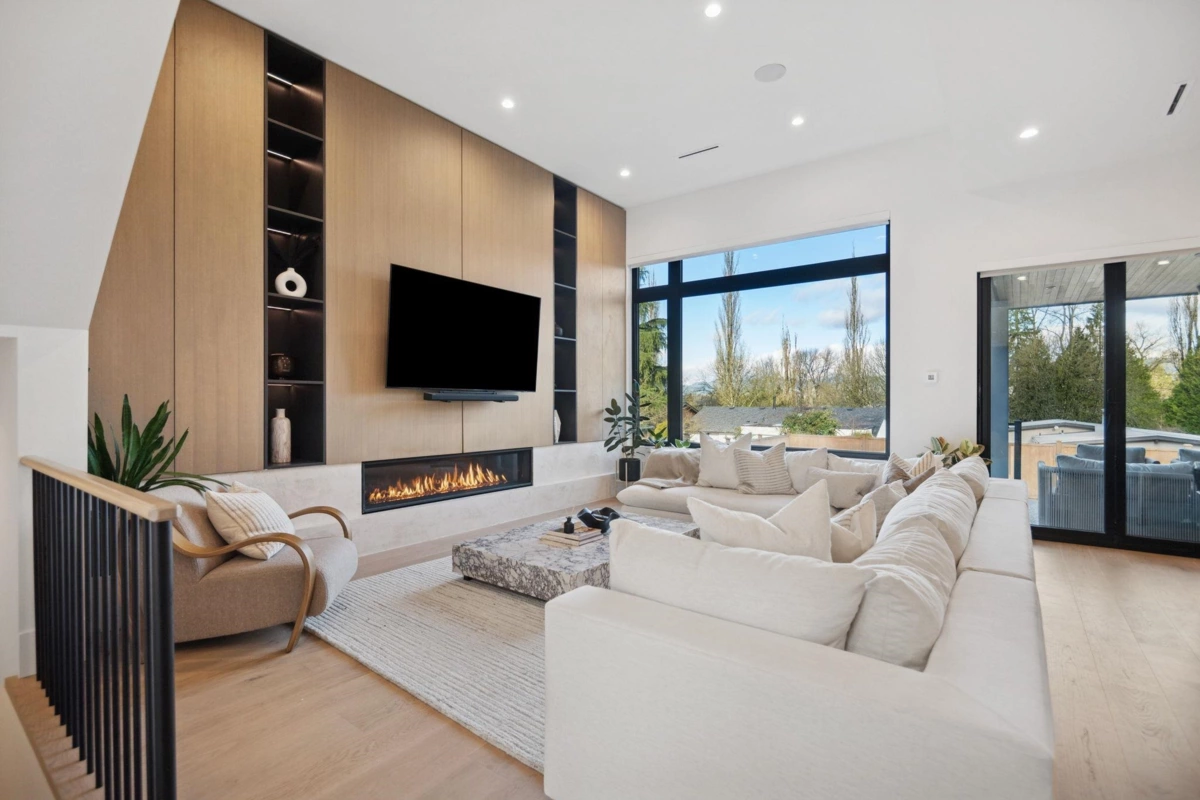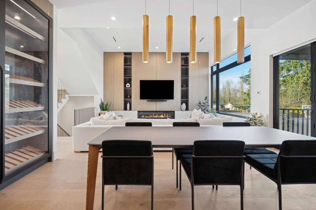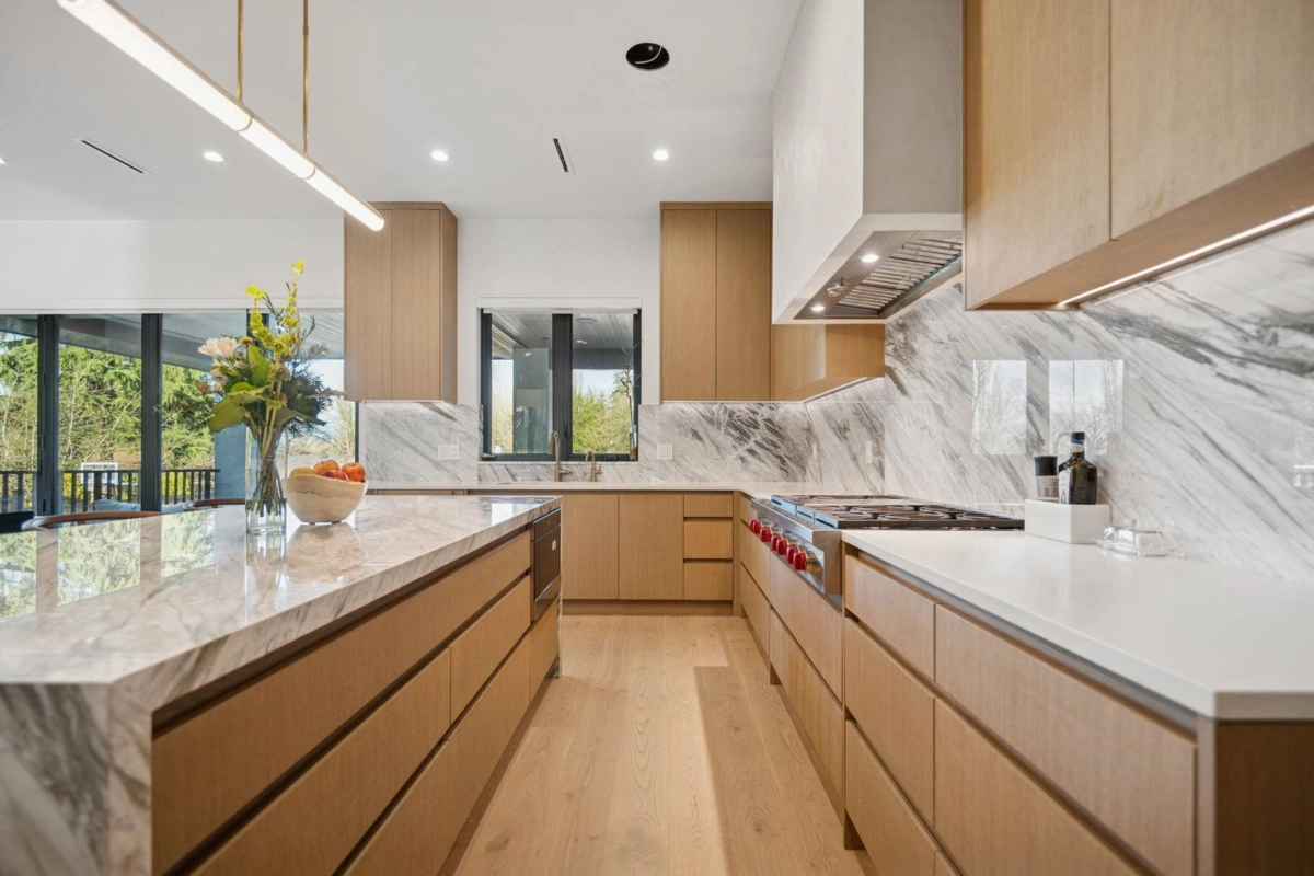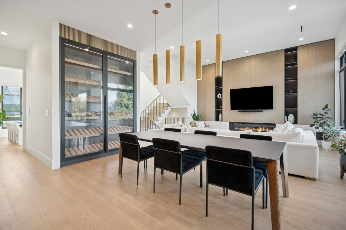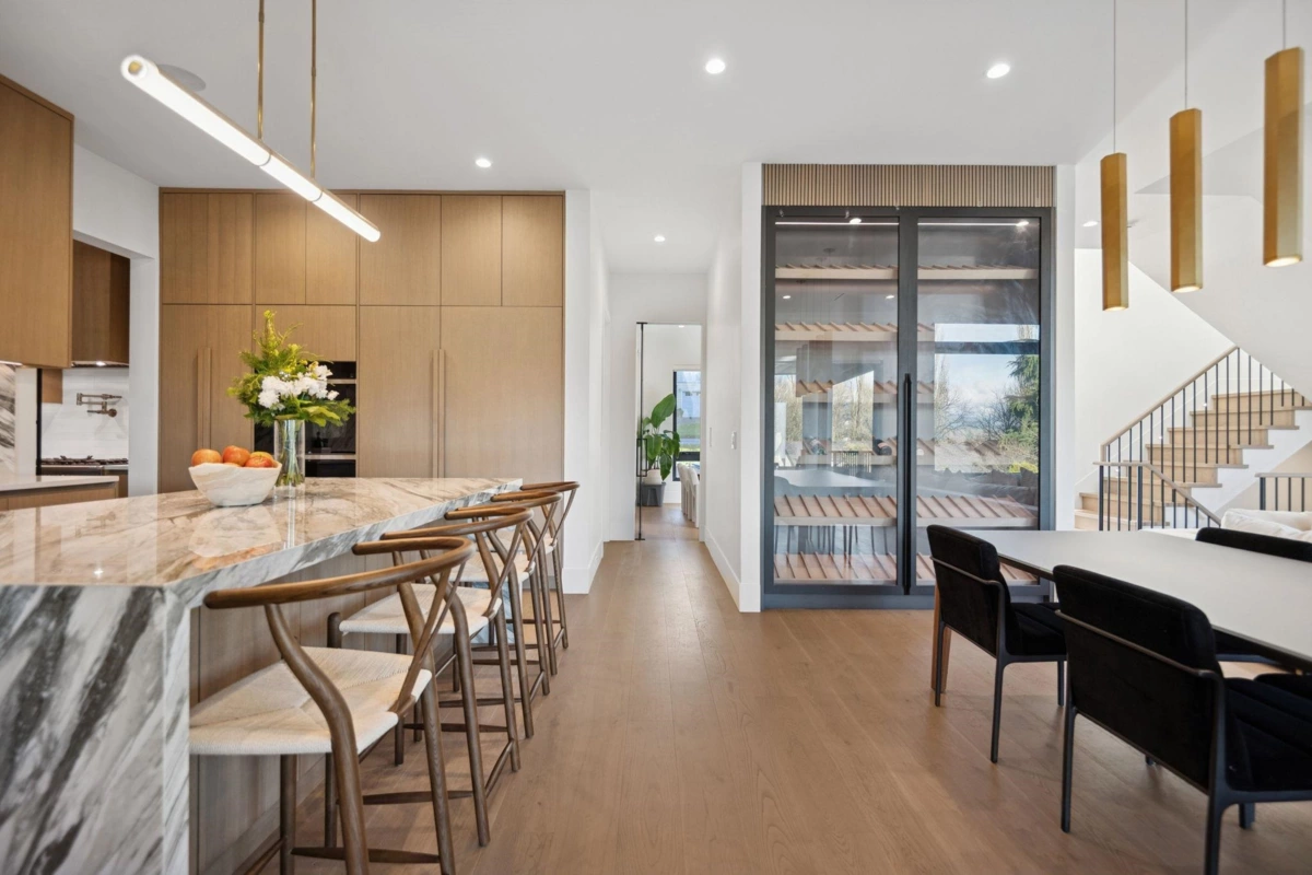 Prestigious Burnaby Lake location! Exceptional 2023 custom-built home sits on a 7200SF lot offering HIGH-END finishes throughout for discerning buyers who appreciates QUALITY and DESIGN. Step inside to soaring ceilings and a bright open-concept layout wi/family room, dining area, and expansive living room kitchen, highlighted by engineered flooring. The chef’s kitchen features panelled appliances, white oak cabinetry, dramatic marble stone,Wolf appliances, a spice kitchen, and a floor-to-ceiling wine display. Nano-sliding doors open to a covered patio and large private backyard, 4 gas fireplaces in and out. Upstairs offers 3 bedrooms with spa-like ensuites, with walk-in closet. Suite with separate entrance. Finished with custom millwork, A/C, smart home system, double garage - more to see!