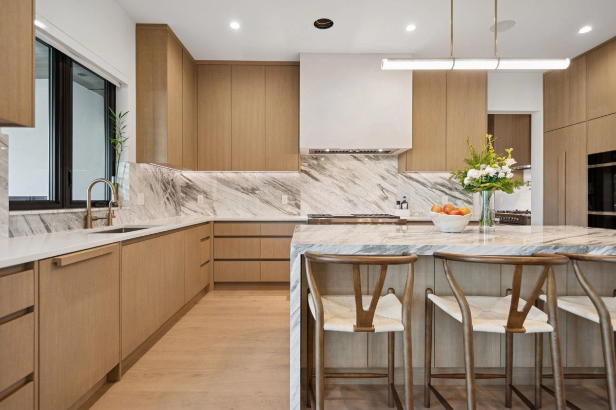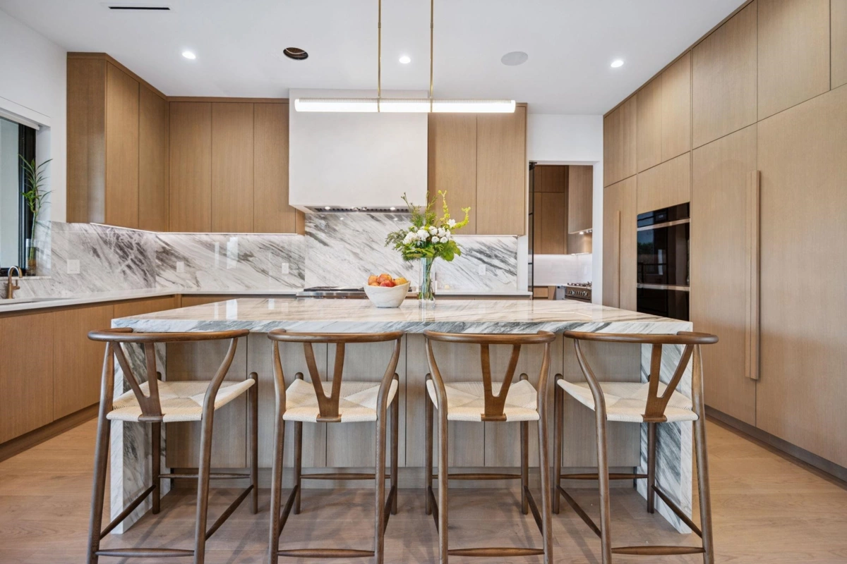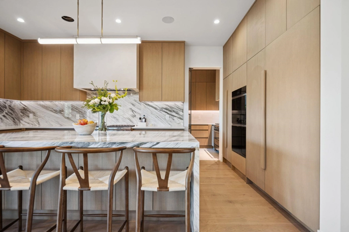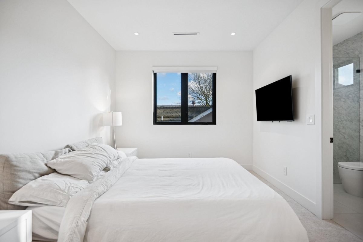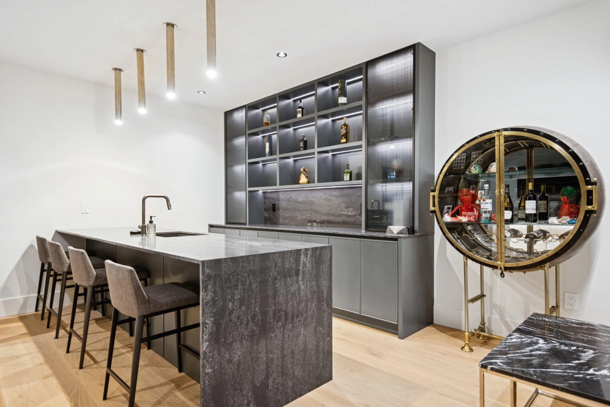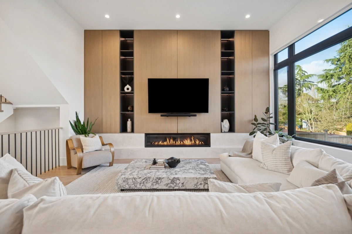 Prestigious Burnaby Lake location! Exceptional 2023 custom-built home sits on a 7200SF lot offering HIGH-END finishes throughout for discerning buyers who appreciates QUALITY and DESIGN. Step inside to soaring ceilings and a bright open-concept layout wi/family room, dining area, and expansive living room kitchen, highlighted by engineered flooring. The chef’s kitchen features panelled appliances, white oak cabinetry, dramatic marble stone,Wolf appliances, a spice kitchen, and a floor-to-ceiling wine display. Nano-sliding doors open to a covered patio and large private backyard, 4 gas fireplaces in and out. Upstairs offers 3 bedrooms with spa-like ensuites, with walk-in closet. Suite with separate entrance. Finished with custom millwork, A/C, smart home system, double garage - more to see!