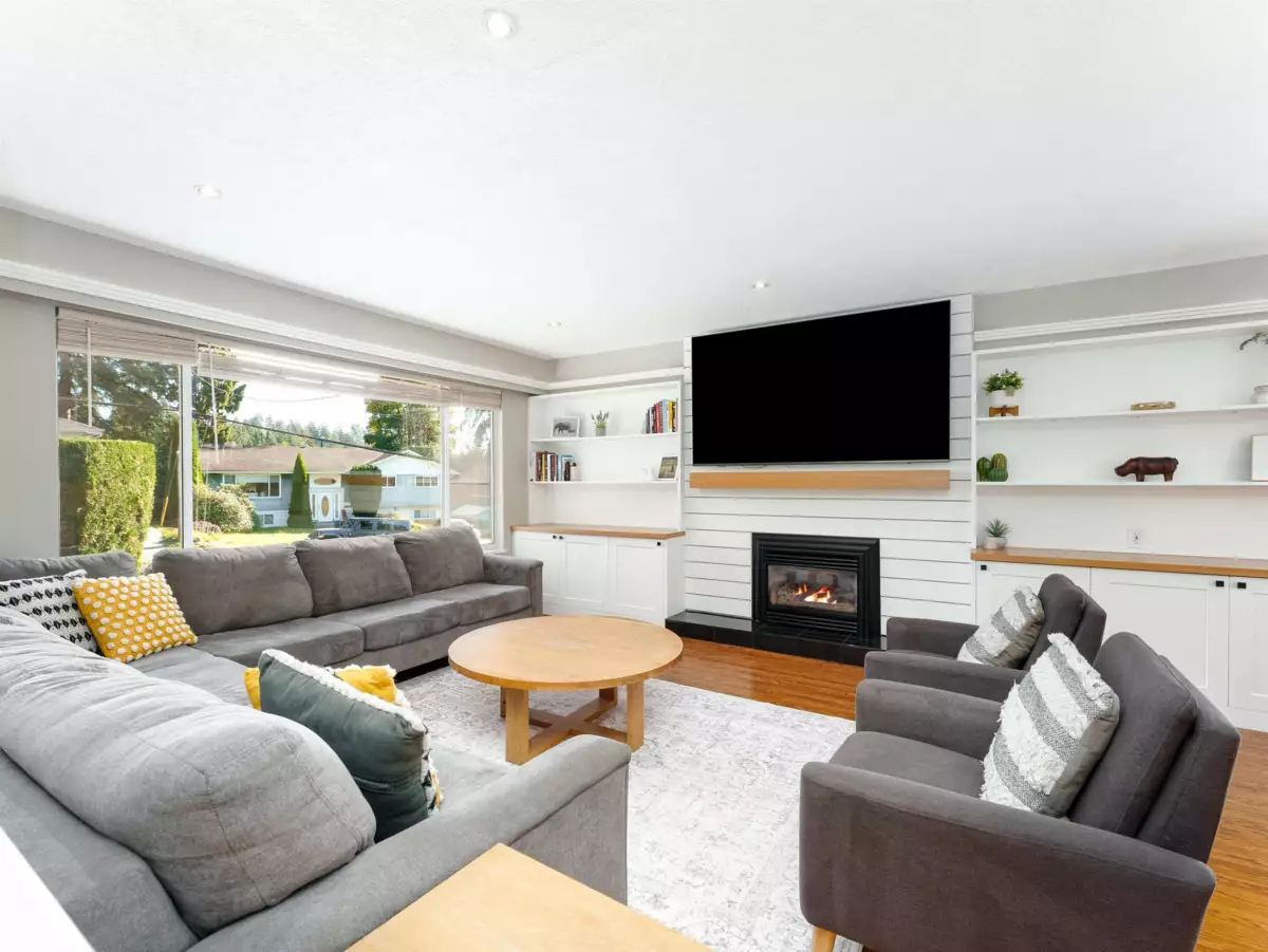 Ideal family home on a generously sized lot, offering flexibility and comfort across two levels. The main floor features a spacious layout with three bedrooms and a recently updated bathroom. The living room includes newly installed custom millwork, adding warmth and character to the central gathering space. Living and dining areas flow easily to the outdoor space, where partial water views and a private, sun-filled backyard backing onto greenspace enhance the setting. Downstairs, the layout includes a large games room, a family room or office, an additional bedroom, and ample storage. A second renovated bathroom supports multi-generational living or guest accommodation. The property offers a thoughtful mix of indoor and outdoor space, suitable for families looking for room to grow.