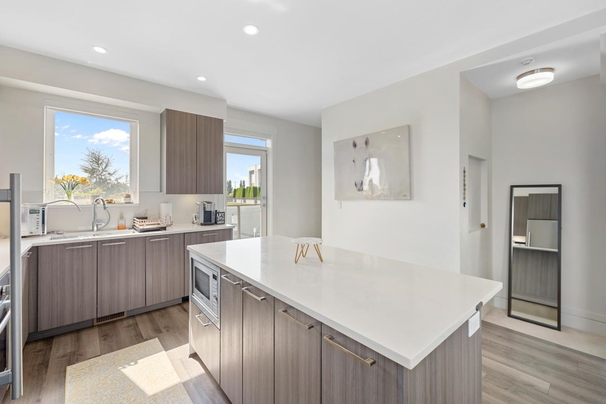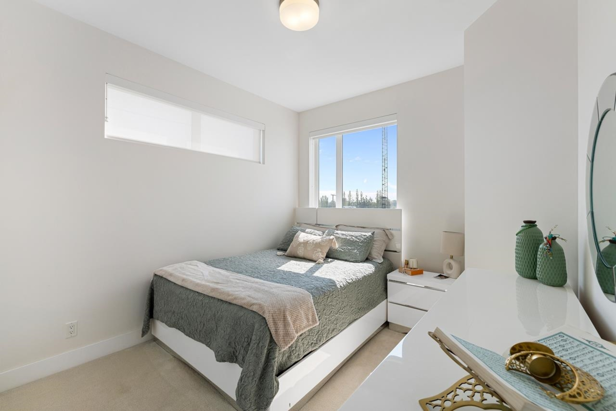 Jasmine at The Gardens is a luxury townhome community within a master-planned development by Townline, nestled beside a 12-acre natural park w/ water features + trails. This 1600+ sf,A/C townhome features 3 bdrms,2.5 baths,11ft ceilings,laminate floors,and a contemporary kitchen w/ premium Bosch appliances, offering a seamless indoor-outdoor flow to the patio. Upstairs feature 2 bright bdrms and a master suite w/in-floor heating. An extra parking stall complements the 2-car garage. Residents enjoy over 6,000 sf of amenities, including a state-of-the-art fitness centre and gymnasium. Conveniently located near Ironwood Plaza, Coppersmith Mall, and Riverport entertainment complex, w/easy access to major highways,Vancouver,YVR Airport, and the border via Hwy99.Balance 2/5/10 New Home Warranty.