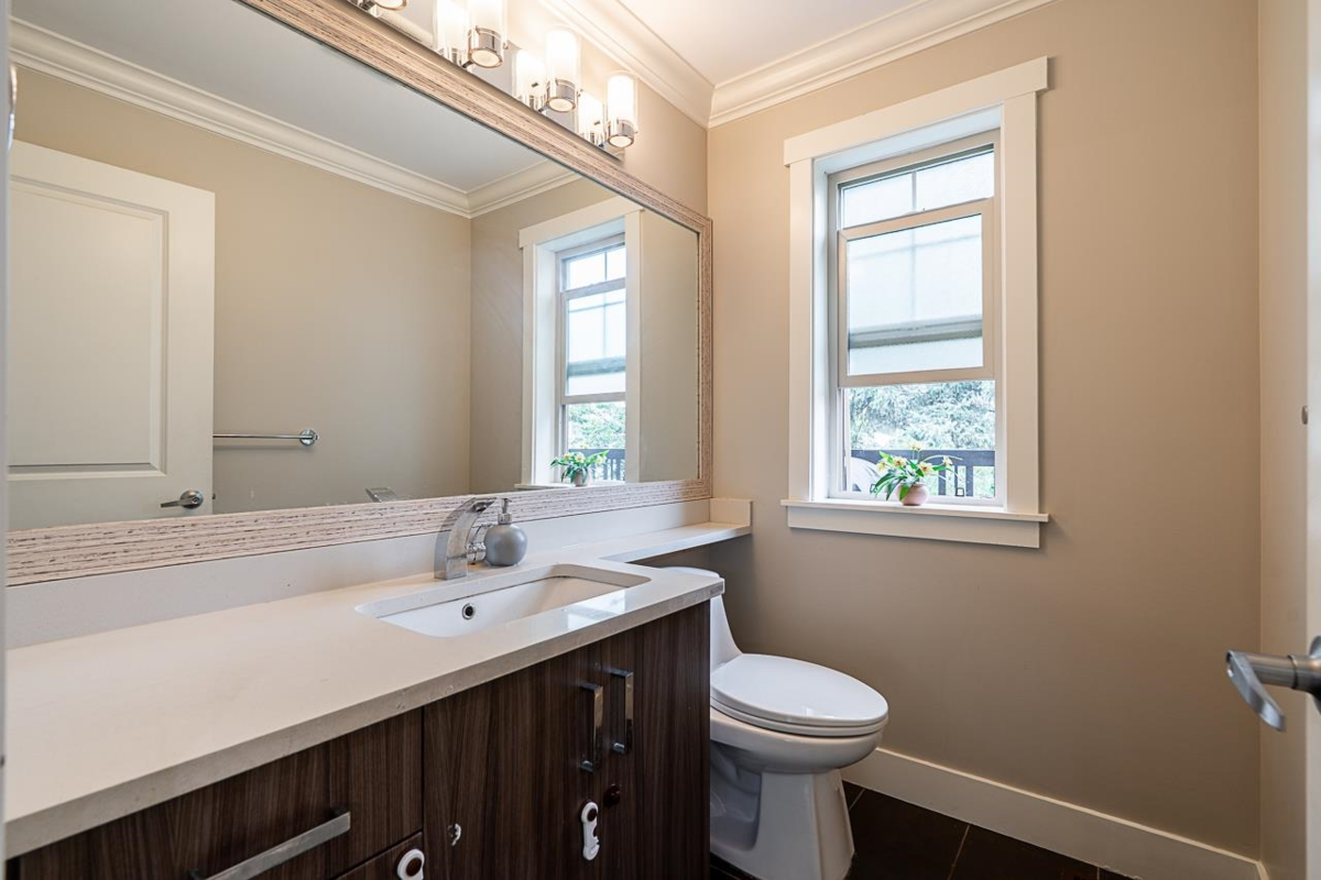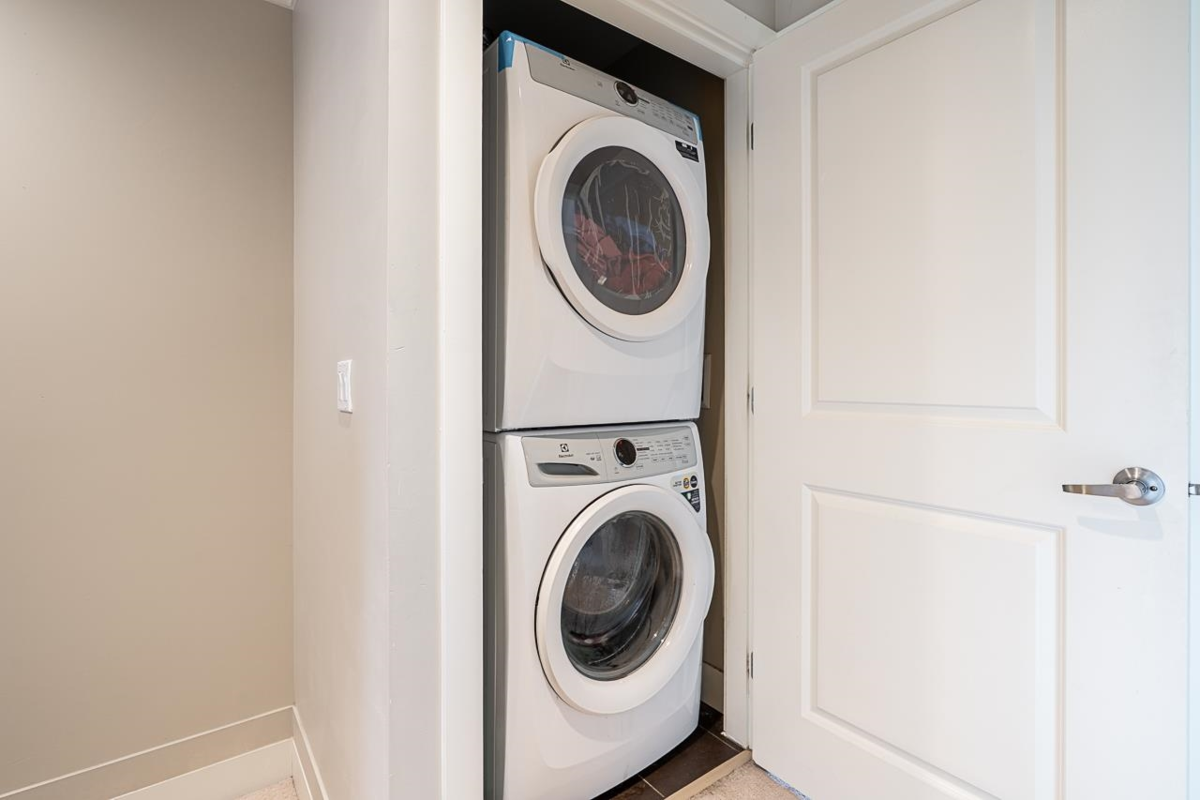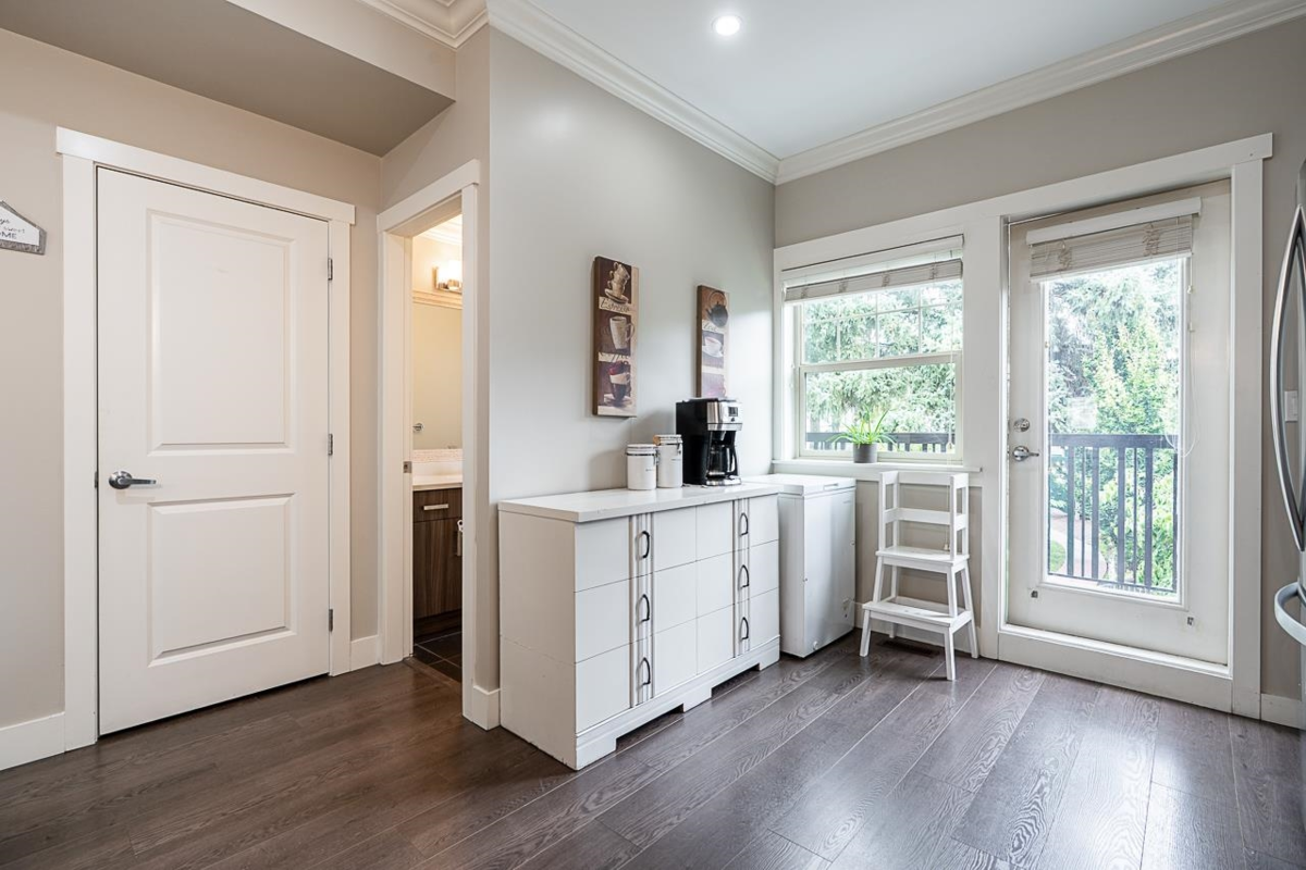 Immaculate 10-yr old townhouse featuring 3 spacious brms and 2.5 baths in a prime central location. This beautiful home offers a generous backyard that backs directly onto the playground—perfect for children to play and pets to enjoy. Beautiful modern kitchen for the chef in the family with quartz countertops, breakfast bar, gas range for gourmet cooking, S/S appliances, and tons of counter and storage space. Great open concept layout on the main level with a bonus powder room. Conveniently located near transit, just steps away from the upcoming SkyTrain station, parks, schools, shopping and restaurants across the street.