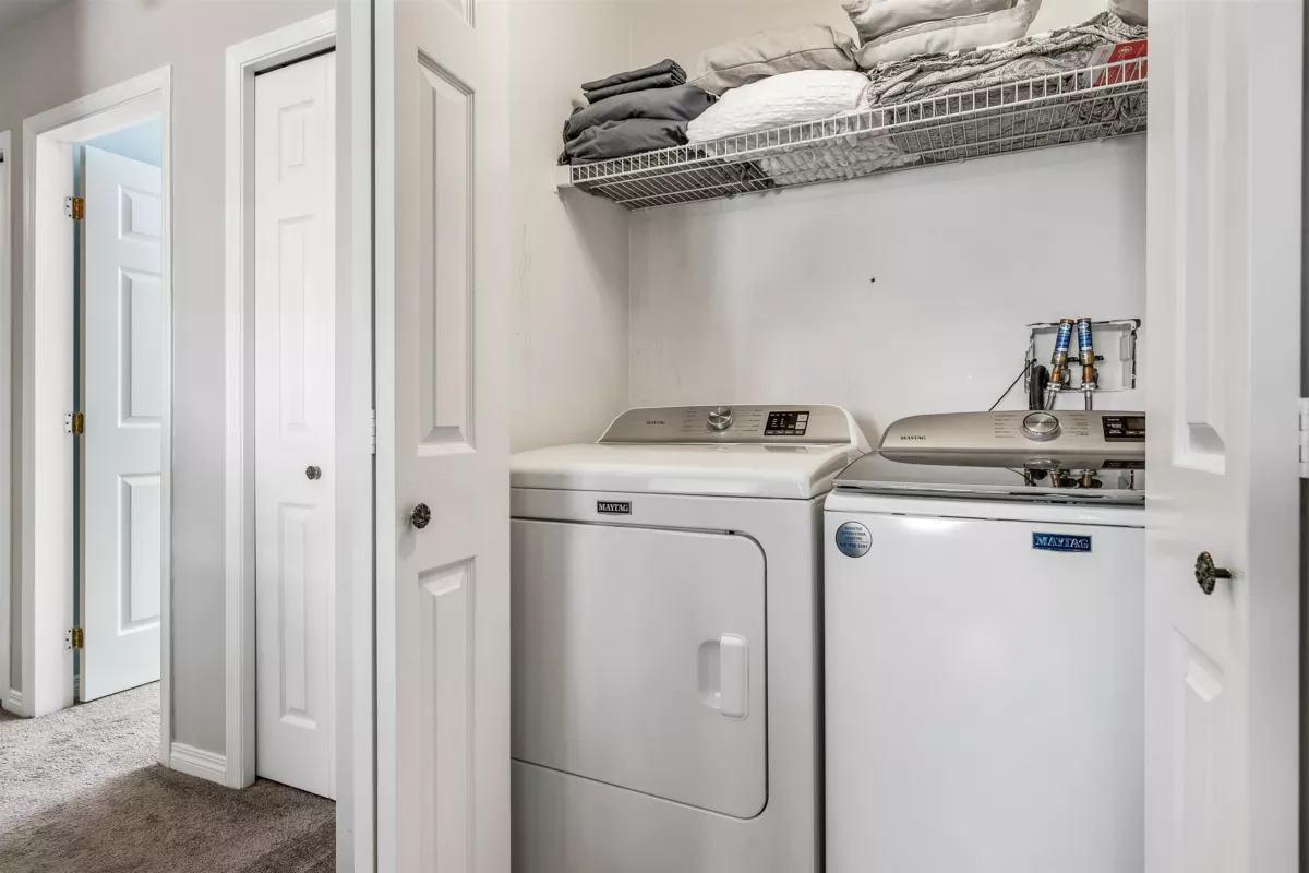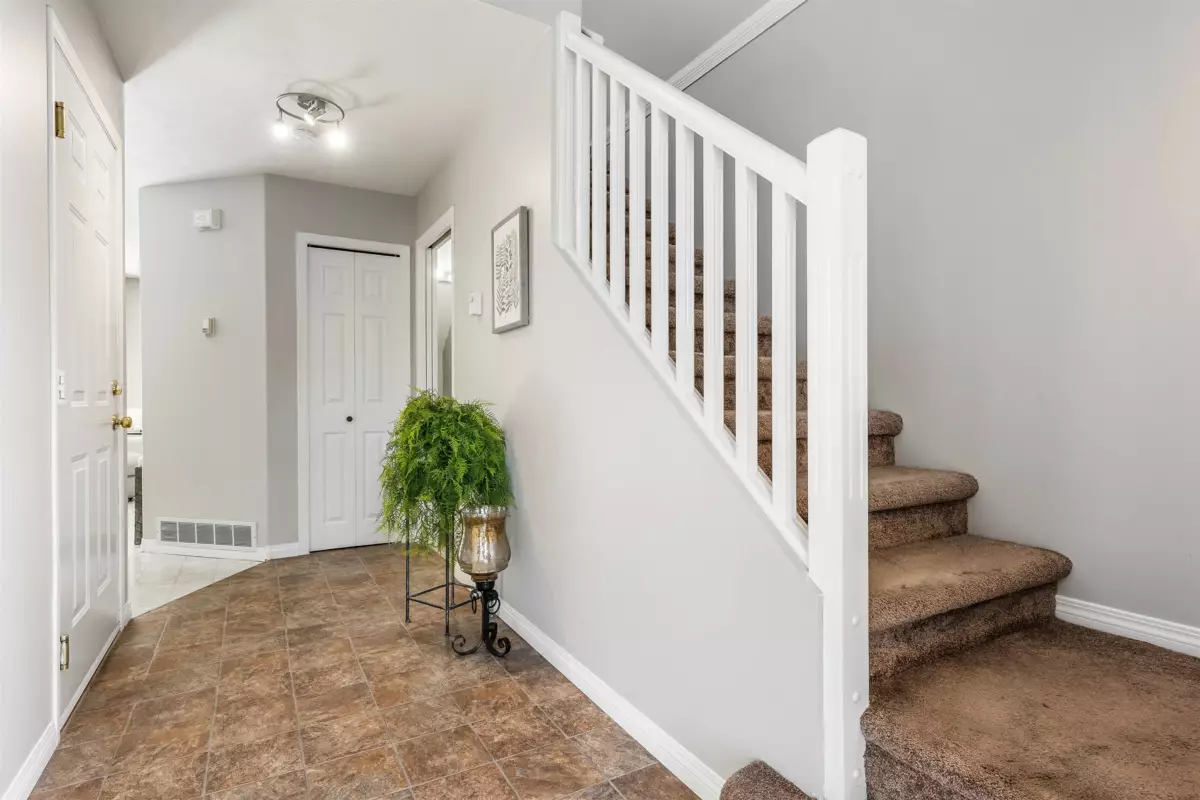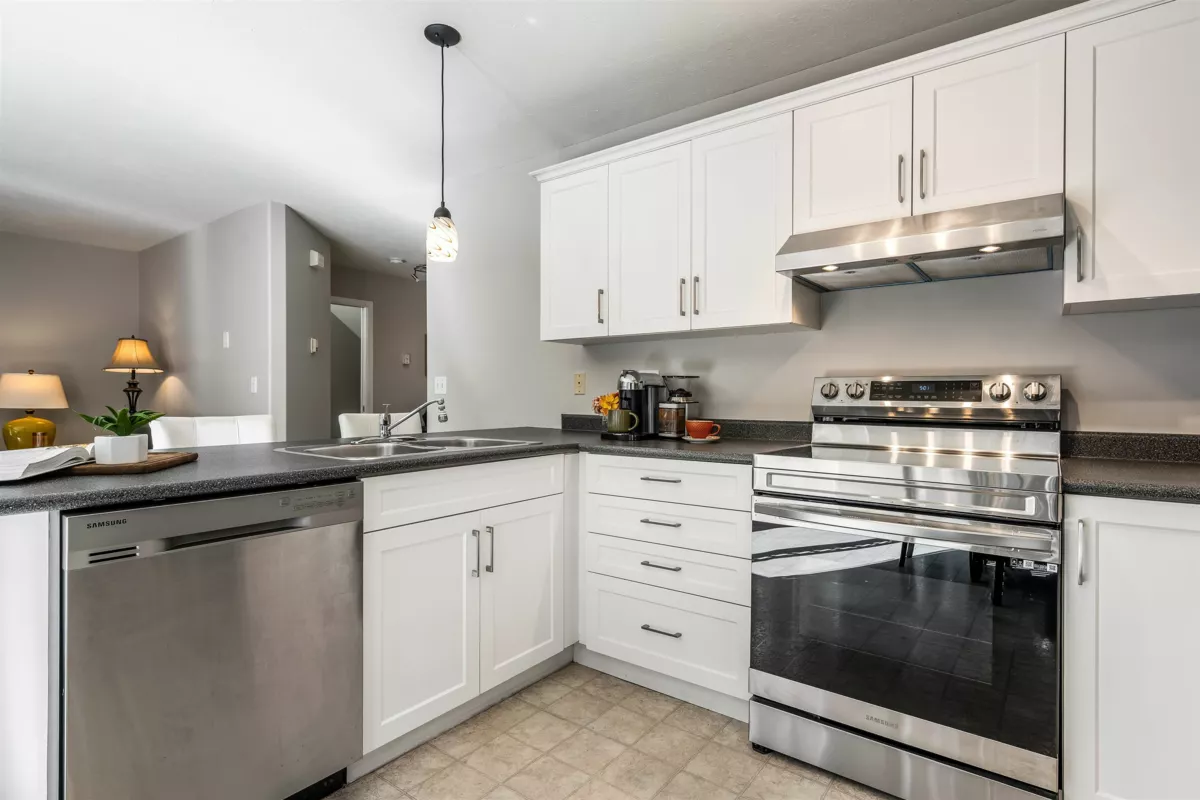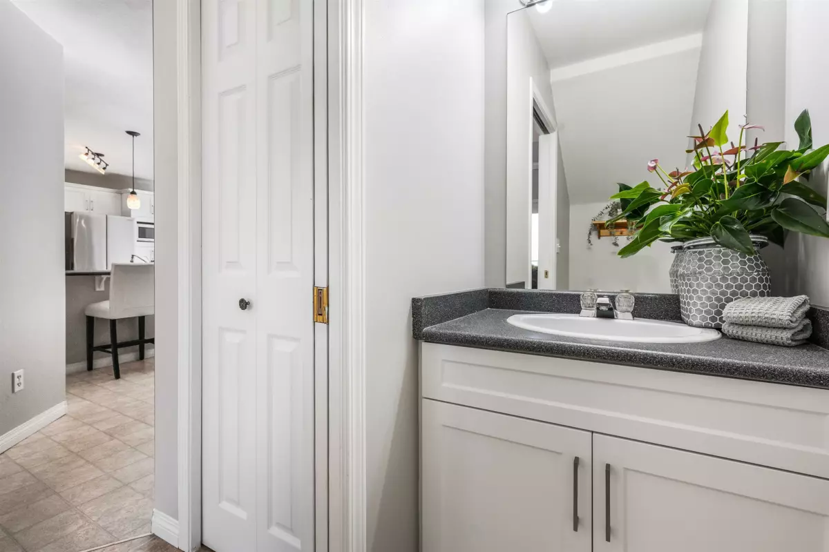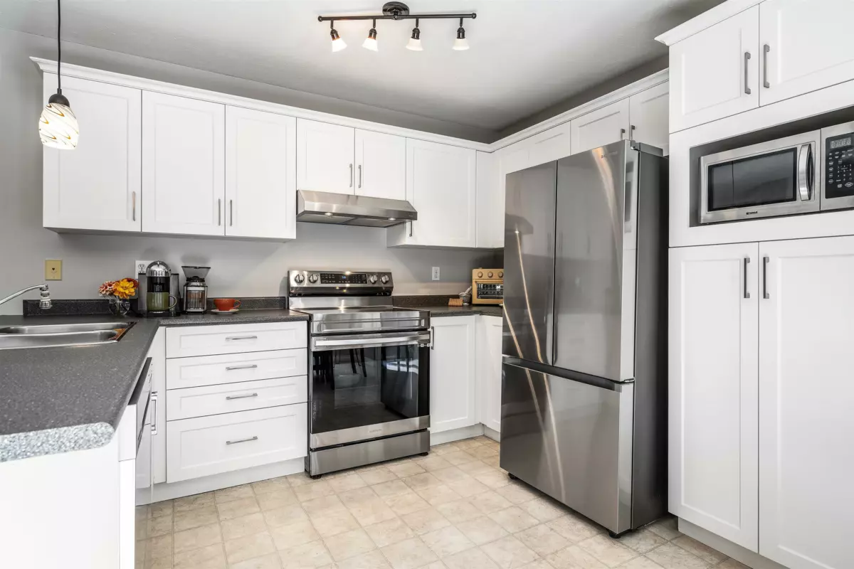 Charming 3 bed, 2 bath townhome in a quiet, family-friendly neighbourhood close to schools, recreation, shopping & transit. Bright open-concept main floor with spacious kitchen featuring newer SS appliances (2022), modern countertops & soft-close cabinets, flowing into the living area with cozy gas f/p. Upstairs boasts a large primary bedroom with ensuite access to a 5pc bath w/dual vanity, plus 2 more bedrooms & laundry. Recent updates: HWT & roof (2022), W/D (2021), dbl garage w/new door. Move-in ready & perfect for families!