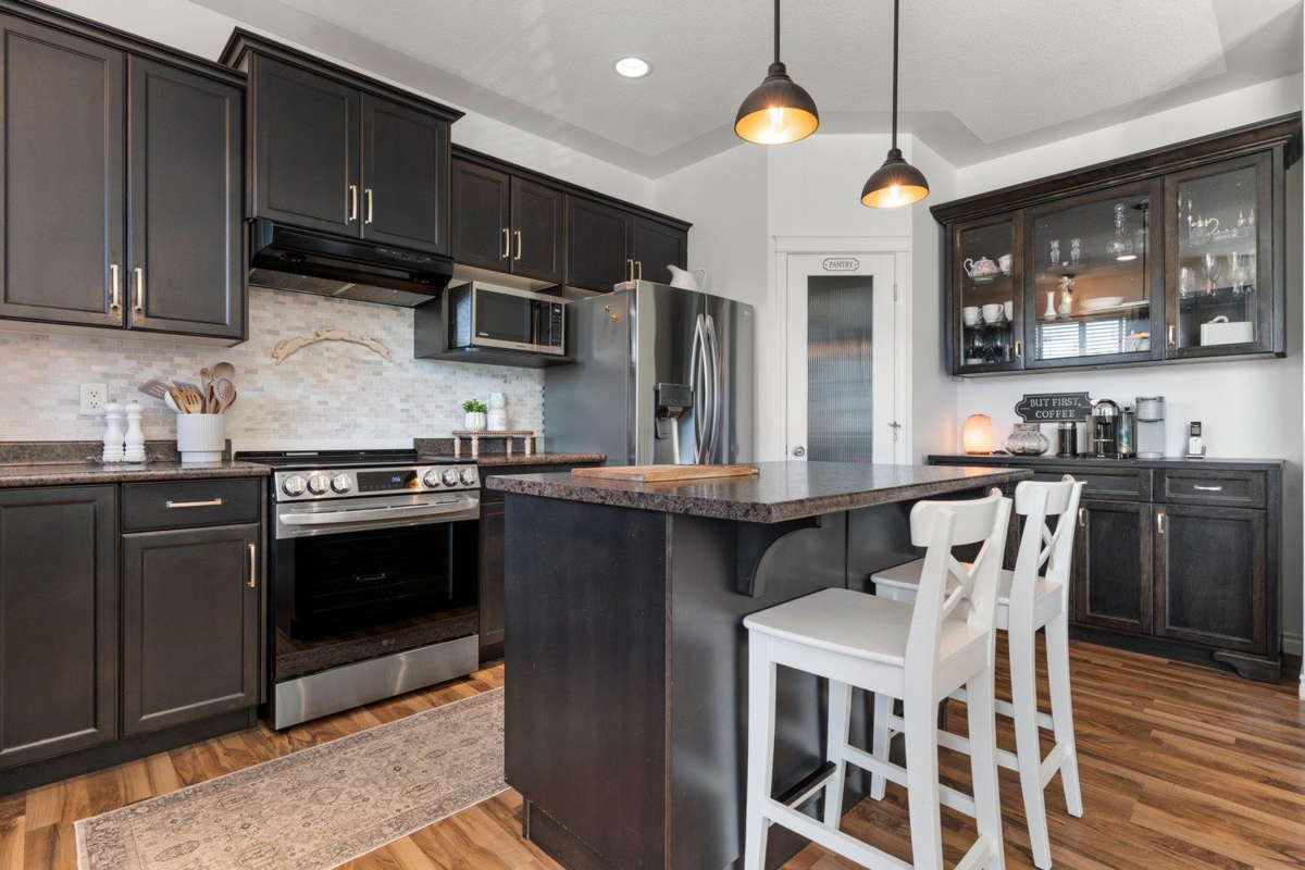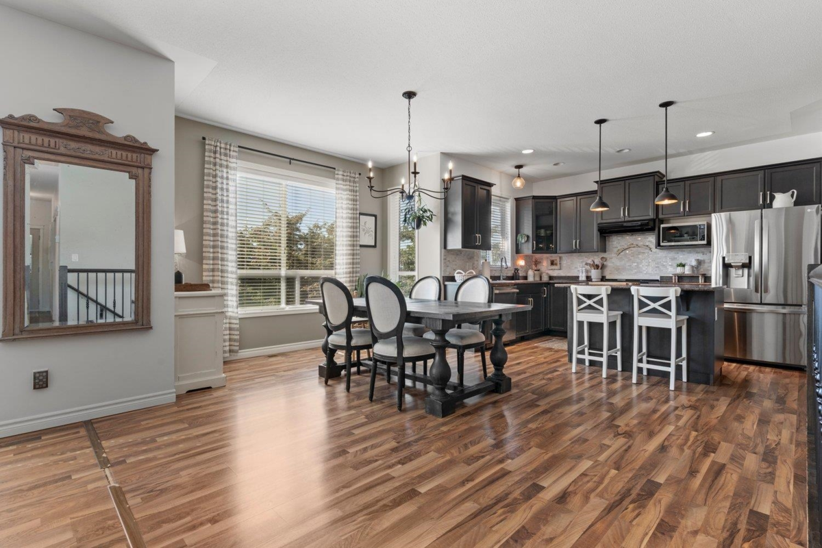 Detached home with 1-bedroom in-law suite with private access. Perfect for family or mortgage helper. Main floor offers 3 spacious bedrooms, open layout, beautiful Kitchen and brand-new stainless steel appliances. Enjoy mountain views from the large balcony, AC comfort, and a fully fenced private backyard. In addition, to an office, there is a mud room and laundry in the basement. Quiet street, close to schools and highway access-an ideal family location!