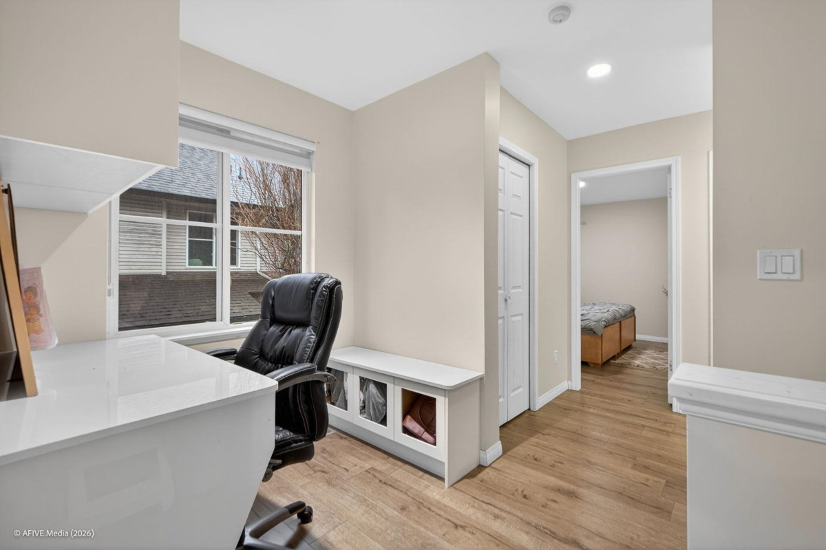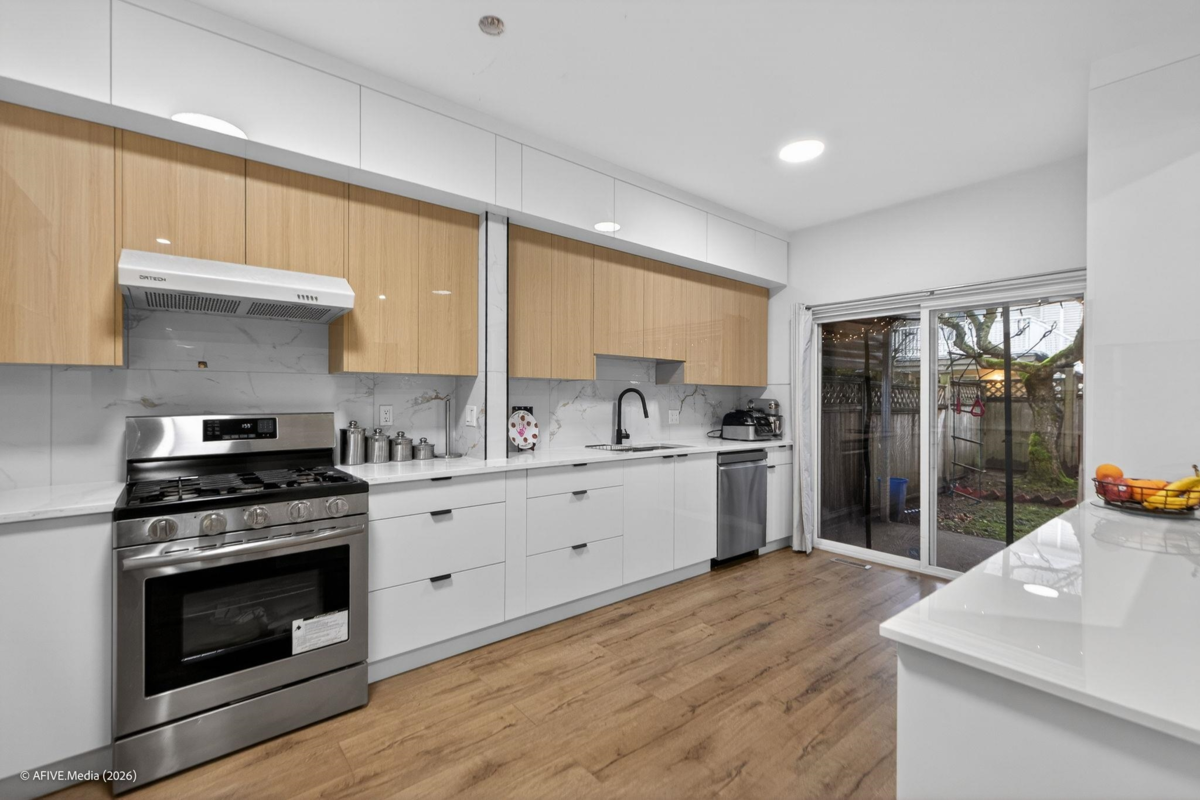 Welcome to this beautifully updated corner-unit townhouse in the desirable Chimney Heights community, featuring a rare double side-by-side garage and a spacious two-level layout with 3 bedrooms, a den, and 2.5 bathrooms. The main floor offers a bright open-concept living and dining area with 10’ ceilings, recently renovated with new laminate flooring, modern lighting, fresh paint, a stylish kitchen with quartz countertops, new cabinets, and new appliances. Enjoy a large private backyard perfect for kids and summer BBQs. Located in a quiet, family-friendly complex steps to schools and transit, and minutes from shopping, parks, and recreation — a perfect home for families seeking comfort and convenience.