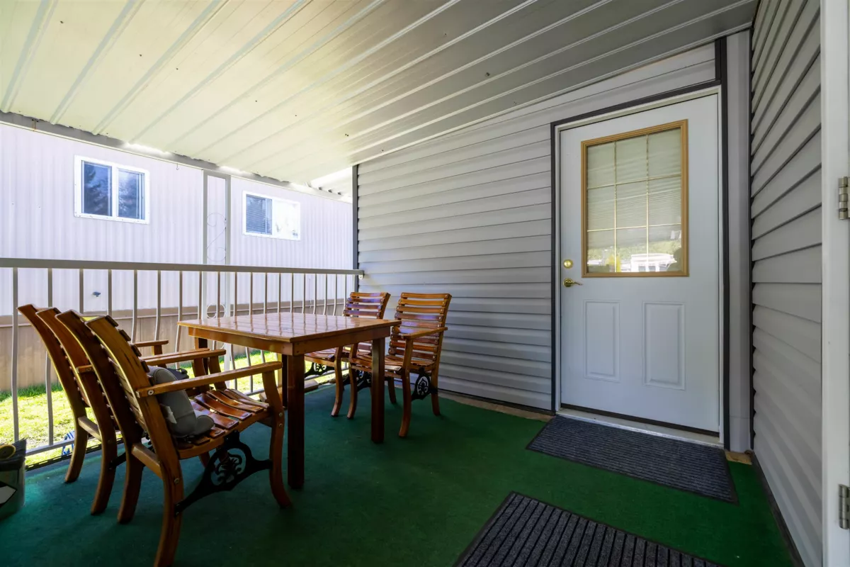Welcome to DEER CREEK ESTATES, a desirable adult-oriented community surrounded by nature. This completely renovated 2 bed, 2 bath offers 936sqft of bright living space with vaulted ceilings & large windows that bring in natural light. Updates from top to bottom include NEW gyprock walls & exterior siding with new vinyl floors throughout, along with all new bathroom fixtures & equipped w/ AC. The renovated kitchen includes custom built-ins for storage, ample counter space, and a separate dining area perfect for entertaining. The spacious primary suite includes a large closet and a private en-suite. There's convenience of a parking pad plus covered parking, a connected WORKSHOP, private patio, and an additional shed for extra storage options. Move-in ready & ideal for downsizers!