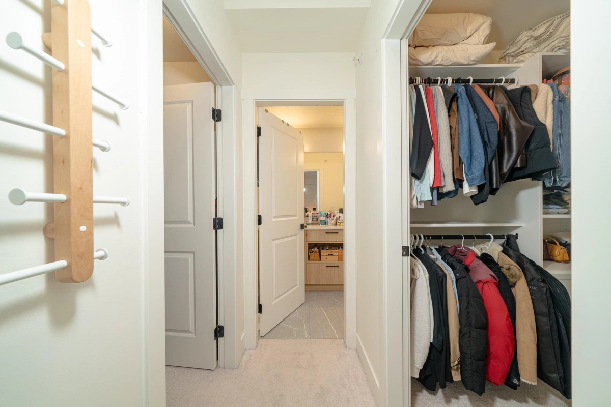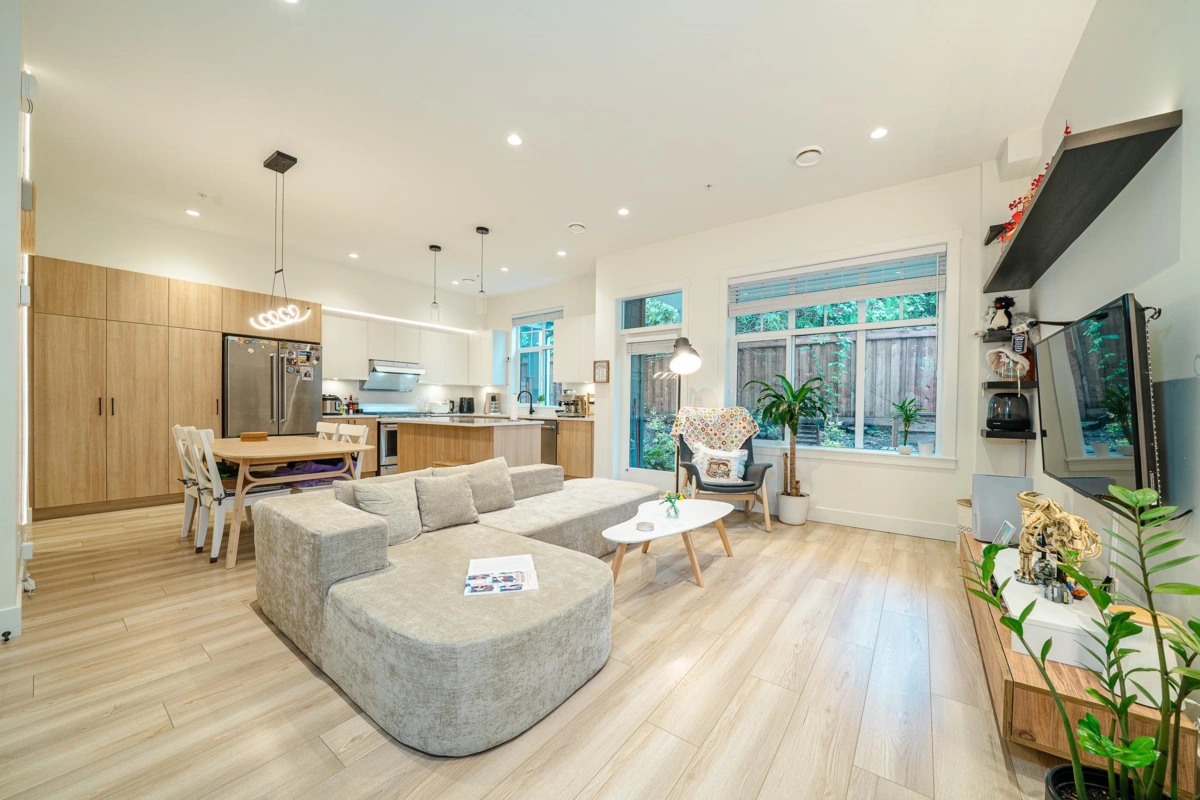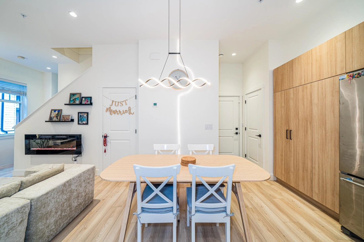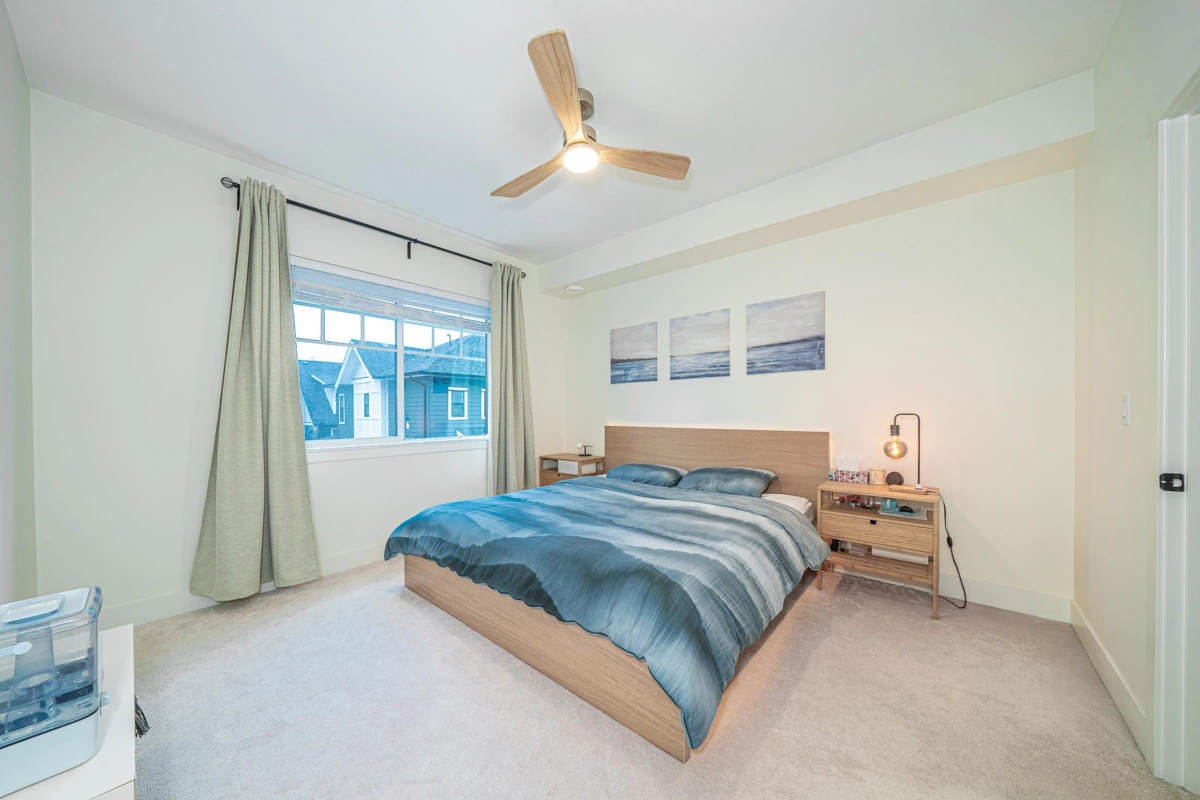 This well-designed corner unit townhome at NEWBURY offers two levels of living space with a layout that truly feels like a single-family home. The main floor features 10-foot ceilings, while the second level offers 9-foot ceilings throughout, creating a bright and open atmosphere. All bedrooms are generously sized with highly functional layouts. Enjoy excellent privacy, with the front of the home facing a landscaped garden and community mailbox area, and the rear backing onto a large detached single-family home set well away. A walk-out main floor patio extends the living space outdoors, while the spacious upper-level loft provides flexibility for a home office or additional living area. Ample storage throughout and a side-by-side double garage complete this comfortable and modern home.