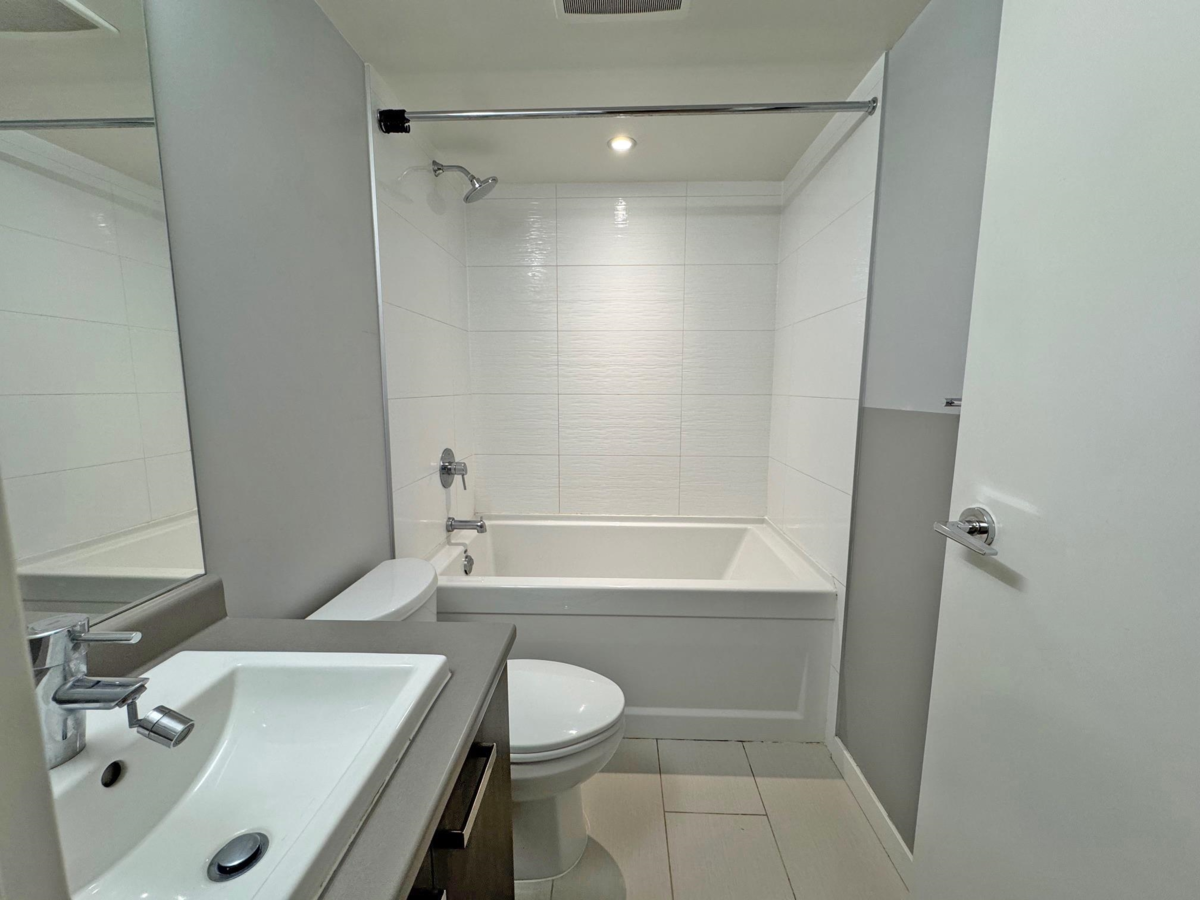 Ultra Urban Village in the heart of Surrey - Modern luxury concrete apartment, 1 bedroom quiet unit with balcony of the city view & 4 pieces bathroom. Bright and spacious. Quartz countertops, stainless steel appliances. Short walk to skytrain, SFU, Surrey place mall, N Surrey Rec Centre, T&T. 1 secured parking & 1 locker. Private media room, meeting room, Yoga room. Quick possession possible. Perfect for young couple or investment.
