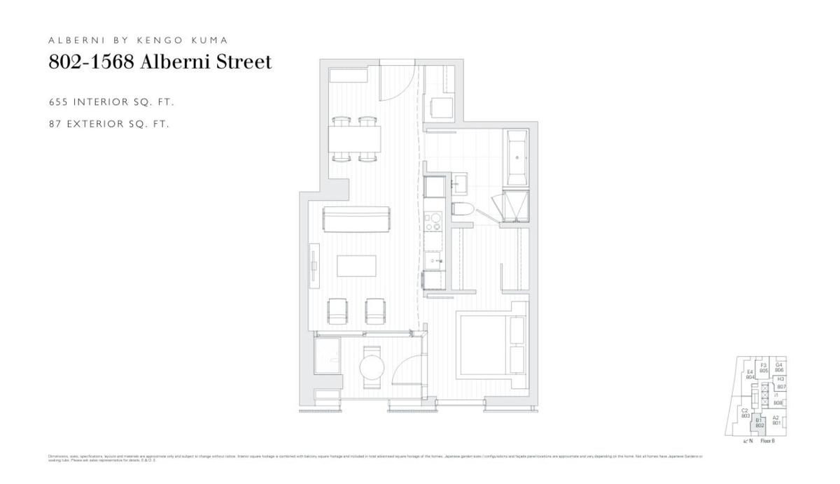 Reimagining Architectural Elegance at Alberni by Kengo Kuma! Designed by world renowned architect Kengo Kuma and developed by Westbank, this 742 total Sq. Ft. home features 655 Sq. Ft. of living with 1 Bed, 1 Bath and 87 Sq. Ft. of beautiful Japanese inspired outdoor space. Enjoy city views with a high-end Miele appliance package, beautiful, designed Japanese inspired features, and floor-to-ceiling windows. Experience resort like living with amenities such as a 24-hour concierge, state of the art fitness facility, stunning indoor lap pool, music room, and private wine tasting room. 1 Parking stall, 1 Bike Locker, & 1 Storage Locker. Experience luxury living on Alberni Street with renowned boutiques, exquisite dining options & mere moments away from Stanley Park and the Coal Harbour!