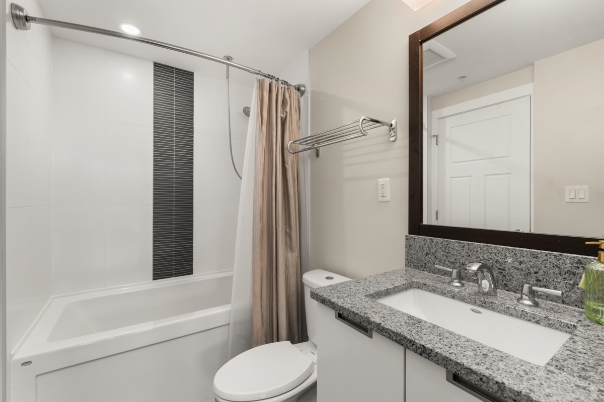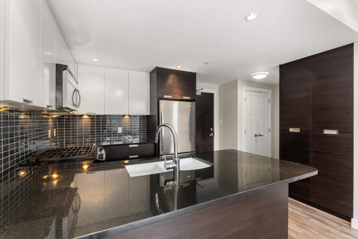 Welcome to Grand Central 2, located in the bustling neighbourhood of North Coquitlam. This well maintained 1 bed + 1 bath unit is situated just steps from a myriad of amenities including Coquitlam Centre Mall, Skytrain, Douglas College, Lafarge Lake, schools and restaurants. Inside, this 646 sqft unit offers a functional layout with floor to ceiling windows & a beautiful kitchen with S/S appliances, granite countertops and gas range. The spacious bedroom offers a walk-through closet, cheater ensuite and access to your covered balcony- perfect for enjoying your morning coffee or taking in the sunset. Enjoy resort style amenities including an outdoor pool and hot tub, gym, party room and more. 1 parking stall + 1 storage locker complete this offering. This unit is not one to miss!