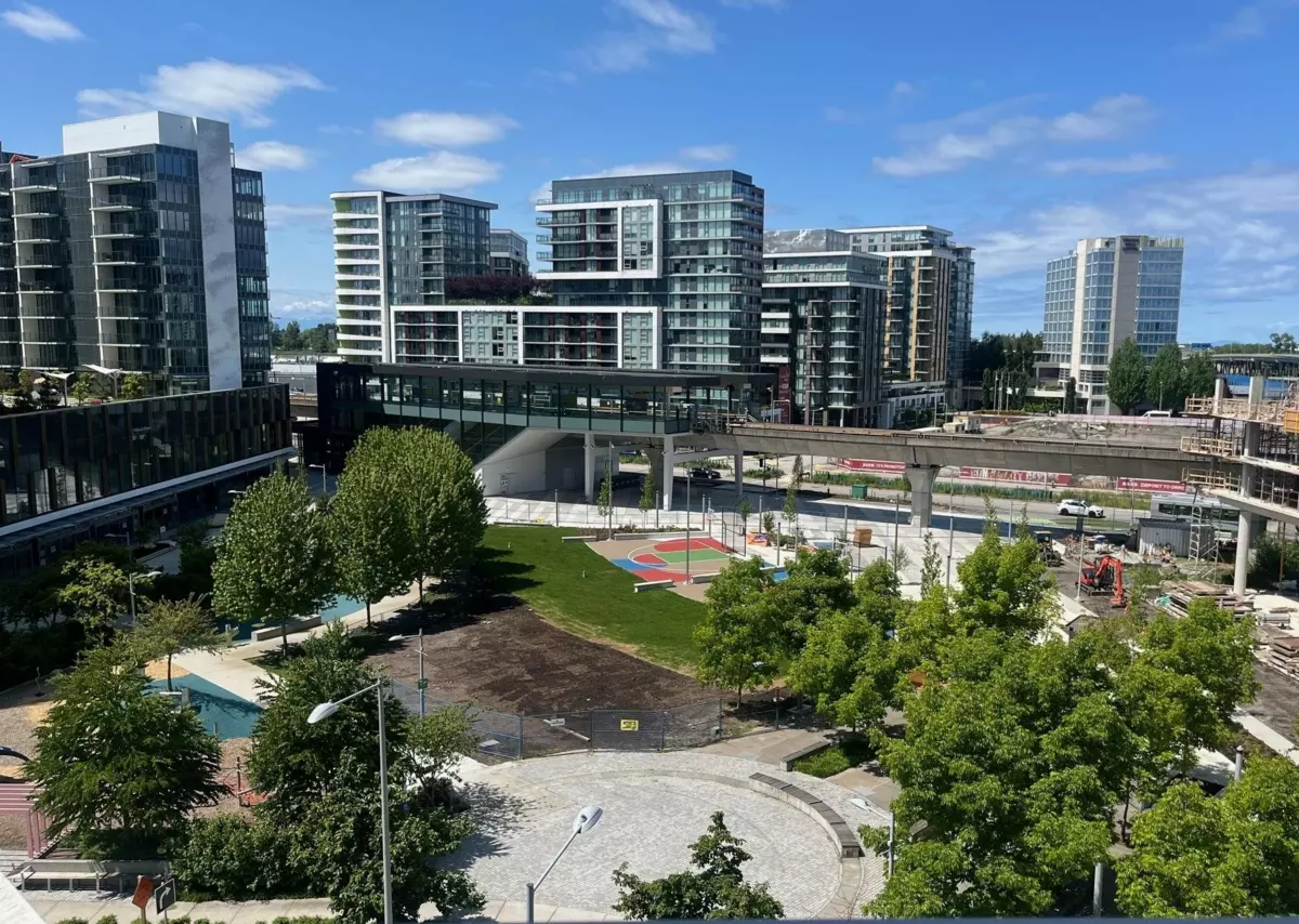 Compact 3 Bed + 2 Bath home at Torino West. Bright Northwest corner with park view. Nice efficient floorplan with 2 balconies and lots of natural light. Central heating/cooling, full-size appliances, high ceilings & laminate flooring in all living areas & bedrooms. Convenient location with services, groceries, and restaurants all within walking distance and only one block from the Capstan Canada Line Station.