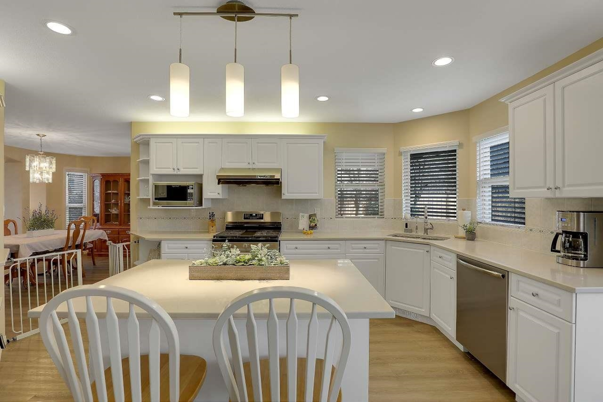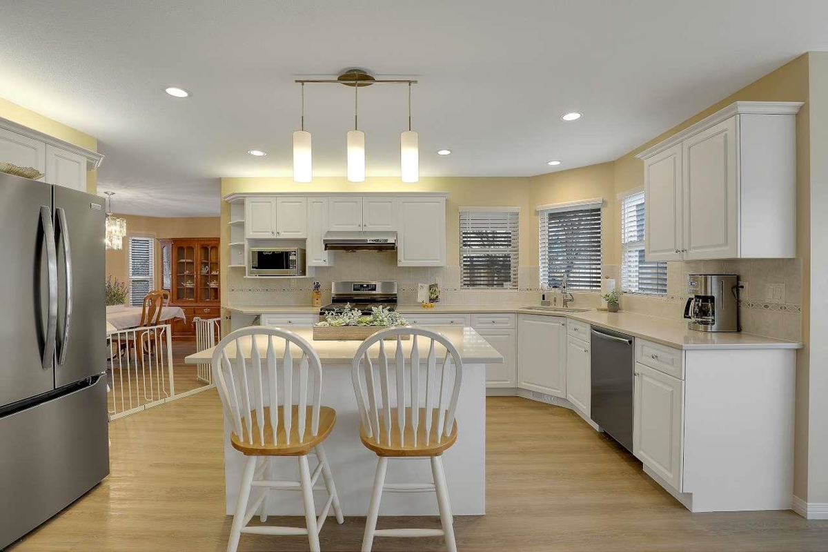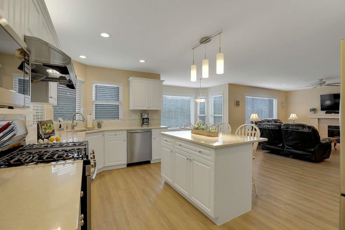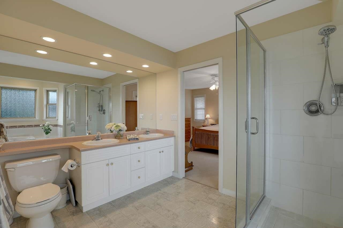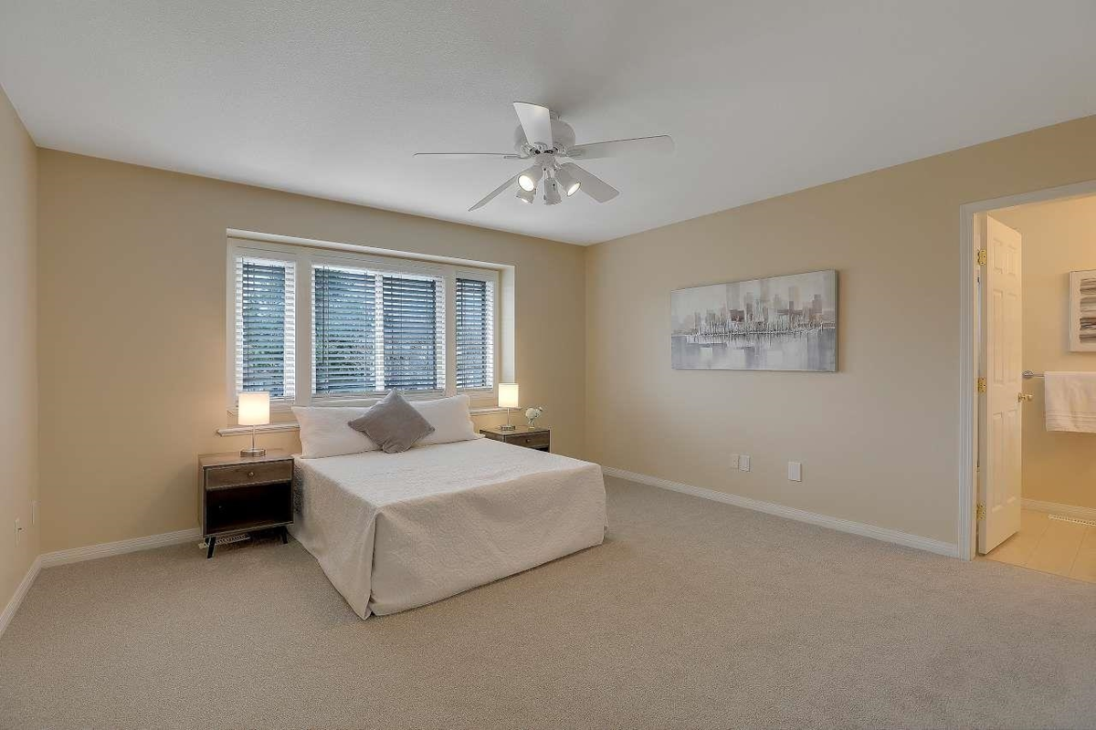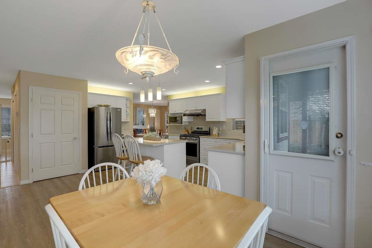 This spacious 4-bedroom, 4 bath home offers an ideal layout for comfortable living and entertaining, complete with updated vinyl floors, paint, quartz countertops, new kitchen appliances with a large backyard featuring a serene water feature, and outdoor gas hookup for BBQs and an outdoor gas fire pit. The design includes ample room for a nanny suite or an additional family member (separate staircase to bedroom & full bath). Thanks to strategically placed windows, the open-concept living space is bathed in natural light and flows seamlessly into a generous area perfect for hosting large gatherings. This home, located in a quiet cul-de-sac, is the perfect retreat for families or those who love to entertain. Walking distance to Bear Creek Park, Brookside Elementary & Enver Creek Secondary.