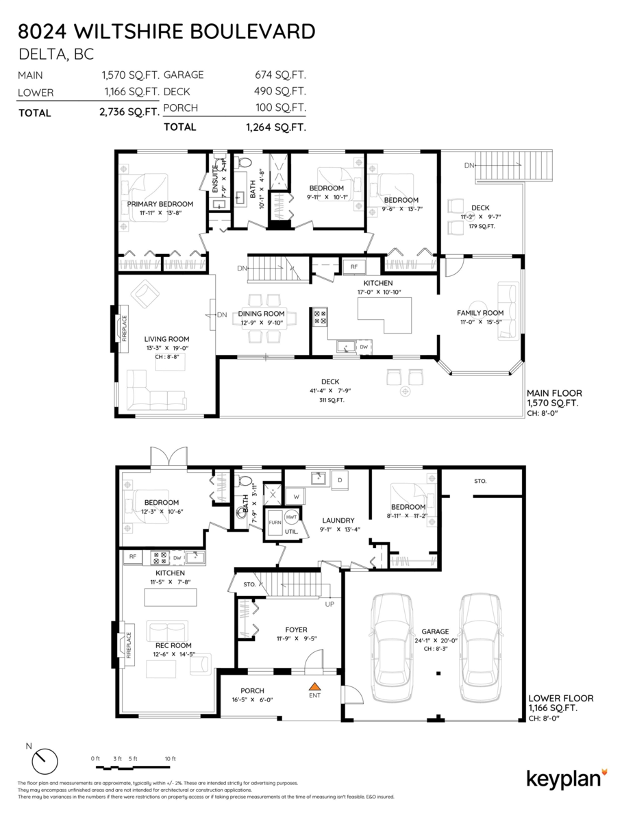 VALETINES DAY OPEN HOUSE 2:30-3:30 FEB. 14. Welcome to 8024 Wiltshire Boulevard, a beautifully updated family home on a prime 8,579 sq ft corner lot in the heart of Canterbury Heights. This immaculate residence offers over 2,700 sq ft of living space with five bedrooms and three bathrooms. Enjoy a fully renovated kitchen and updated bathrooms, newer roof, furnace and air conditioning, so you can move in with confidence. The fully fenced, low maintenance yard and double car garage make daily life easy. Downstairs features an unauthorized suite, ideal for extended family, a mortgage helper or future rental potential. Parents will love the walk to Gray Elementary and Sands Secondary. A peek a boo ocean view adds a special touch to this truly move in ready home.