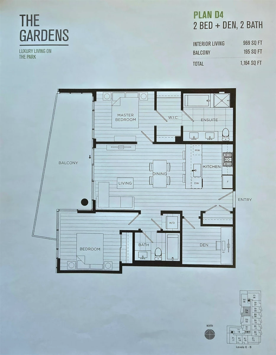 Indulge in Urban Luxury at The Gardens. Discover your dream home in the heart of Richmond's Ironwood neighborhood. This exquisite 2-bedroom + den, 2-bath sub-penthouse unit, crafted by renowned developer Townline, offers a sophisticated blend of comfort and style. Enjoy breathtaking western views of the North Shore mountains and serene northern vistas of the adjacent greenspace. With nearly 200 square feet of balcony space, you'll have ample room to unwind and soak in the sights. Inside, you'll find a spacious 969 square foot layout, perfect for modern living. The Gardens Fitness Facility, exclusive to residents, provides top-notch amenities, including a fully equipped gym and various court sports. Convenience is key, with easy access to Highway 99, nearby schools, dining and shopping.