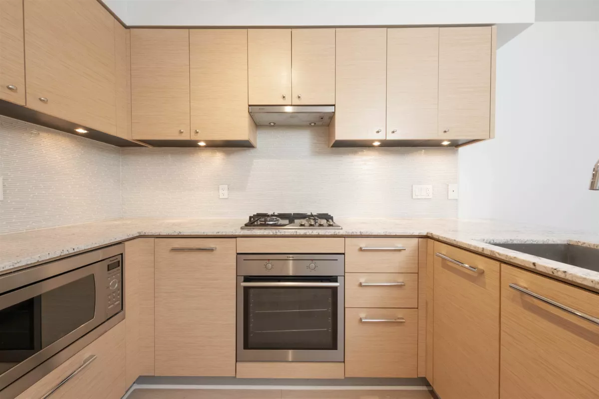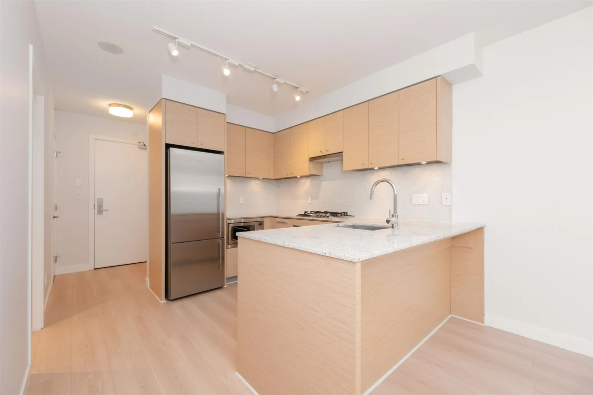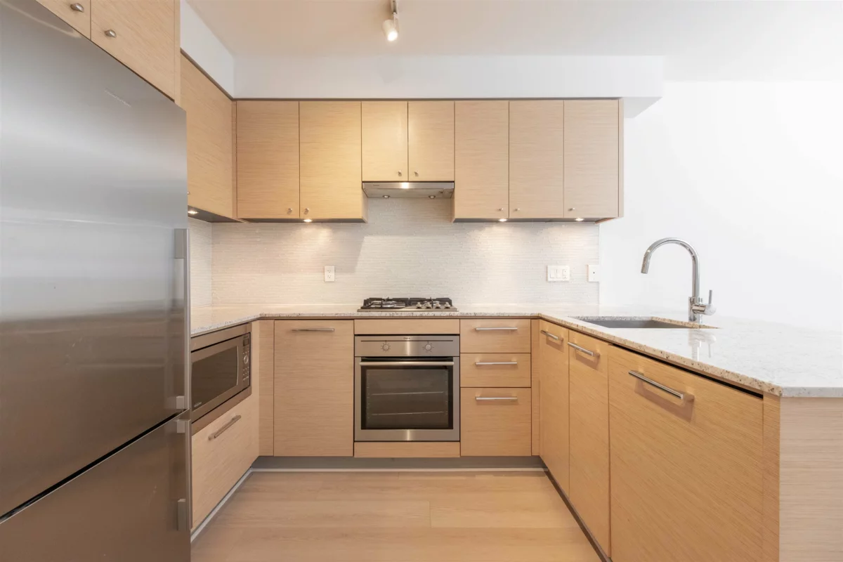 Welcome to BRAVO! This recently renovated west facing apartment is situated in central Richmond and contains 1 bedroom and bathroom plus a DEN. The property is equipped with top-of-line appliances from brands such as AEG, Fisher & Paykel, and Bloomberg. Grohe bathroom fixtures and faucets, granite countertops, air conditioning, BRAND NEW laminate flooring, NEW paint, and wooden cabinetry are fitted throughout the entire property. The building itself has been very well maintained and includes an exercise centre, party room, and playground. Richmond Centre, Lansdowne, Public Market, Price Smart Foods, and numerous restaurants and shops are all just minutes away. Easily take the Canada Line to anywhere in Metro Vancouver. Cook Elementary, Kwantlen, and Trinity University are also close by!