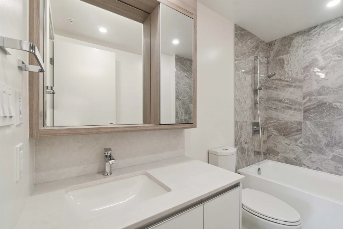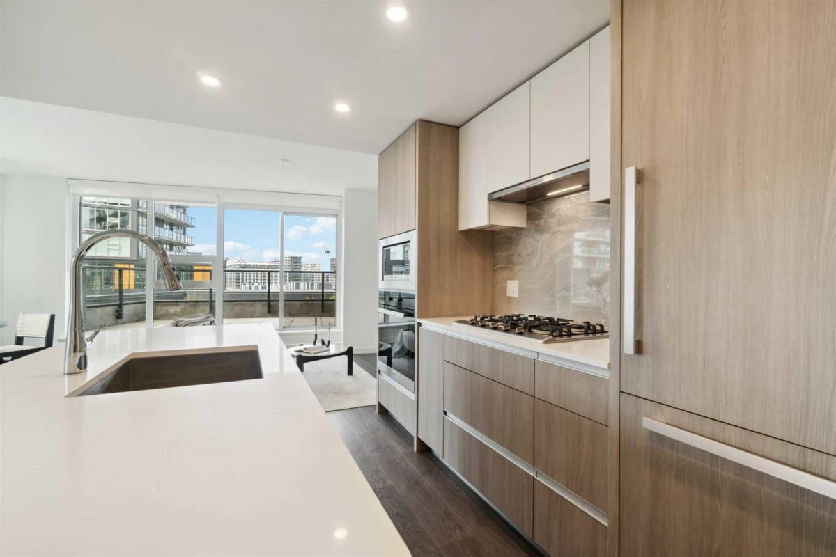 Experience elevated urban living at ONE PARK, a meticulously designed 2-bedroom, 2-bathroom home boasting breathtaking city and mountain views. With airy 8'6" ceilings, premium Miele appliances, sleek quartz countertops, and durable engineered laminate flooring throughout, this residence blends luxury with comfort. Indulge in an array of top-tier amenities, including a fully equipped gym, yoga studio, resident lounge, sauna, and children's playground. Nestled in the heart of Richmond, you're just steps from the SkyTrain, Richmond Centre, Minoru Park, top schools, and vibrant dining options-offering unparalleled convenience and an exceptional lifestyle!