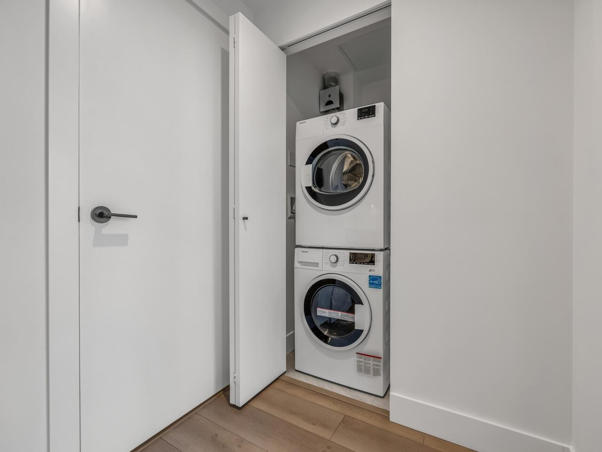 Welcome to a modern 1-bedroom home at Hamilton by MOSAIC ! This home shines with a bright and stylish interior, featuring sleek contemporary flat panel cabinetry, elegant quartz countertops, stainless steel appliances and laminate flooring. Prime SFU location : just a short walk away from shops, restaurants, schools, childcare and all the amenities at UniverCity, offering a convenient and vibrant living. Surrounded by Burnaby Mountain Conservation Area with scenic trails for hiking and biking. BONUS: 1 parking stall & 1 locker. Open House: Dec 21 (Sun) 2-4 pm.