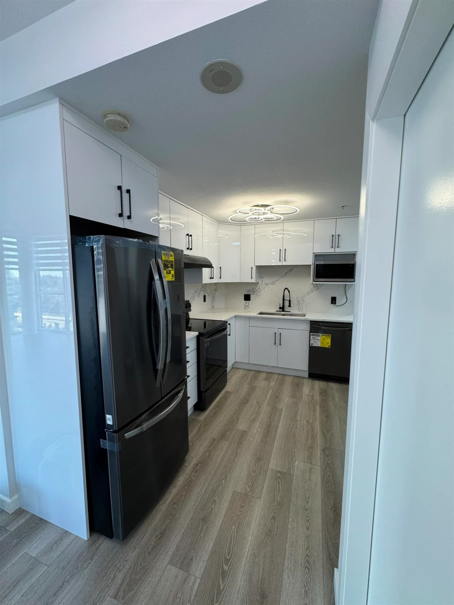 Bright corner 2 bed/ 2 bath - Centrally located within a "golden triangle" of amenities: 1-TRANSIT: Steps to Canada Line,2-SHOPPING:steps to Richmond Centre Mall,3-EDUCATION- Close proximity to Kwantlen Polytechnic University(KPU) - makes this a "CAR-LITE" lifestyle. FULLY RENOVATED in December 2025- new floors, new paint, new kitchen, new bathrooms, new faucets, new lighting, motorized window coverings. Features large South East facing FLOOR TO CEILING WINDOWS to welcome that morning sunrise.