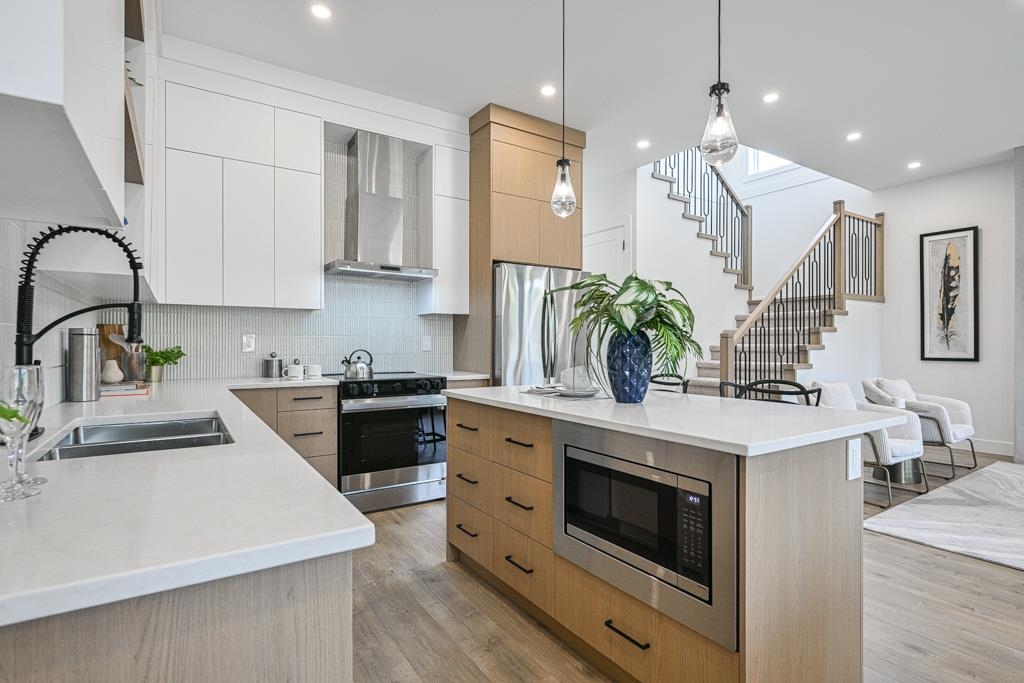 Brand new 1/2 duplex in sought-after Canterbury Heights with NO STRATA FEES and a 2-bedroom LEGAL SUITE! Beautiful corner lot with a VIEW, walking distance to Gray Elementary and Sands Secondary. Main floor offers a bright open-concept living area with gas fireplace, stylish kitchen, back patio, plus a handy office/den and powder room. Upstairs: 3 generous bedrooms including a spacious primary with ensuite and another full bath. Downstairs: self-contained 2-bed legal suite with its own laundry. Central A/C with heat pump and a great yard for kids, pets, or BBQs. Neighbouring unit also available!