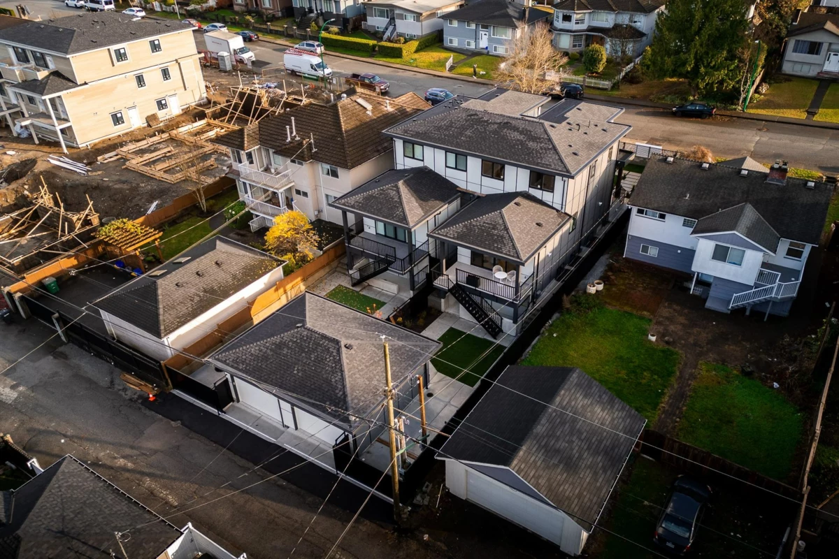 Welcome to this custom 3 level 1/2 duplex nestled on a quiet street in East Burnaby! This 7 Bedroom, 7 Bathroom, 3102sqft home is beautifully designed featuring 10ft ceilings on the main floor. The modern kitchen offers gas cooking, and a large island perfect for entertaining. The open concept dining and living areas are enhanced by large sliding doors leading to your covered deck. A flexible main floor bedroom/office with ensuite as well as a powder room add convenience. Upstairs, you'll find 3 spacious bedrooms each with its own ensuite. STAIRS CONNECTING MAIN FLOOR AND BASEMENT OPTION FOR 2 BEDROOM OR 3 BEDROOM suite as a mortgage helper. High quality finishing throughout including European tiles and engineered hardwood & designer lighting. Open House Sat Jan 31st & Sun Feb 1st 2-4pm.
