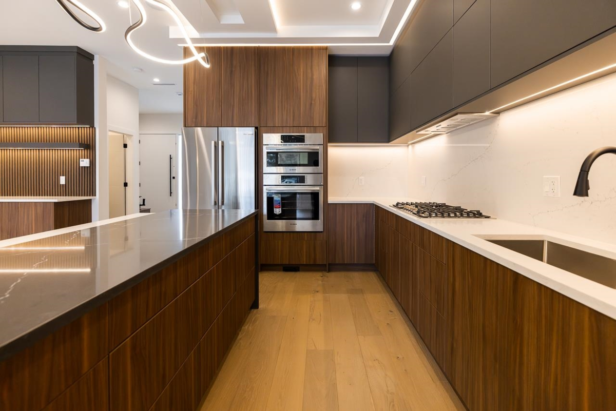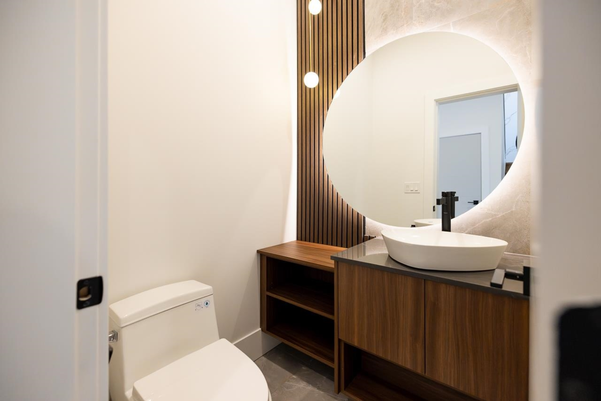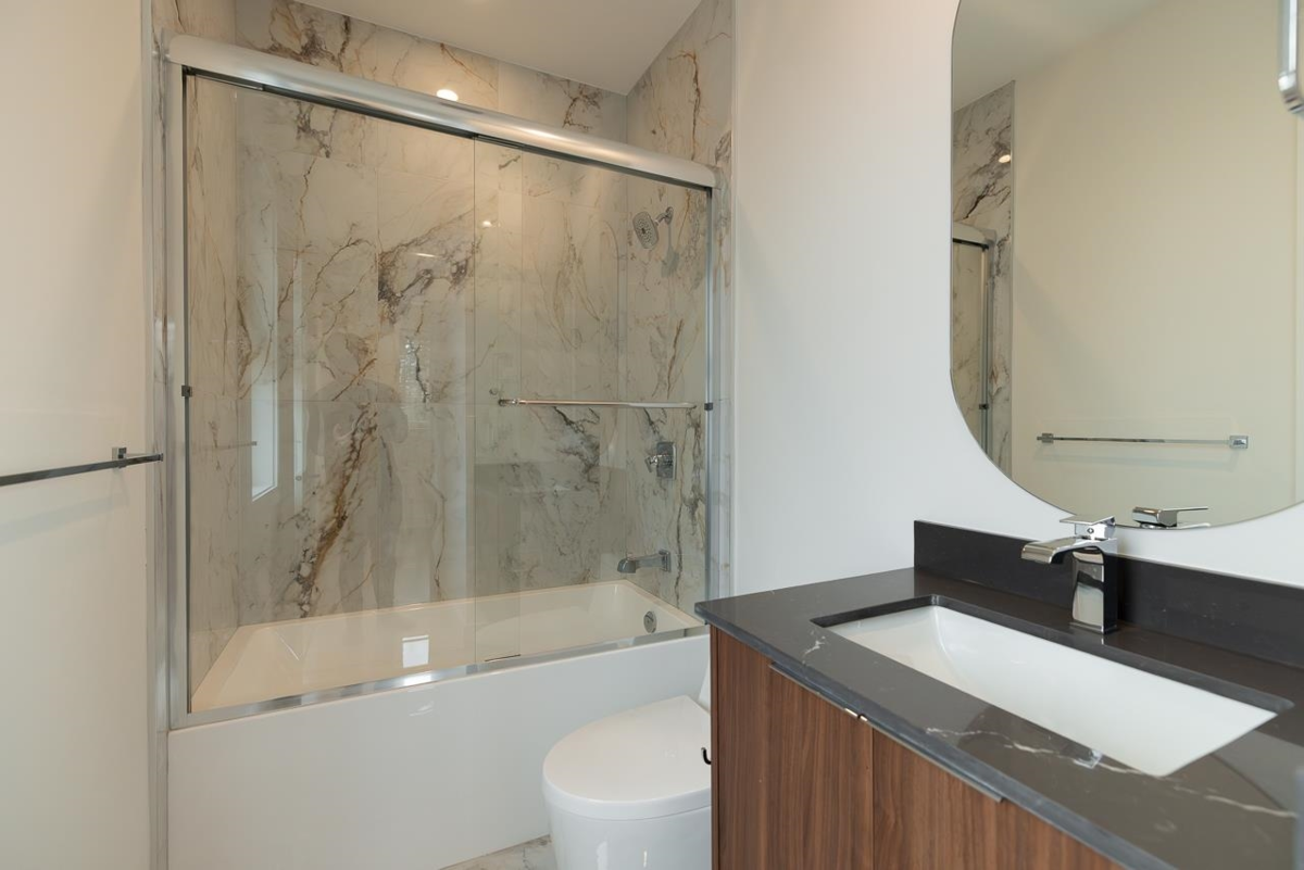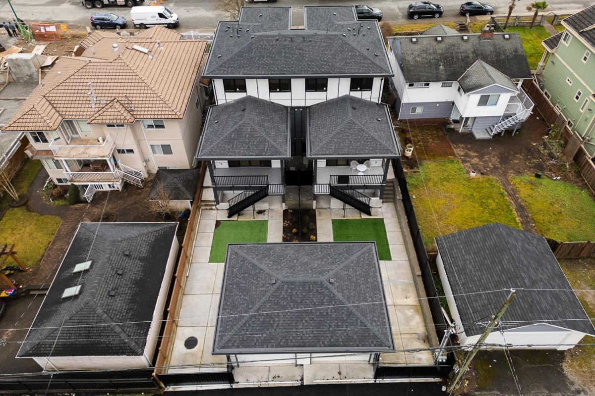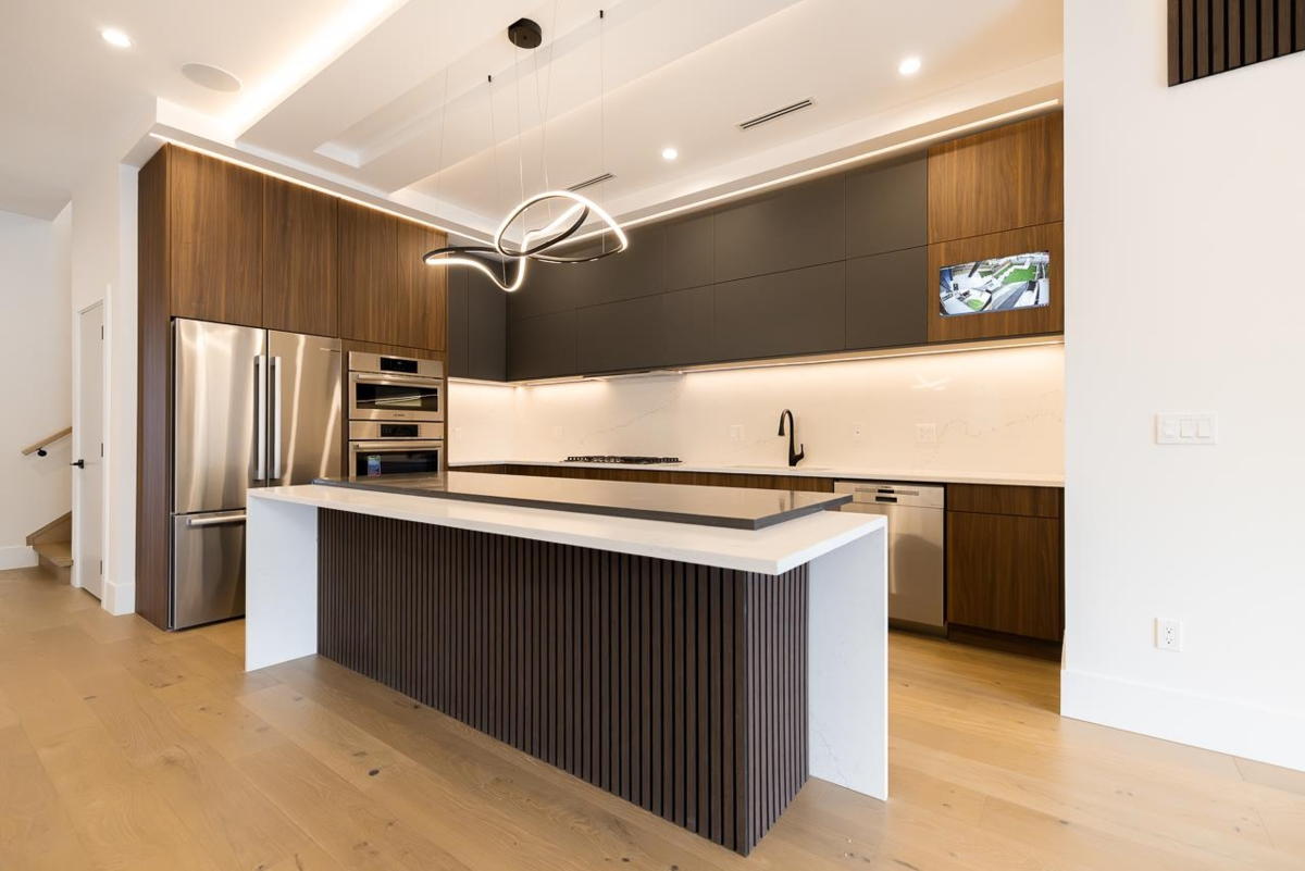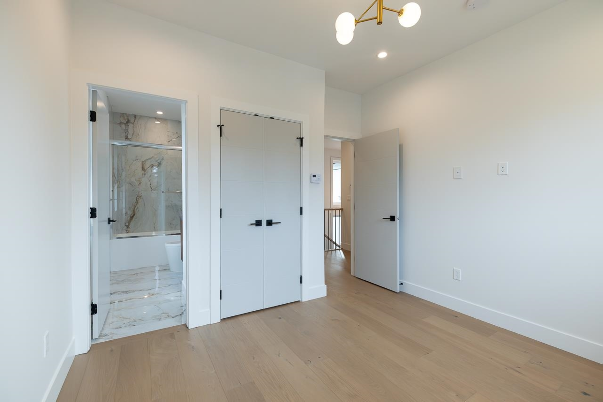 Welcome to this custom 3 level 1/2 duplex nestled on a quiet street in East Burnaby. This 7 bedroom, 7 bathroom, 3102sqft home is beautifully designed featuring 10ft ceilings on the main floor. The modern kitchen offers gas cooking, and a large island perfect for entertaining. The open concept dining and living areas are enhanced by large sliding doors leading to your covered deck. A flexible main floor bedroom/office with ensuite as well as a 2 pc powder room add convenience. Upstairs, you'll find 3 spacious bedrooms each with its own ensuite. STAIRS CONNECTING MAIN FLOOR AND BASEMENT. OPTION FOR 2 BEDROOM OR 3 BEDROOM suite as a mortgage helper. High quality finishing throughout including Italian tiles, engineered hardwood and designer lighting. OPEN HOUSE SAT & SUN JAN 17 & 18TH 2-4PM