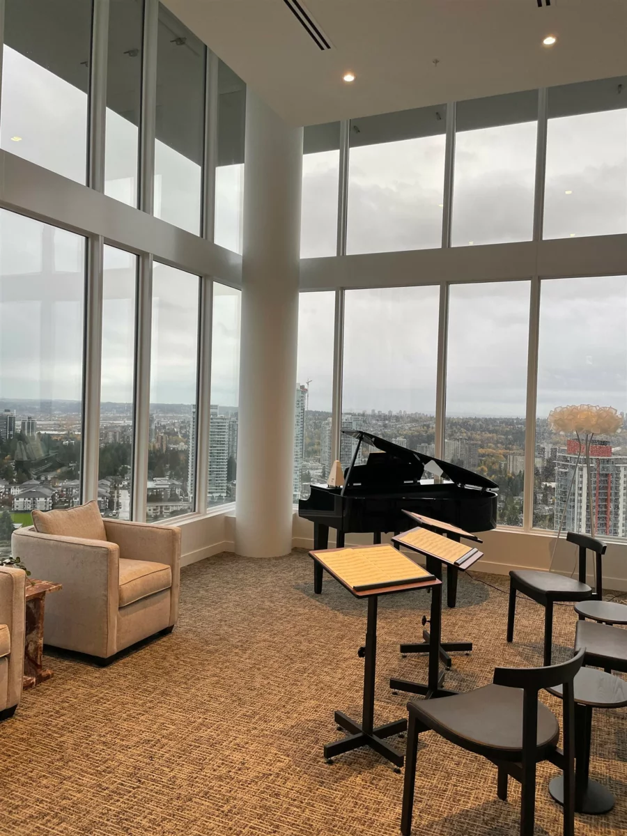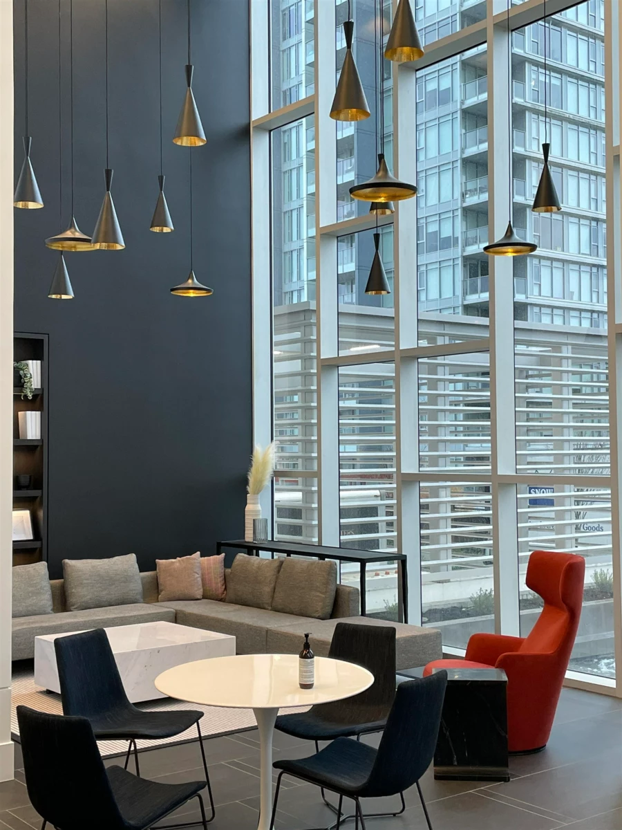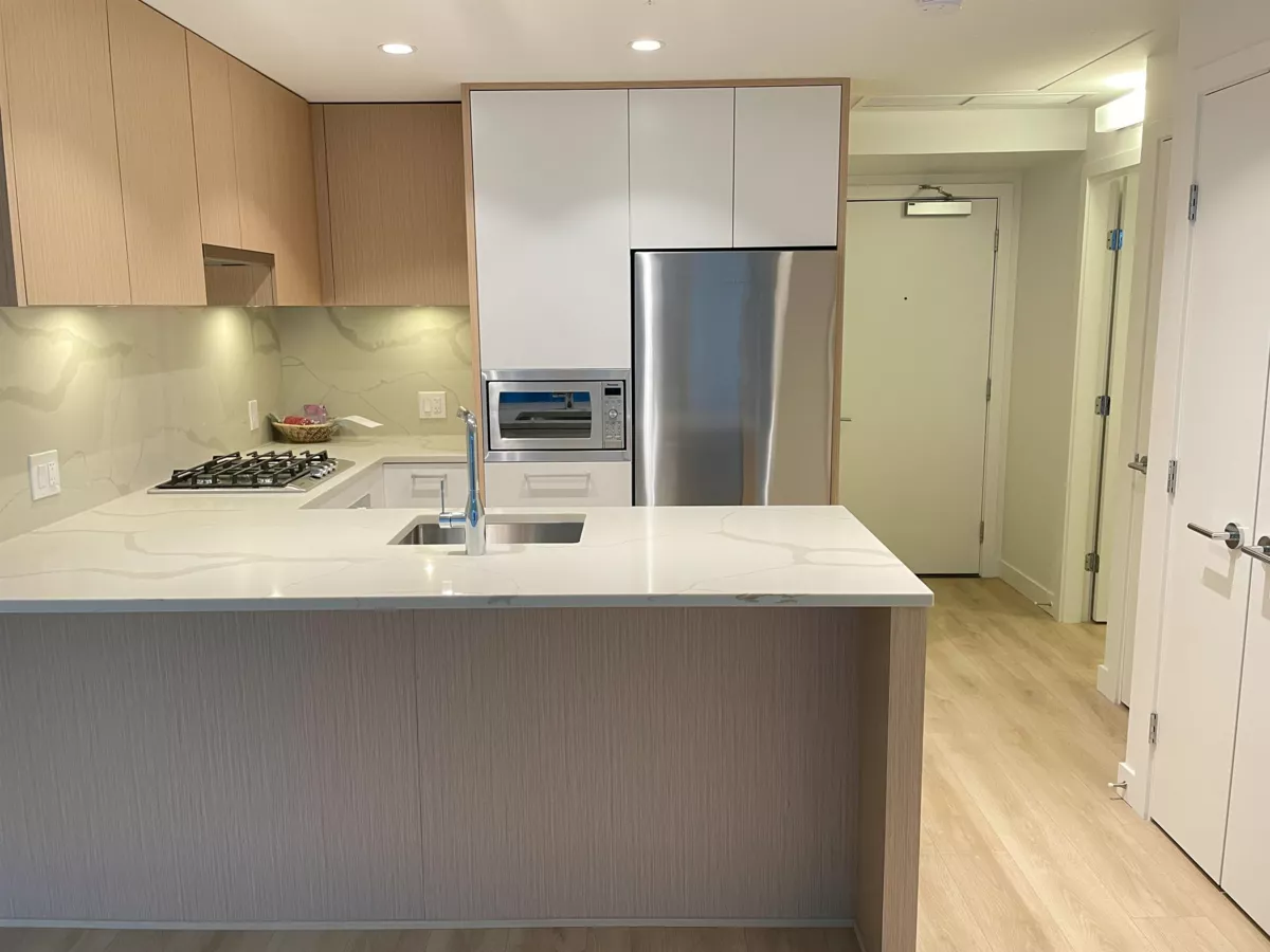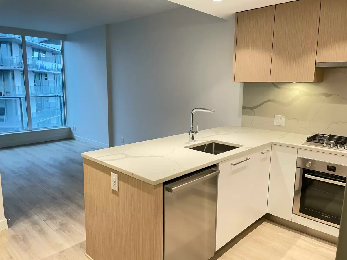 Welcome to Clark & Como.This well-designed home offers an oversized patio, 9-foot ceilings, and a modern U-shape kitchen with integrated cabinetry, high-end Bosch & Fisher & Paykel stainless steel appliances, gas cooktop, and garburator. Heating and A/C are controlled by a smart LG thermostate. The spa-inspired bathroom features elegant finishes and under-cabinet lighting. Includes 1 parking stall and 1 storage locker. Enjoy over 20,000 sq.ft. of amenities, with 7,600 sq.ft. of outdoor space on the mezzanine level including a basketball court and dog park. The 28th floor offers a fully equipped gym, sauna, indoor ball court, yoga/table tennis room, music& karaoke room, and two guest suites. Open House January 31 : 1-3 pm .