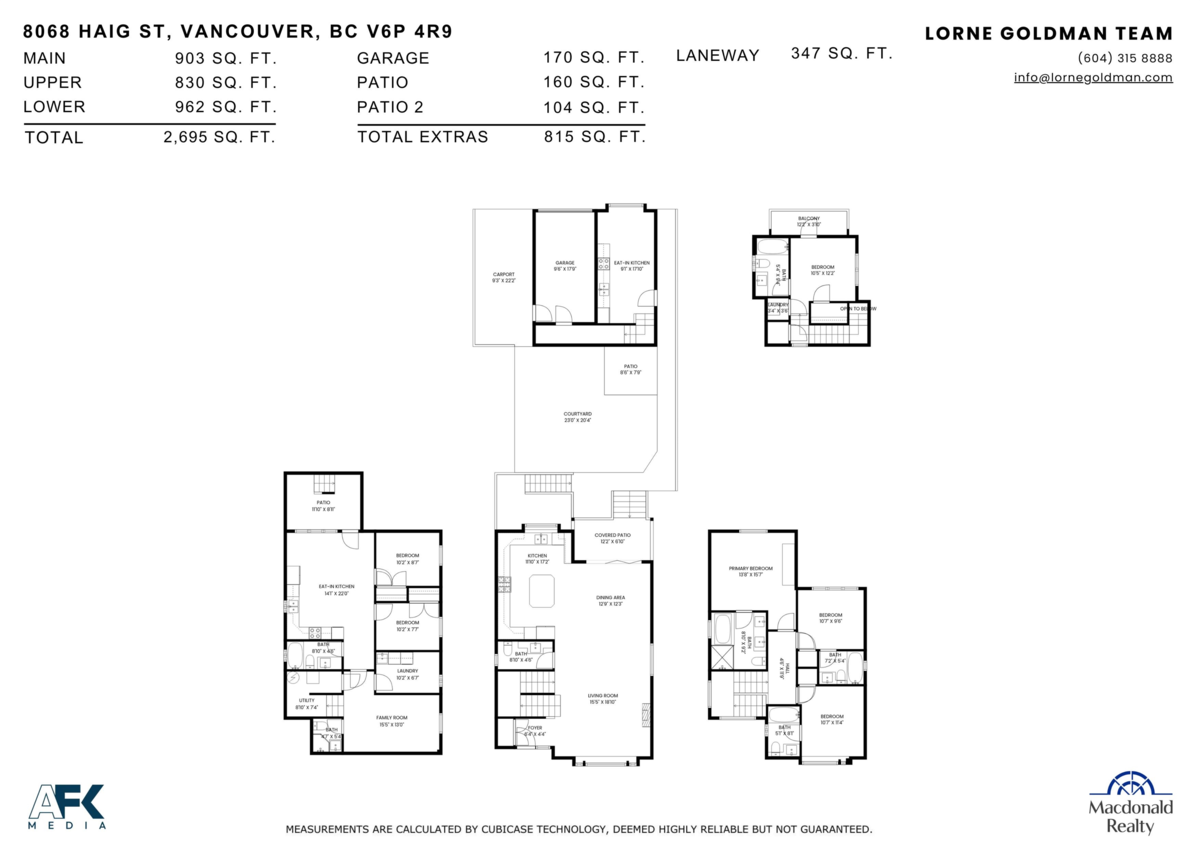 Experience elevated living in this elegant Westside home featuring 10 ft ceilings and a bright open concept design. The chef inspired kitchen is equipped with premium appliances and generous storage, flowing seamlessly to a rear deck through accordion doors, perfect for entertaining. Upstairs offers three ensuite bedrooms, including a luxurious primary suite with a steam shower and soaker tub. The lower level includes a rec room, full bath, laundry, and a legal two bedroom suite for added income. A separate one bedroom laneway home boosts rental potential. Built for comfort and efficiency with A/C, HRV, high-efficiency furnace, and hot water tank, + remaining new home warranty. Includes garage and open parking. Prime location near top schools, transit, shopping, UBC, YVR, & Richmond Centre