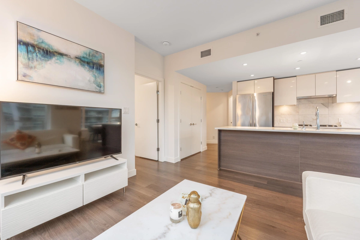 Discover elevated riverfront living at ONE TOWN CENTRE by WesGroup in Vancouver’s vibrant River District. This air-conditioned 2-bed 2-bath corner unit offers 9-foot ceilings, an open-concept kitchen with Jenn-Air stainless steel appliances, quartz countertops, and a large island, on-demand hot water, and a Nest thermostat. Enjoy access to the 14,000+ sf Club Central with gym, indoor pool, hot tub, steam & sauna, basketball court and more. Steps to Save-on-Foods, shops, dining, and riverside trails, with easy access to Richmond, Metrotown, Burnaby and YVR. Includes 1 parking stall and 1 locker. Open House Jan.24 2026 (Sat) 2-4pm.