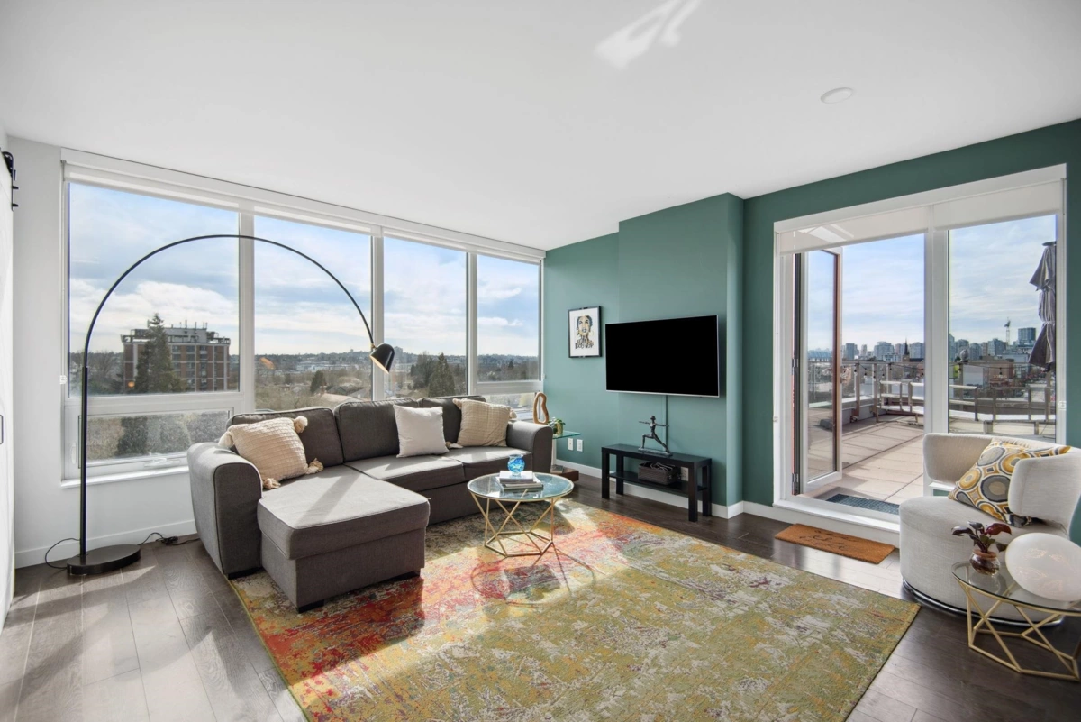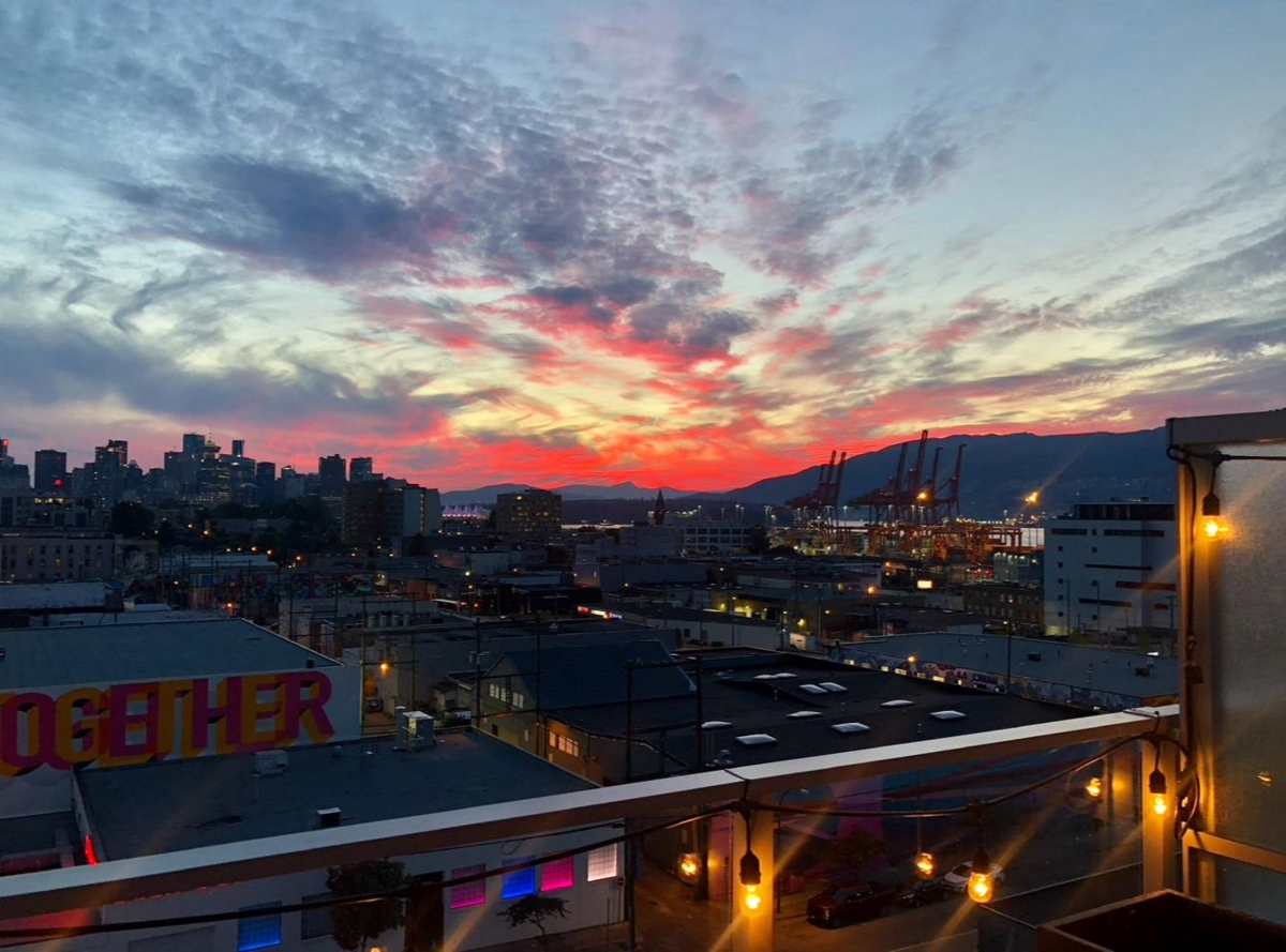 COVETED 557 SQ FT PRIVATE VIEW TERRACE! Corner suite home boasts a huge southwest patio that offers stunning views of the city skyline, sunset, lights, mountains + water! This outdoor space is ideal for hosting gatherings but also a private oasis to soak in the sunset–truly an urban sanctuary. Inside, this 2 bed, 1 bath is thoughtfully laid out on the SW corner, optimizing natural light, large flex space, separated bedrooms for privacy. Contemporary kitchen w/stainless steel appliances, quartz countertops + a functional island for seating. Strathcona Village is a 7yo, well run, concrete building w/ warranty. Steps from Strathcona Beer Company, cafes, parks, schools, 5 min to Commercial + Gastown. Vibrant yet upcoming area! This huge patio is a rare opportunity - reach out to view!