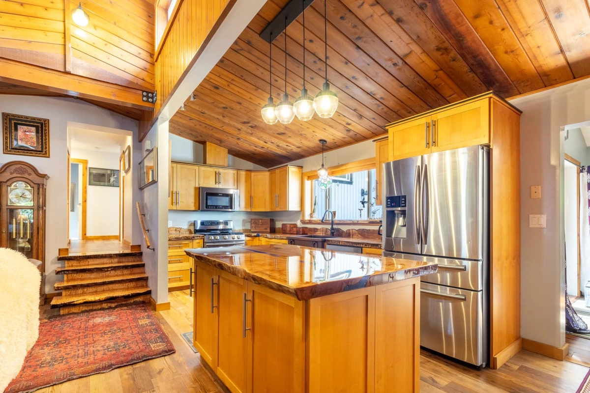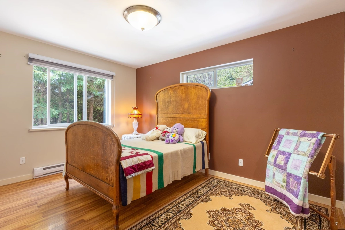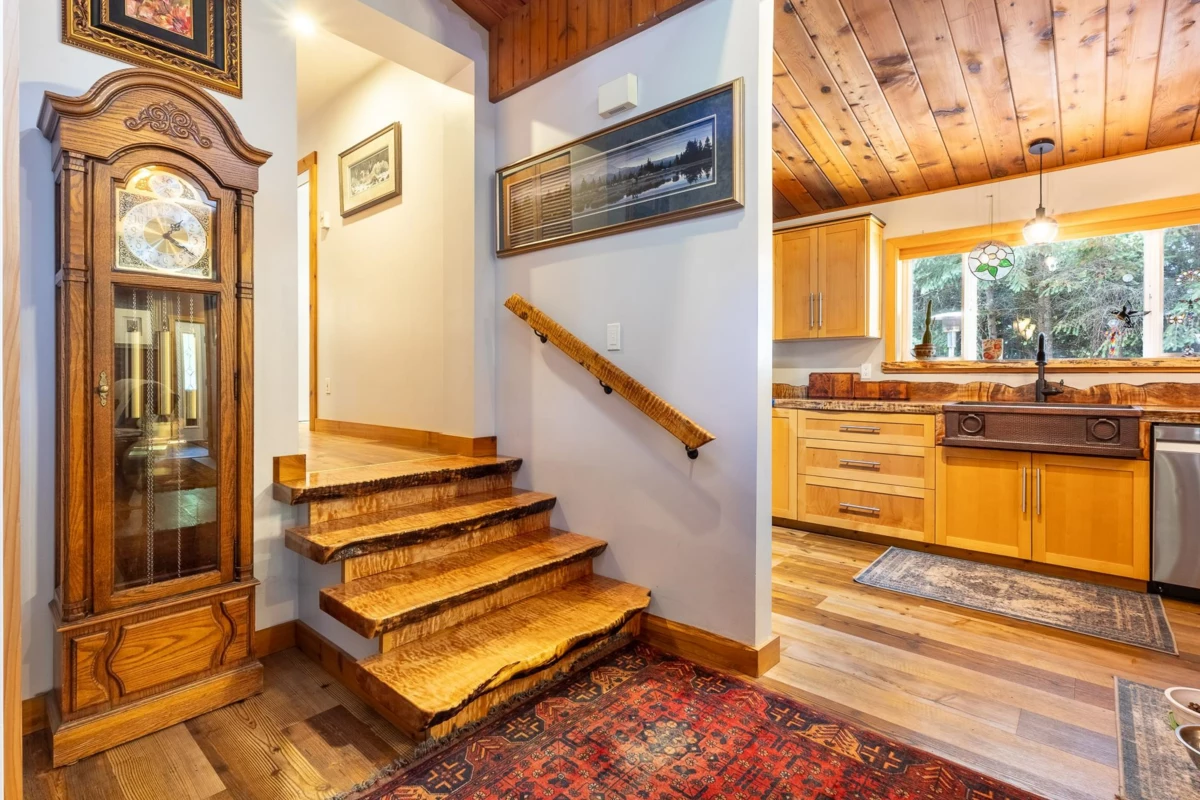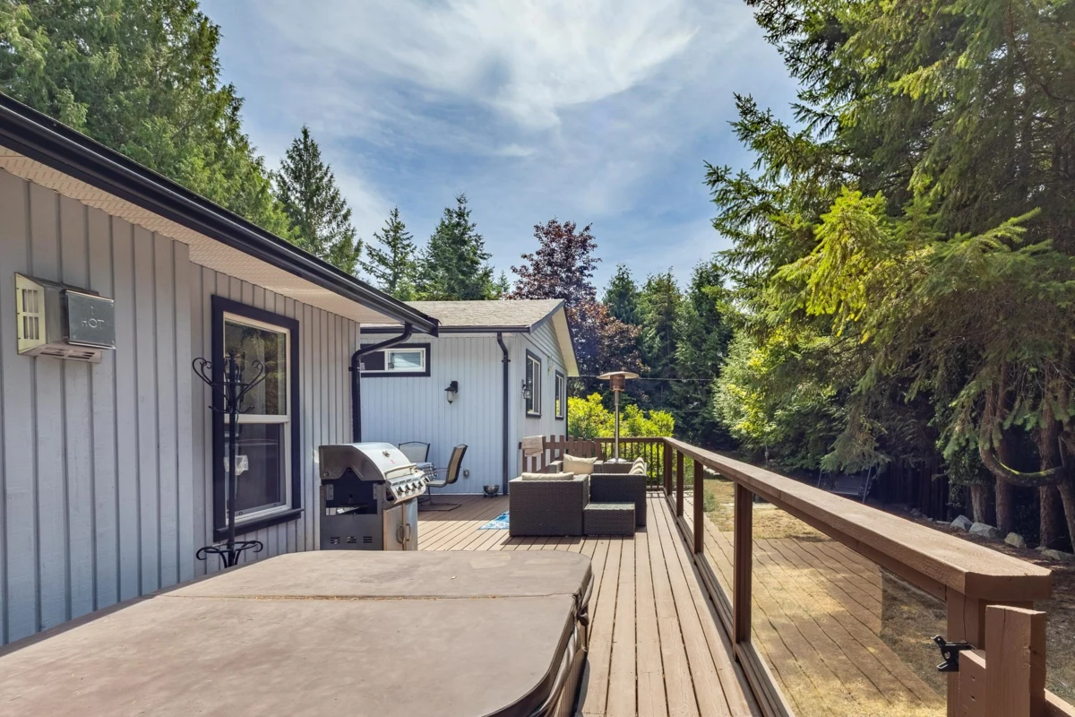 Tucked away on a fully private, flat ½-acre lot, this spacious 3–4 bedroom rancher offers peace, comfort, and room to grow. Inside, you'll find beautiful handcrafted custom wood finishes, such as live edge kitchen island countertop and staircase, 3 cozy gas fireplaces, and in-floor heat in the bathrooms. The versatile lower level is perfect for guests, a home office, studio or media room. Step outside to a spacious and private sunny deck with hot tub—ideal for entertaining. A detached double garage offers parking, workshop and storage space, and RV/boat parking adds convenience. Halfmoon Bay elementary school and scenic Welcome Woods forest trails are steps away. Sargeant Bay Park and beach are also close by. A rare find in a fantastic, family-friendly location!