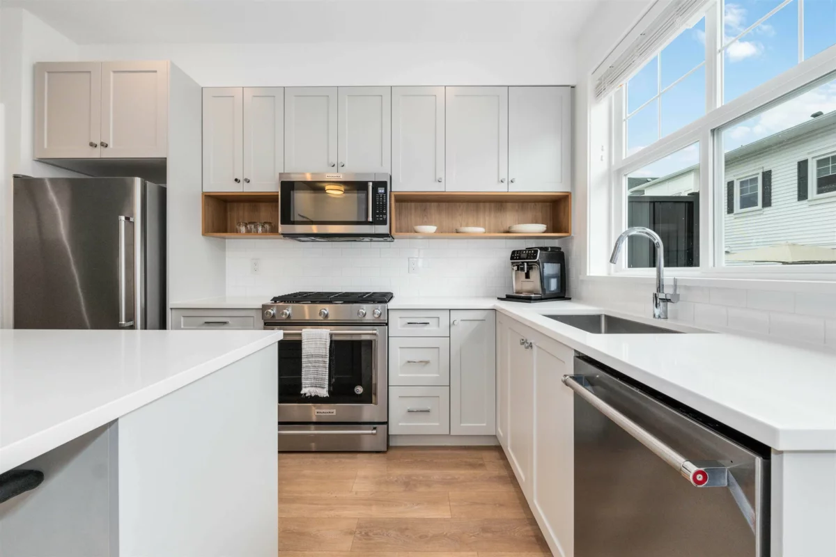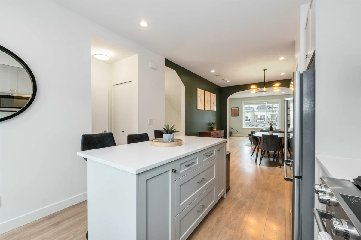 WOW! GORGEOUS AND MODERN 3 bdrm, 2.5 bath townhome in Roundhouse, a picture-perfect community conveniently located in the Aberdeen/Aldergrove area, only minutes to Langley and Abbotsford. Open and bright layout on main, with chef-inspired kitchen w/ island and sitting bar, roomy dining area, and large living rm, with plenty of room for entertaining. 3 bdrms up, incl primary bdrm w/ walk-through closet and 4 pc ensuite w/ shower and dual vanity. 2 more versatile bdrms and laundry up. MASSIVE double/tandem garage and 3rd parking on driveway. Features beautiful kitchen, w/ shaker-style cabinets, quartz counters and upgraded KitchenAid appliance package w/ gas range and BI microwave, laminate floors, quartz in bathrooms. Gas bbq hookup on back deck, fully fenced backyard. THE COMPLETE PACKAGE!