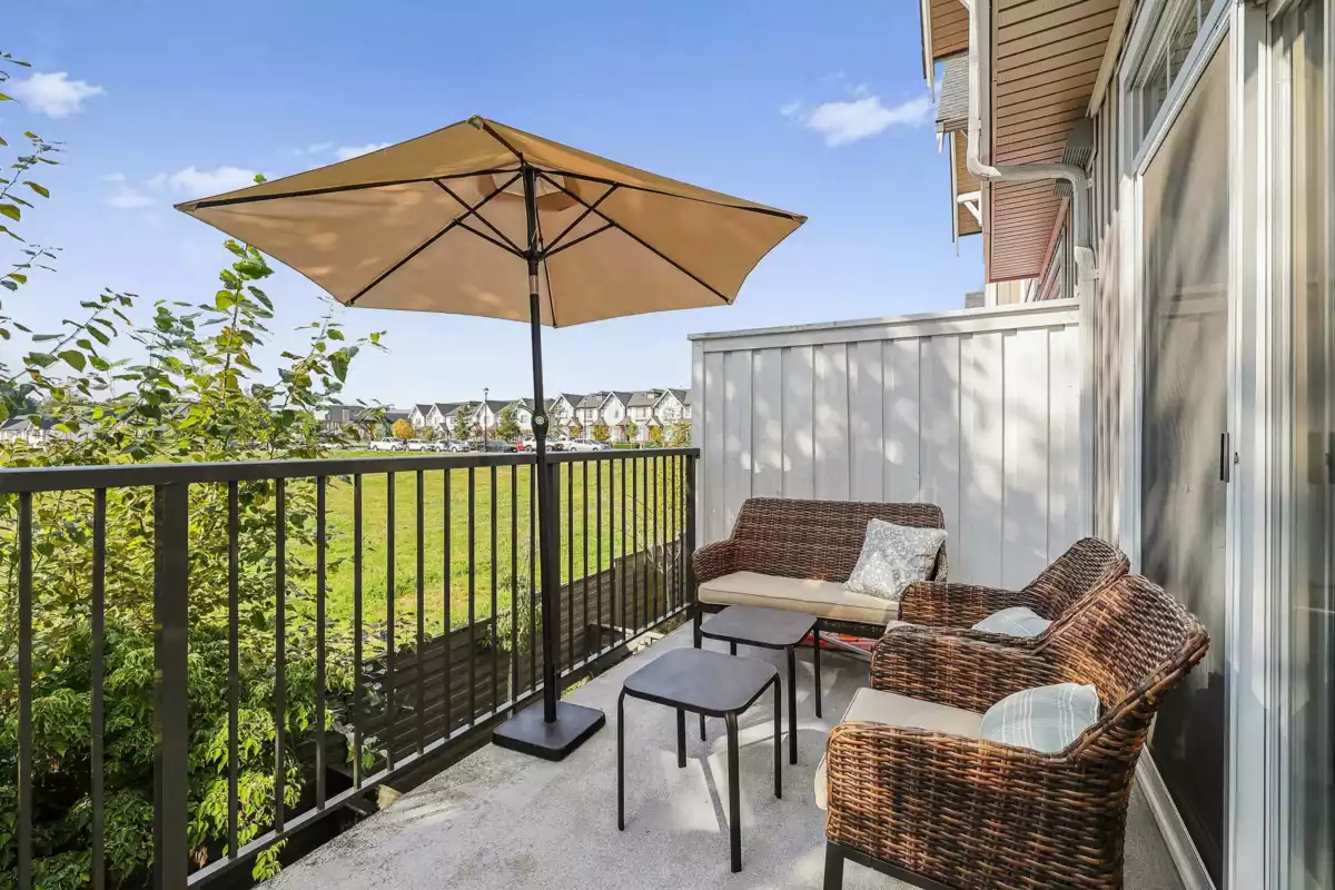 Welcome home at Harvest at Westerleigh by Polygon! This 3bdrm, 2bthrm townhome blends modern comfort w/ family-friendly living in 1 of the area’s most desirable communities. Built by renowned local builder Polygon, the home is part of a master-planned complex featuring award-winning amenities—including an outdoor swimming pool, lounge, hockey rink, theatre room, & more. Inside, you’ll love the open-concept main floor, highlighted by laminate flooring & thoughtful upgrades. A custom fireplace surround creates a warm focal point in the living area, while the full kitchen island & added shelving and cabinetry offer style & extra storage. Upstairs, find 3 generously sized bdrms, perfect for families or guests. Step outside to a private backyard.