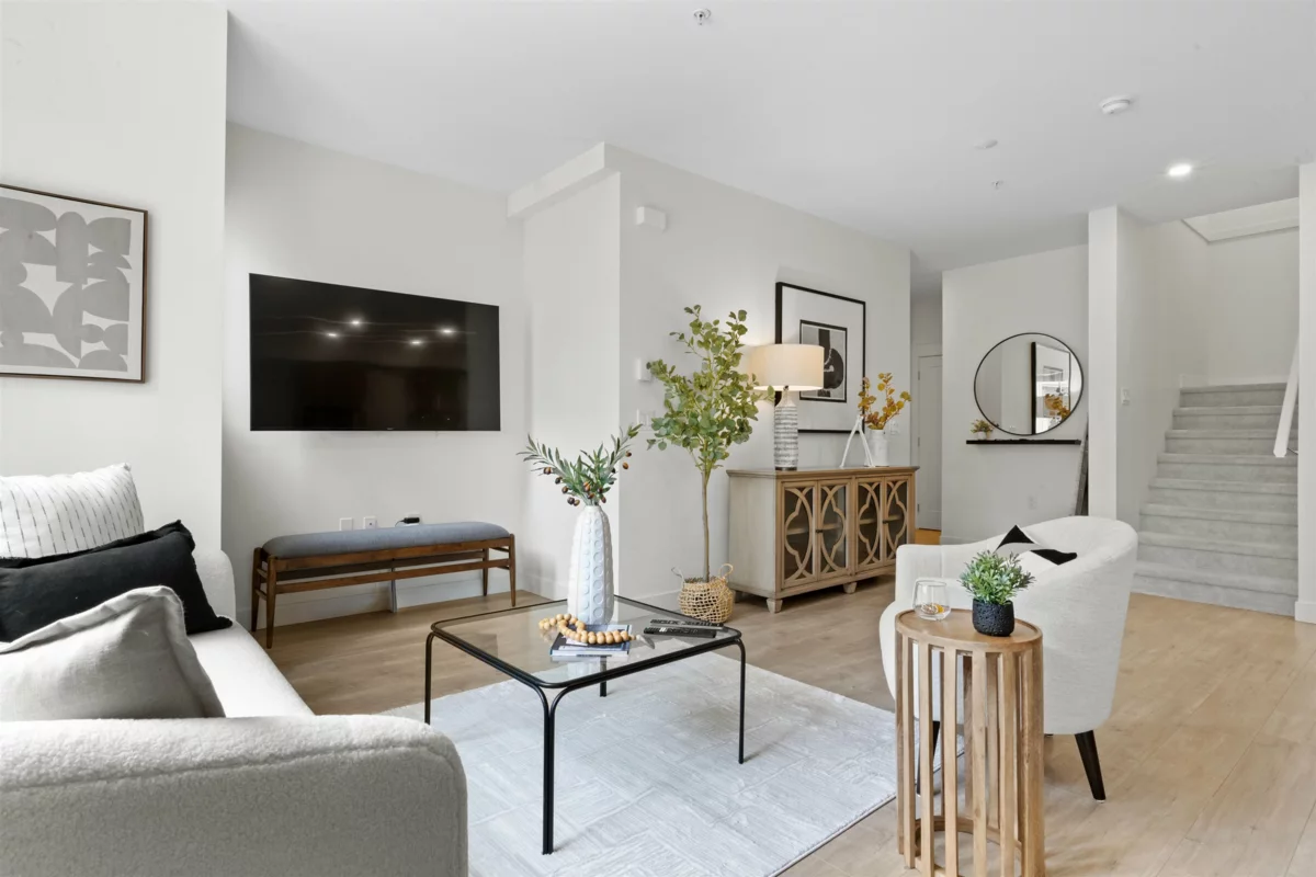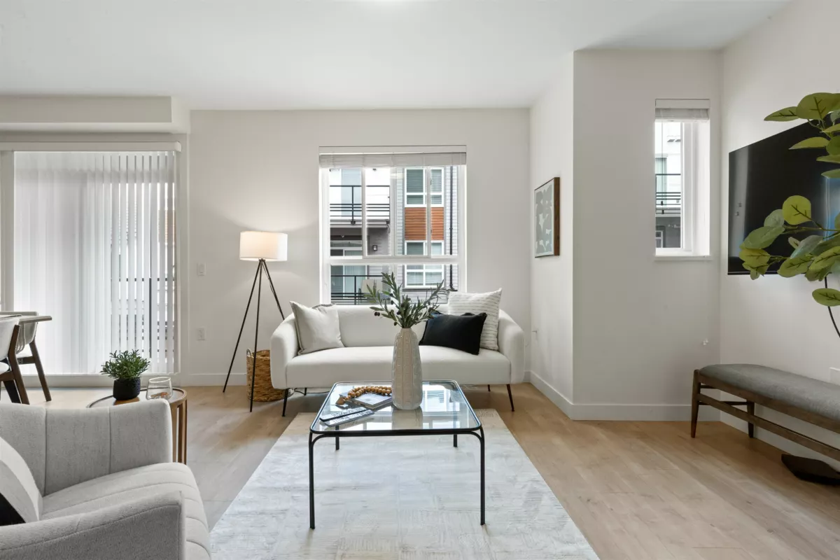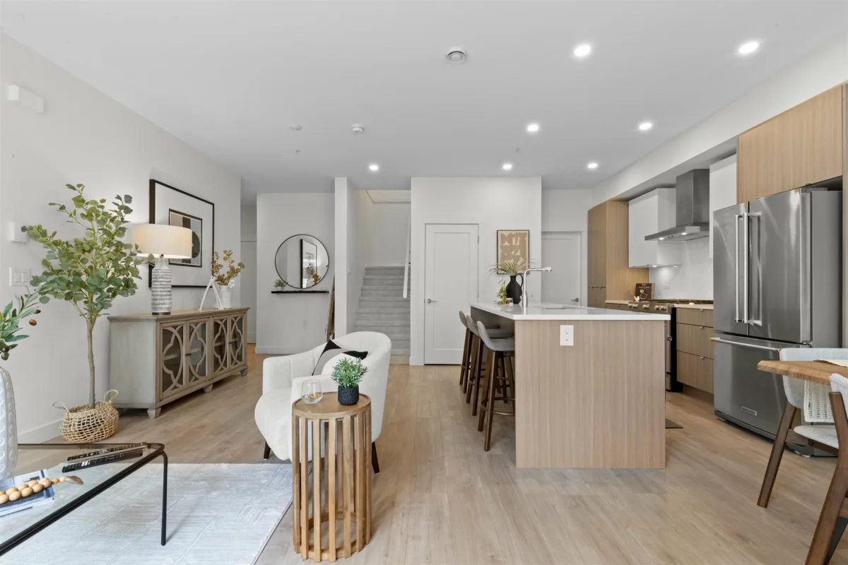 Welcome HOME! This beautifully crafted 3 bedroom, 3 bathroom townhouse blends modern elegance with everyday comfort. The open-concept main level showcases a stylish gourmet kitchen w/ quartz counters, s/s appliances & a generous island perfect for gatherings. Enjoy seamless flow into the bright living & dining spaces, ideal for relaxing nights or entertaining guests. Upstairs features 3 well-sized bedrooms, including a peaceful primary suite complete with a walk-in closet. A spacious private rooftop patio offers the perfect setting for coffee, al fresco meals, or evening lounging. Amenities include a gym, playground and a social lounge. Easy access to Highway, Langley Events Centre, shops, dining, Willoughby Town Centre & more!