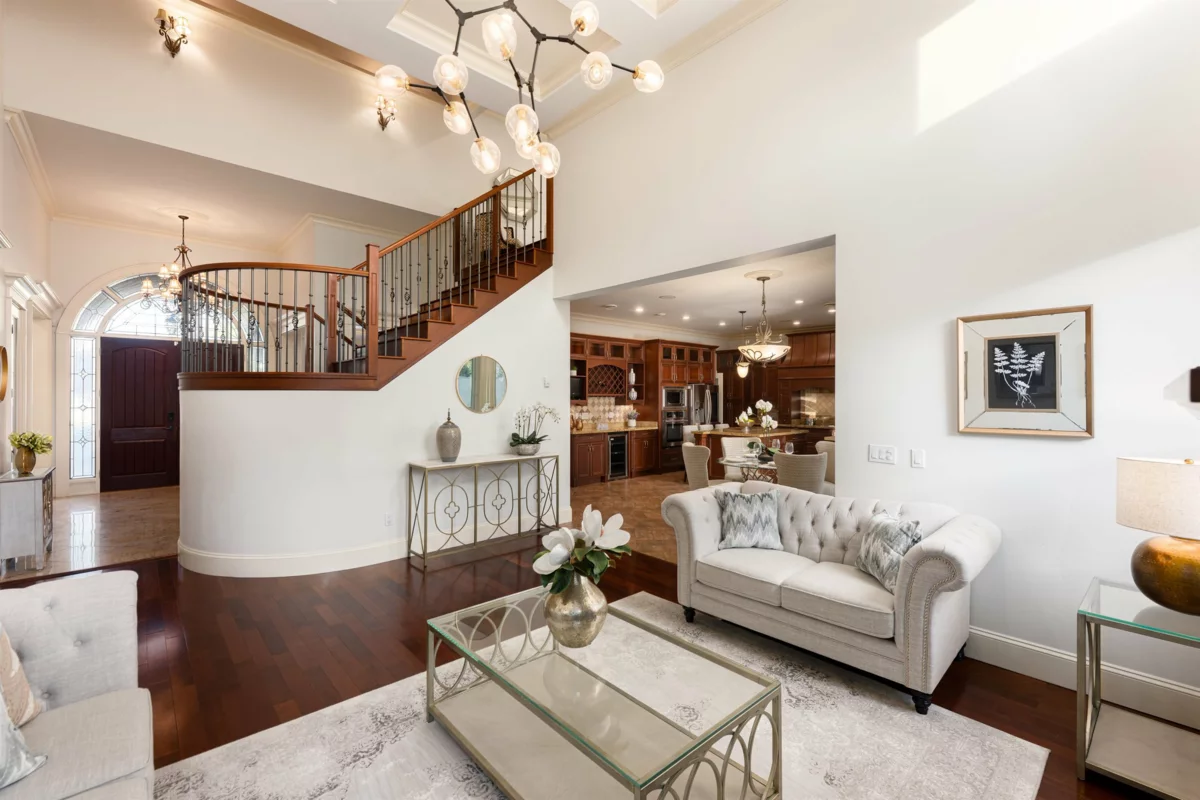 A stunning DAKOTA custom-built residence showcasing timeless European craftsmanship. This elegant home offers 4 bedrooms, 5 bathrooms, granite finishes throughout, soaring ceilings, a dramatic 20ft open-to-above staircase, and a bright and spacious family room. Enjoy modern living with Google Home ambience control and premium appliances including a Samsung smart fridge and smart laundry set. The gated driveway leads to a 3-car garage, while the south-facing backyard features a 300 sq. ft. covered outdoor lounge complete with fireplace and built-in speakers-perfect for year-round entertaining. Located within walking distance to the Richlea Square Shopping Centre and sought-after catchments of McRoberts Secondary and Lee Elementary.