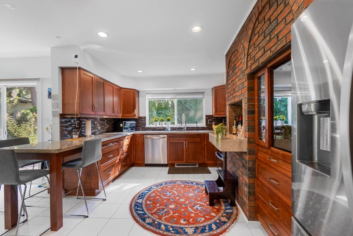 Welcome to this warm and inviting home in a family-friendly North Vancouver neighbourhood. The bright kitchen opens onto a spacious deck overlooking a large, level backyard – the perfect setting for quiet evenings or entertaining. The yard features mature fruit trees and plenty of room to play or garden. Inside, the home offers three bedrooms upstairs and a total of three and a half bathrooms, providing comfortable space for family living. A separate-entry in-law suite adds flexibility and potential for rental income. A double driveway provides convenient parking for multiple vehicles. This is a wonderful opportunity to enjoy a generous property with both indoor comfort and outdoor charm.