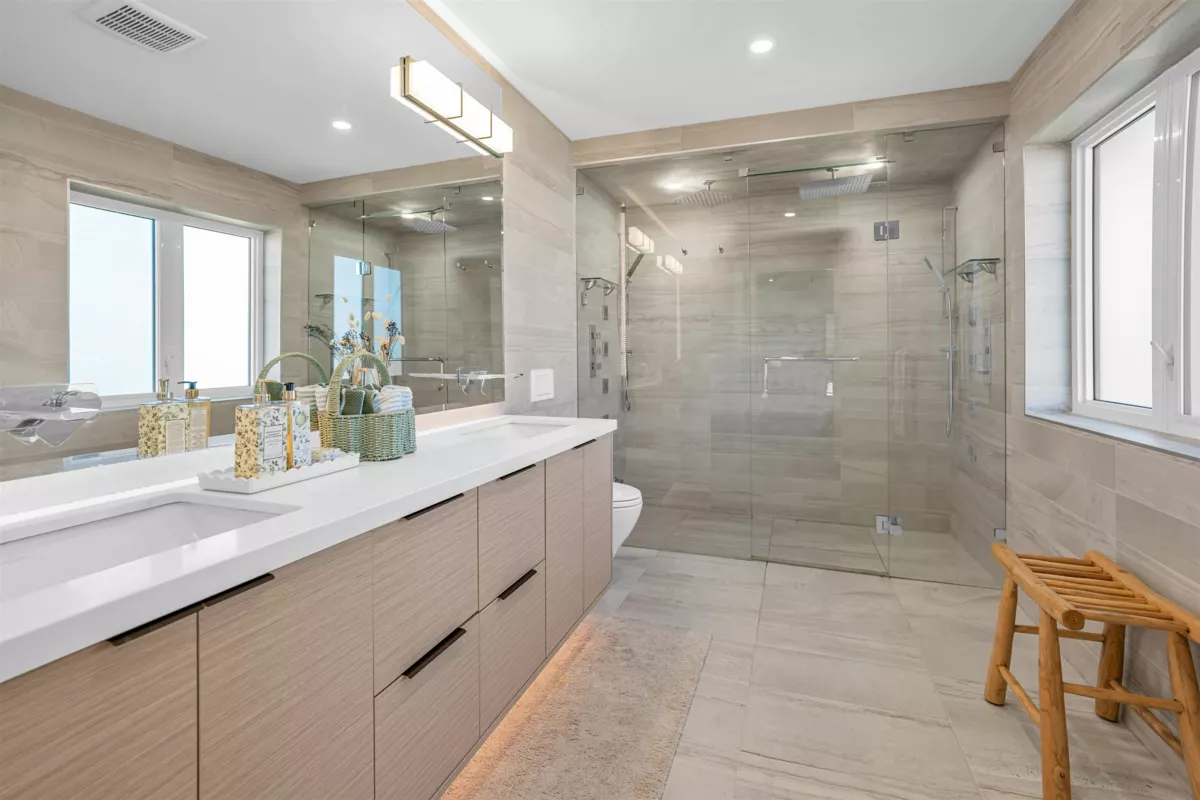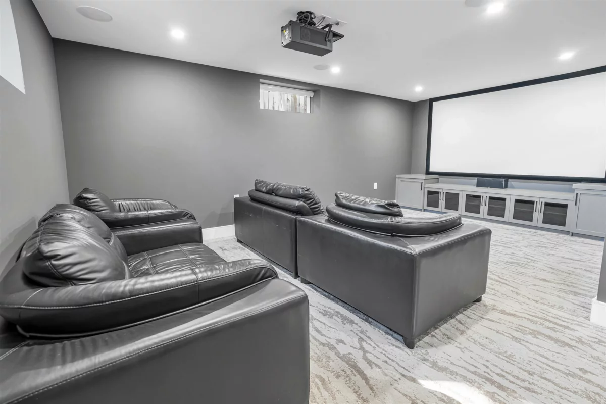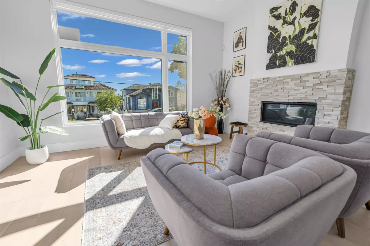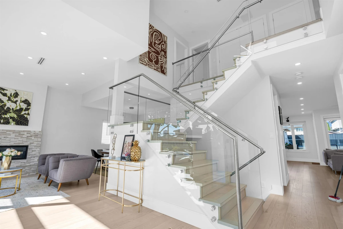 Extraordinary custom-built home offering over 4,500 sq.ft. of luxurious living space! Features 6 bedrooms, 6 bathrooms, potential for 8 bedrooms, and 3 kitchens including a 2-bedroom legal suite and soundproof media room. Exceptional craftsmanship with grand foyer, glass staircase, Miele appliances, and modern cabinets by Attractive Kitchen Cabinet Ltd. Family room opens to an entertainment-sized deck with outdoor fireplace. Includes radiant heat, A/C, HRV, central vacuum, Nest temperature control, EV charger ready, steam shower, custom built-ins, engineered hardwood, and imported tile.