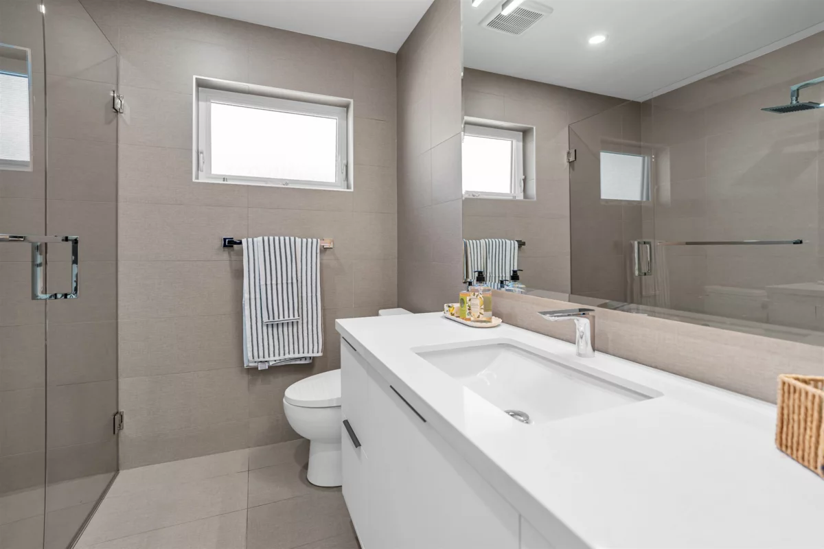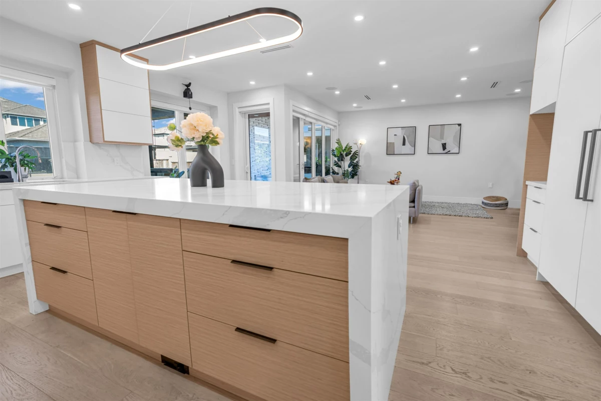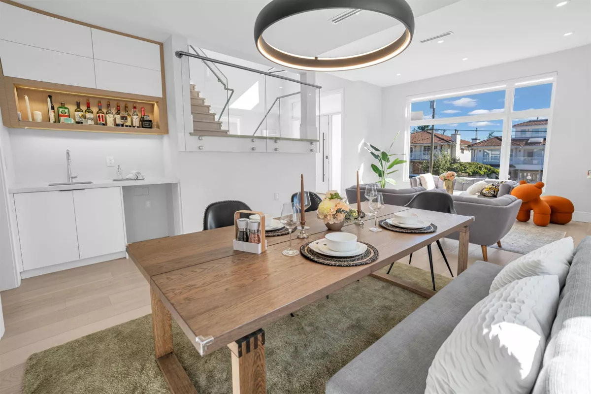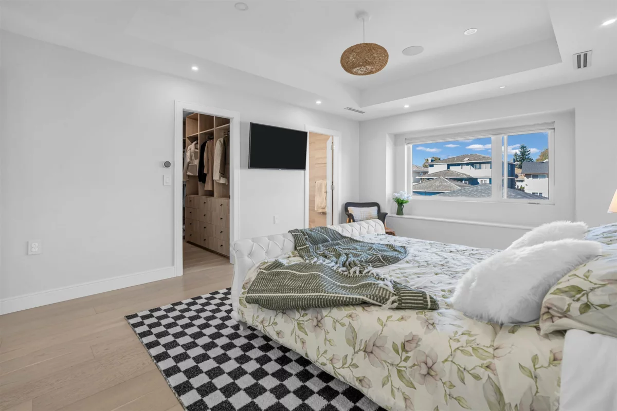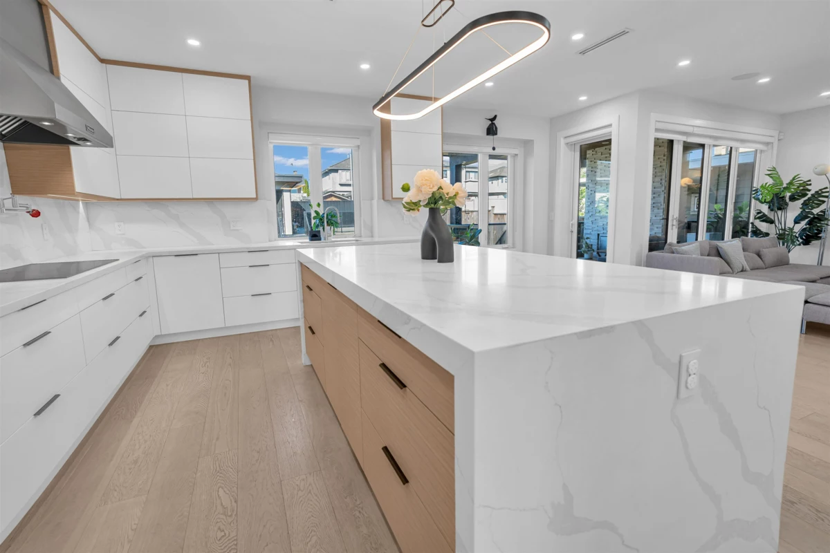 Extraordinary custom-built home offering over 4,500 sq.ft. of luxurious living space! Features 6 bedrooms, 6 bathrooms, potential for 8 bedrooms, and 3 kitchens including a 2-bedroom legal suite and soundproof media room. Exceptional craftsmanship with grand foyer, glass staircase, Miele appliances, and modern cabinets by Attractive Kitchen Cabinet Ltd. Family room opens to an entertainment-sized deck with outdoor fireplace. Includes radiant heat, A/C, HRV, central vacuum, Nest temperature control, EV charger ready, steam shower, custom built-ins, engineered hardwood, and imported tile.