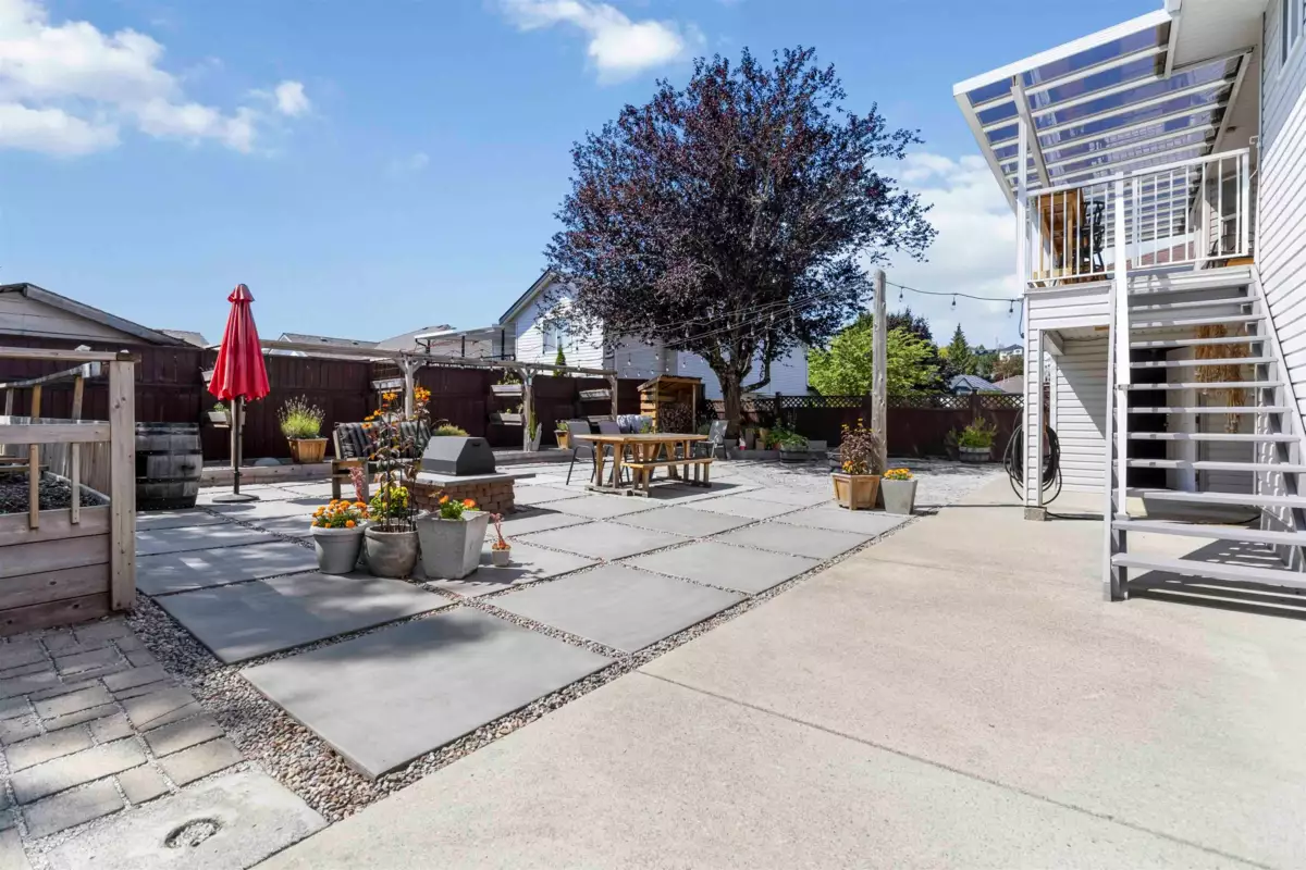 Easily suitable with basement suite rough-ins and separate entrance! This 5 bdrm, 3 bath, 2,600 sq.ft. home sits on a quiet cul-de-sac with numerous updates. The bright main floor features a living/dining area plus separate kitchen & family room. Upstairs offers 3 bdrms, including a spacious primary with walk-in closet & spa-like ensuite. Downstairs includes a den, large rec rm, 2 more bdrms, full bath & separate entry. Updates: roof (~6 yrs), newer furnace, HWT, CENTRAL A/C, renovated baths, updated fixtures & butcher-block counters. Enjoy a covered deck, flat low-maintenance backyard with drive-through access for toys, a wonderful patio, gardens & gas fire pit!