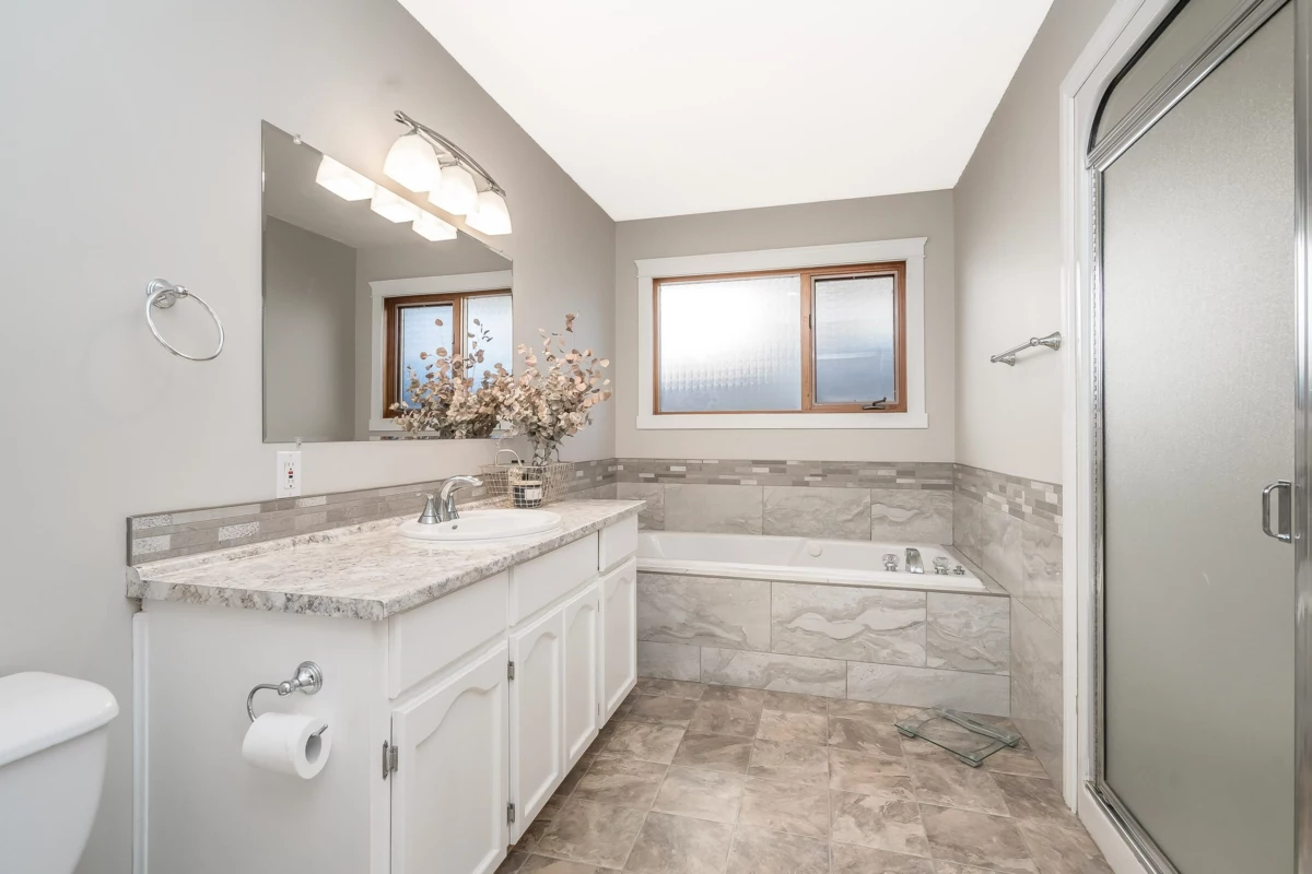 TWO homes in ONE! Attn large families - looking for a home that will accommodate 2 families? Need a mortgage helper? This level entry 5 bed, 3 full bath rancher with full bsmt has a level upper back yard with new back deck & level walkout bsmt w/side yard!! Almost fully renovated, 2 laundry, 2 bright open kitchens, surround windows S. facing heat protection. Parking for 10 cars, trailers/smaller RVs, newer roof, hot water tank, boiler, radiant heat up & down and 2 garages & door openers both w/ separate driveways!! 2 gas fireplace, built-in vacuum, skylights, 220 wiring, LED lighting, modern paint, newer trim doors, fence, appliances, Jacuzzi tub, sunroom, clean tidy! Perfect for multi family situation or care of an individual living w/disabilities. OPEN HOUSE SAT JAN 24 12-2
