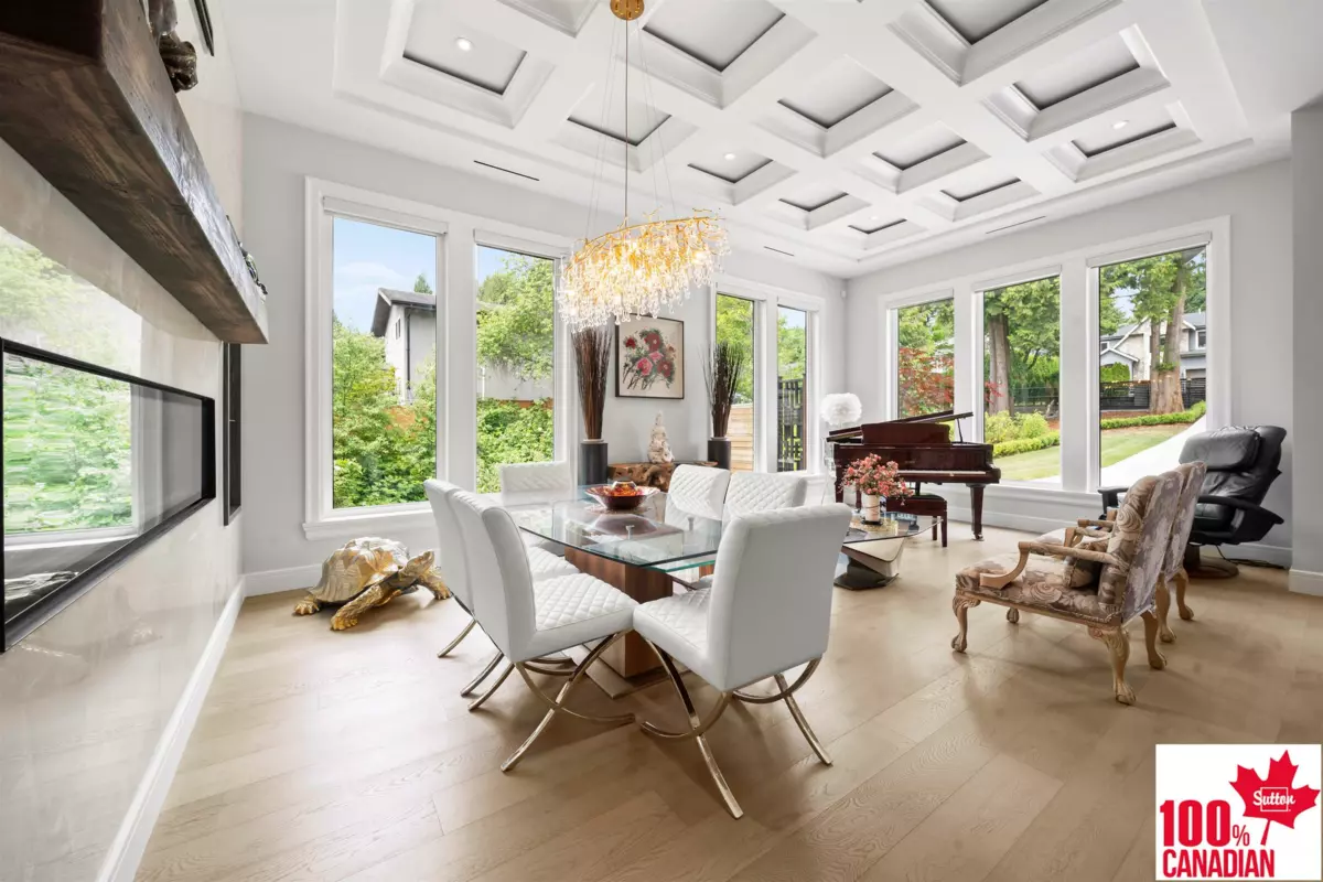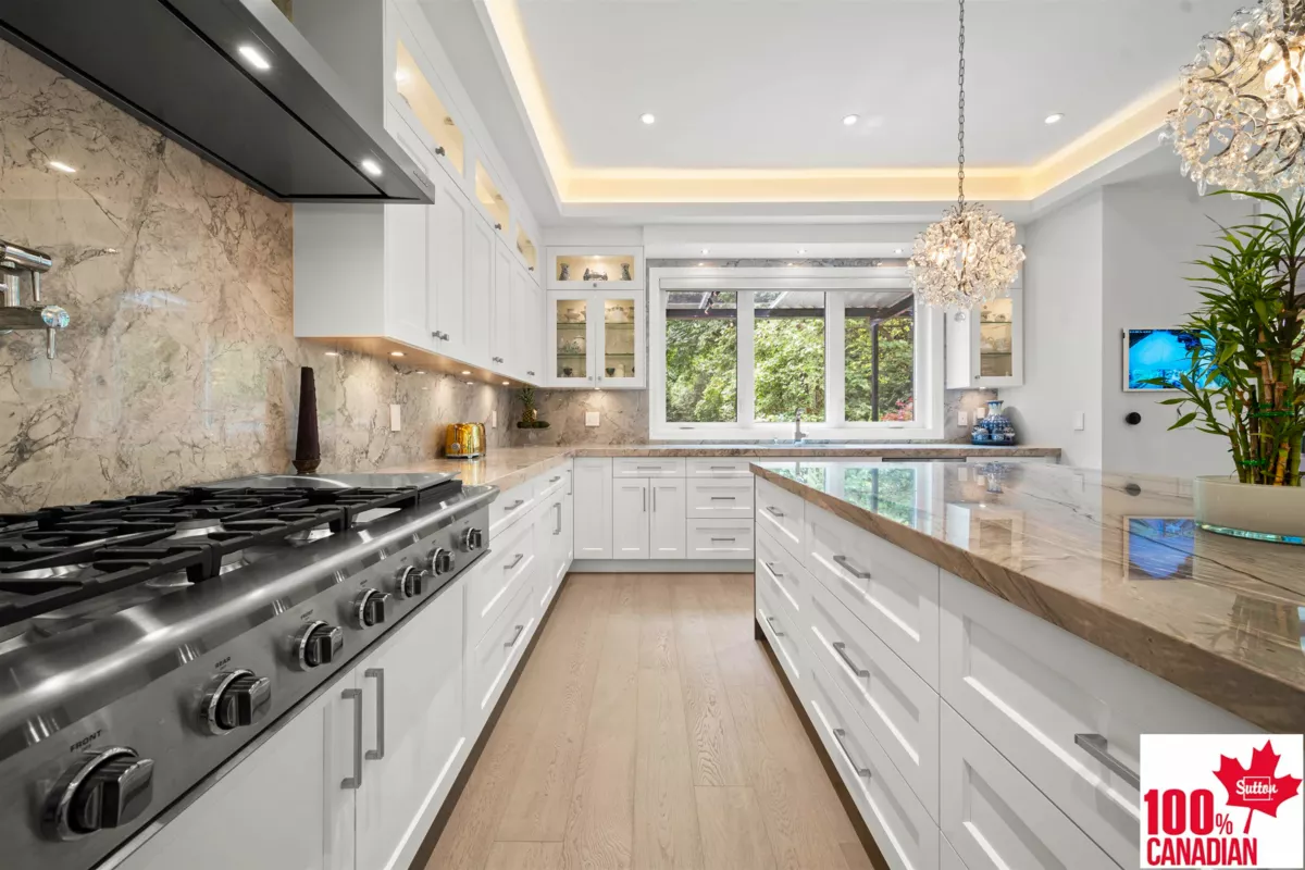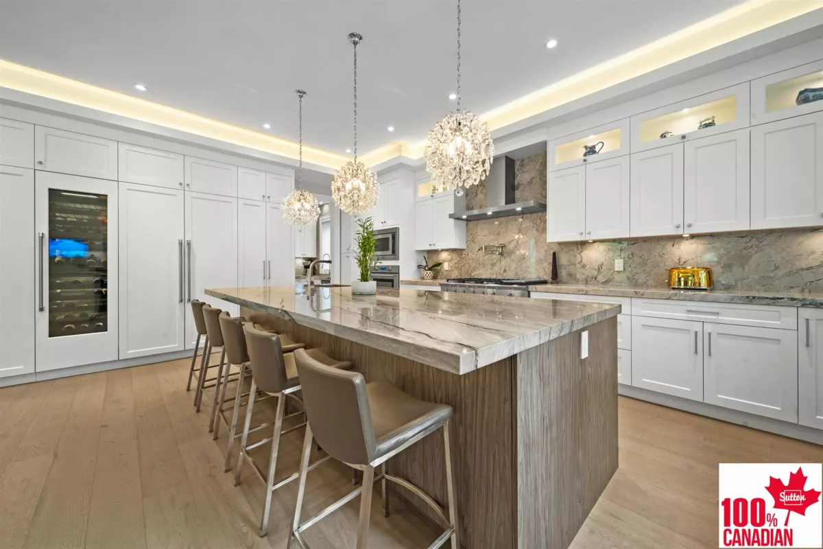Situated within North Burnaby’s prestigious Government Road enclave, this gated four-year-old estate represents the pinnacle of luxury and technical innovation. This sophisticated seven-bedroom, 7.5-bathroom "Smart Home" features a fully integrated Lutron system, automated blinds, and advanced security. The interior is defined by soaring 10'/9'/9' ceilings and a chef’s kitchen equipped with Fisher & Paykel appliances and full-slab granite surfaces. Wellness and leisure are prioritized with spa-inspired tiling, a private sauna, a professional theatre, a bar, and a custom wine cellar. Outside, enjoy a putting green and a heated terrace with a built-in BBQ overlooking a tranquil stream. Complete with a heated EV-ready garage, a nanny suite, and a legal two-bedroom mortgage helper.