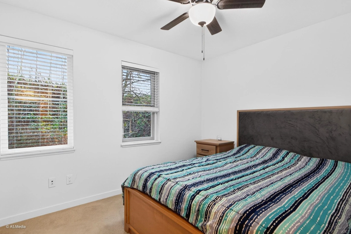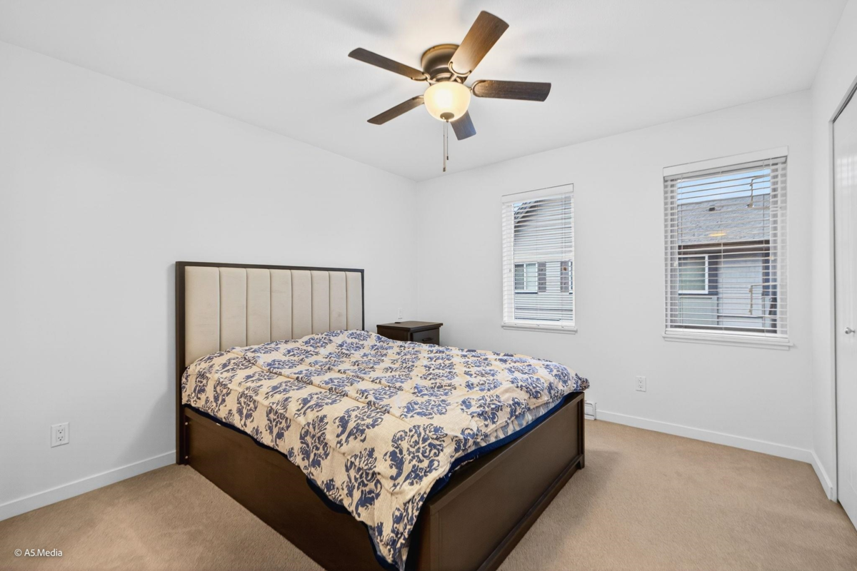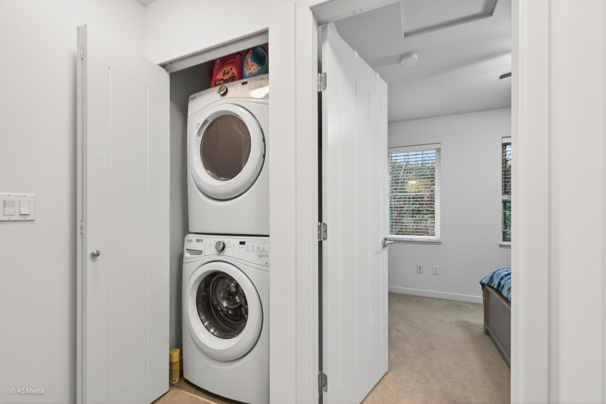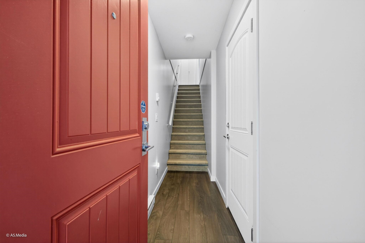 Discover this beautifully cared-for home, showing true pride of ownership from the moment you walk in. The stylish kitchen offers stainless steel appliances, ivory-white quartz counters, and rare direct access to your private backyard—perfect for families and entertaining. The bright south-facing living room is filled with natural light all day. Upstairs, the primary bedroom features a luxurious double-vanity en-suite. Enjoy year-round comfort with custom A/C, plus a Level 2 EV charger and parking for two in the garage. Quietly set near the courtyard, Sync offers abundant visitor parking, playgrounds, and scenic pathways. This greenbelt-facing unit provides exceptional privacy. *** Open house Sat and Sun [Dec 20 & 21] 1-3pm.***