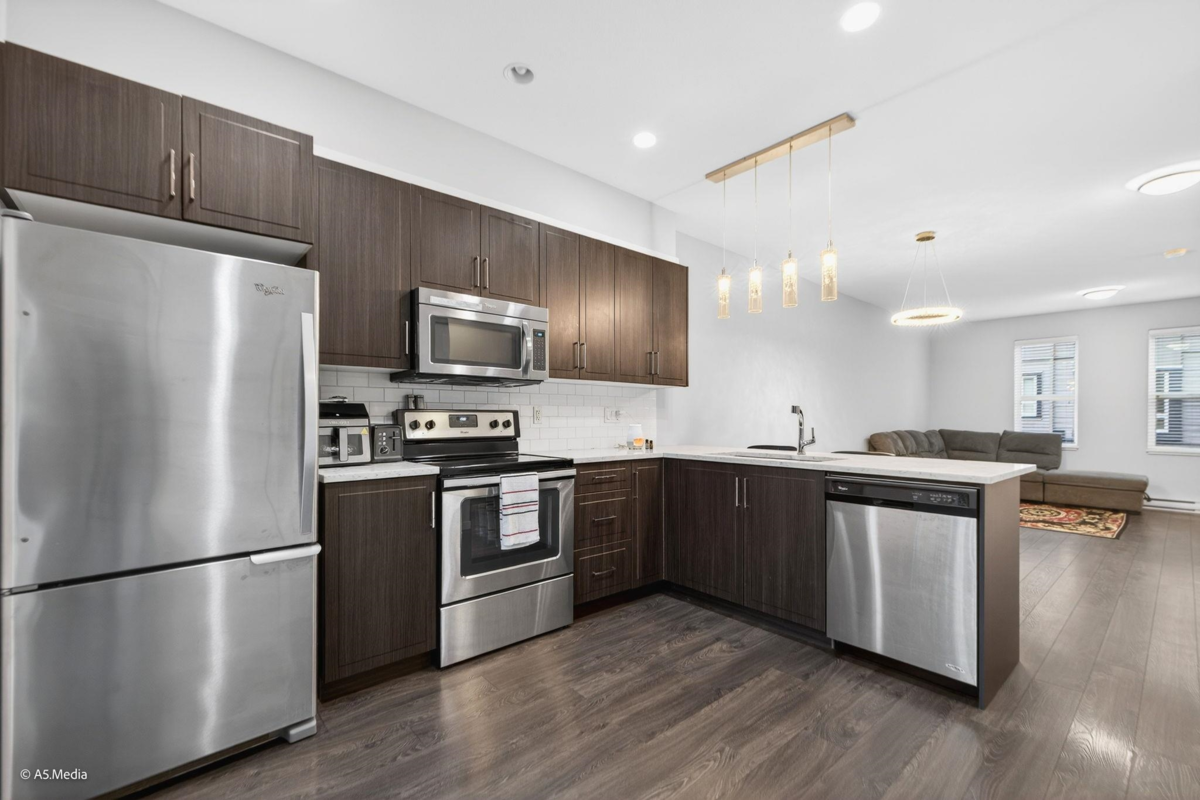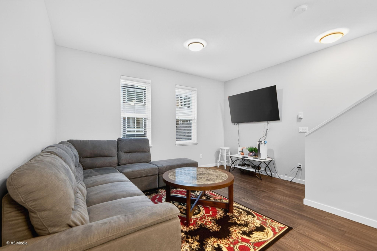 Discover this beautifully cared-for home, showing true pride of ownership from the moment you walk in. The stylish kitchen offers stainless steel appliances, ivory-white quartz counters, and rare direct access to your private backyard—perfect for families and entertaining. The bright south-facing living room is filled with natural light all day. Upstairs, the primary bedroom features a luxurious double-vanity en-suite. Enjoy year-round comfort with custom A/C, plus a Level 2 EV charger and parking for two in the garage. Quietly set near the courtyard, Sync offers abundant visitor parking, playgrounds, and scenic pathways. This greenbelt-facing unit provides exceptional privacy. **** Open House Sat [Jan 24] & Sun[Jan 25] 2-4pm.****