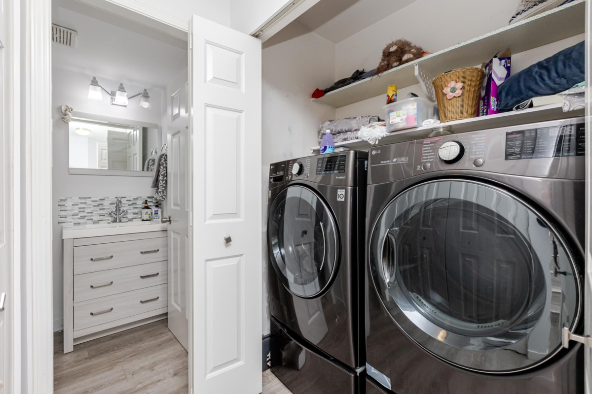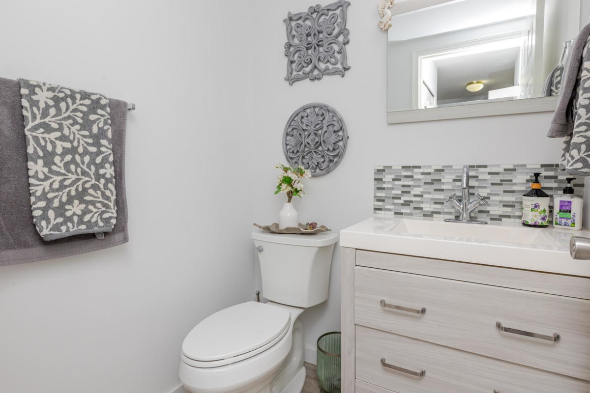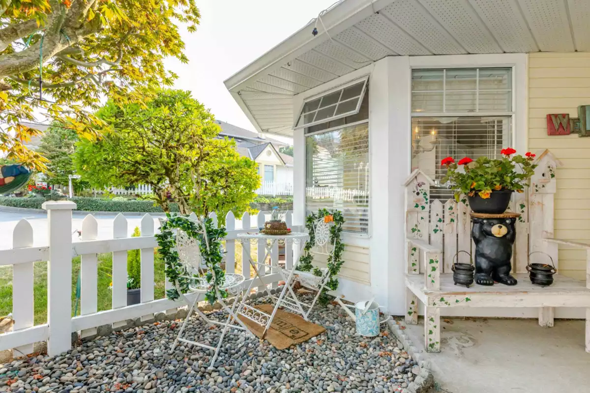 Attention downsizers! This beautifully updated END UNIT townhome offers 3 bedrooms, 2.5 bathrooms, & over 1,600sf. of bright, open living space — making it feel more like a detached home. Tastefully updated w/light laminate flooring, s/s appliances, quartz counters in the kitchen, mini split A/C, & newer washer/dryer. Other features include soaring vaulted ceilings & a cozy gas fireplace. Primary bedroom conveniently located on the main floor w/spacious ensuite + a updated powder room & a double side-by-side garage add everyday comfort. Large windows throughout flood the home w/natural light. Step outside to a generous southwest-facing patio that backs onto a serene greenbelt. Enjoy the complexes fantastic amenities including a clubhouse, putting green, hot tub, and outdoor pool.