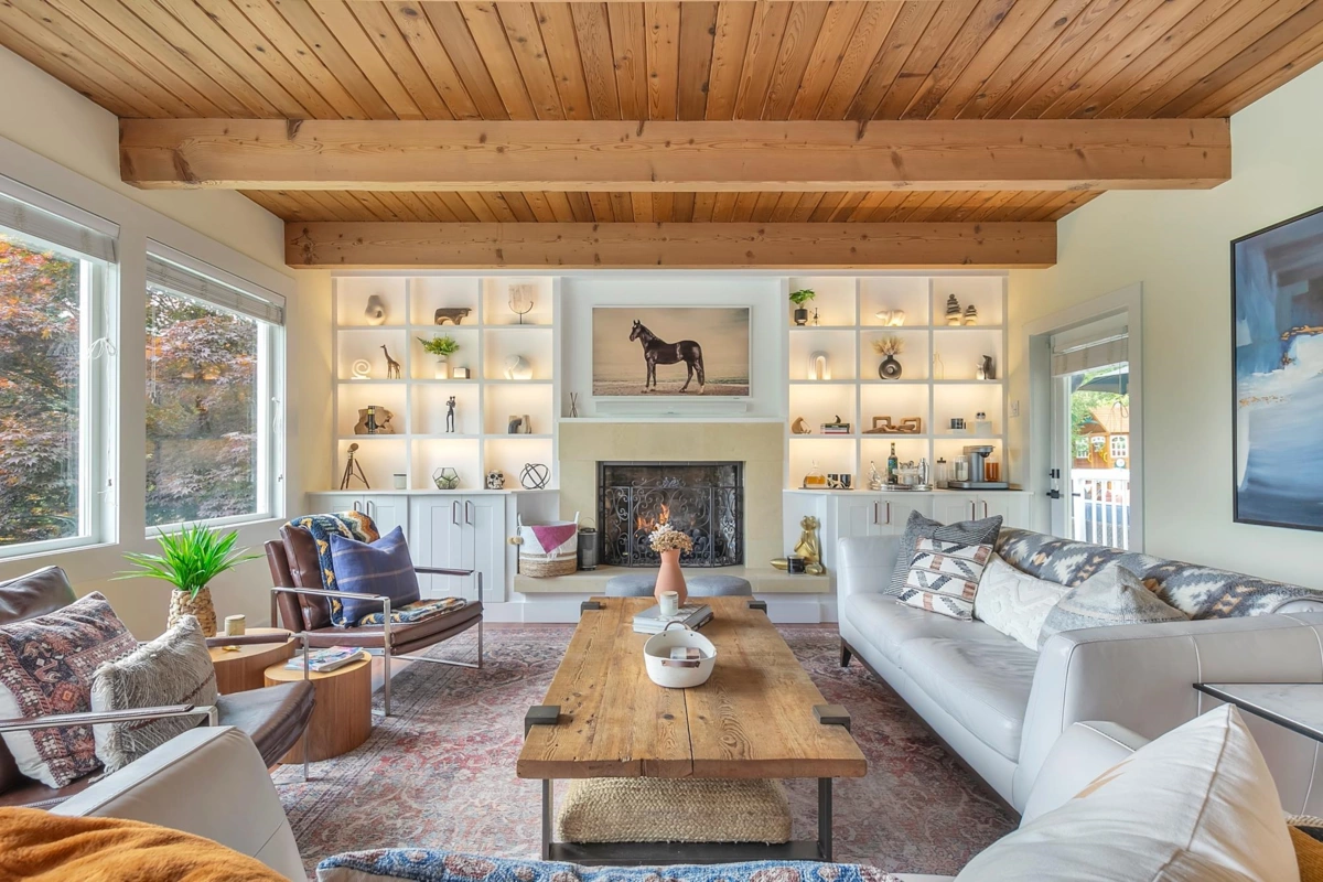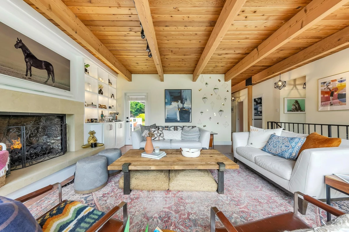 Discover this immaculate family home nestled on a serene, private street in the prestigious British Properties. The residence opens to a well-appointed office, 2 cozy bedrooms, and a media room on the main floor. Ascend to the breathtaking upper level adorned with stunning wood beams & a spacious living area featuring custom shelving. This level hosts 3 additional bedrooms, including a primary suite with custom wardrobes. Enjoy elegant dining spaces with a formal dining room and an inviting eat-in kitchen. Step outside to a perfectly sized deck overlooking a beautifully landscaped yard with a tranquil creek and picturesque bridge. The outdoor experience is enhanced by a superb hot tub setup with built-in speakers and an in-ground subwoofer, perfect for entertaining or relaxing in luxury.