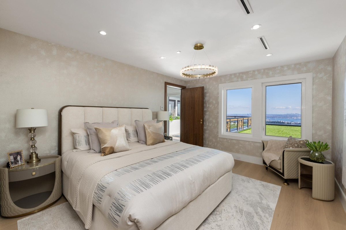 A Magnificent WORLD CLASS Luxury Residence situated on a prime .65 acre gated estate in the most prestigious BP, offering UNOBSTRUCTED OCEAN, CITY views. Built by Italian builder, generously apply Italian cabinets and wall paneling, sophisticated elegance & grandeur with contemporary design & beautiful landscape. 13,000 sqft gorgeous home offering 7 bdrms, 9 baths, entertainment-sized family & dining rooms, gourmet kitchen & generous wok kitchen, family & living room. Features include amazing 14 feet ceiling on lower floor, gym, wine bar and entertainment area beside enclosed amazing indoor pool open to the front patio, sauna & turbo spa, home theater, elevator, Smart Home System, A/C, heated driveway, 3-car garage, inner court yard,Water fountains, Gazebo on backyard.